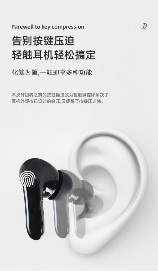 外形轮廓符合人体工学,贴合耳廓,软胶部分不触及耳道,精巧安全,侧睡同样舒适。 对那些经常煲电话粥的、听歌睡觉的朋友来说,真的是“真爱”。