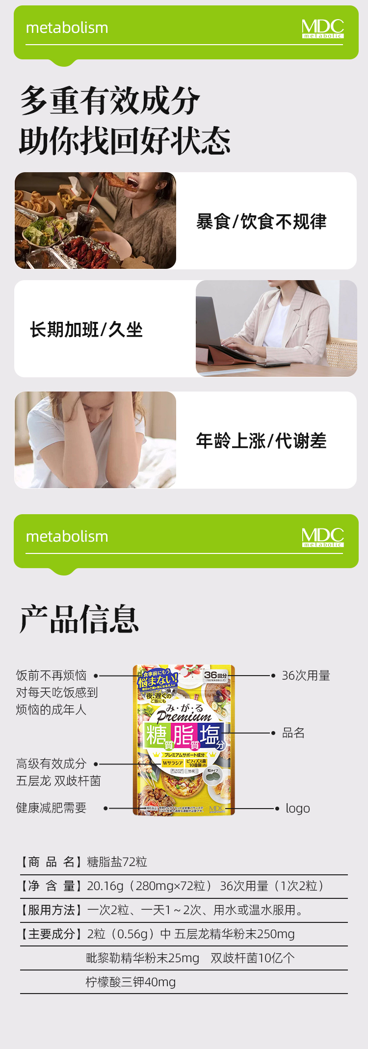 【品牌方】 MDC糖脂盐premium72粒/袋 抗糖抗盐阻断油分五层龙提取物