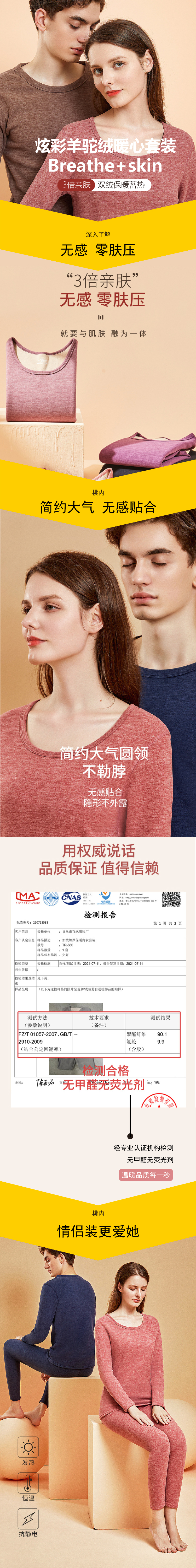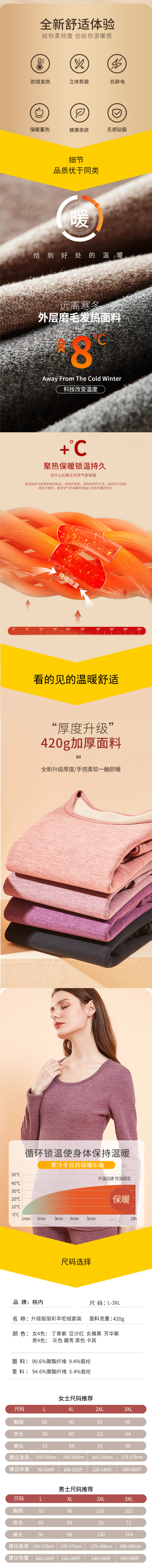 桃内冬季驼绒保暖内衣套装男士加大码加绒打底内衣女士保暖衣TR-009