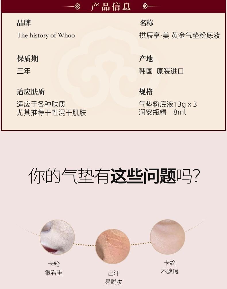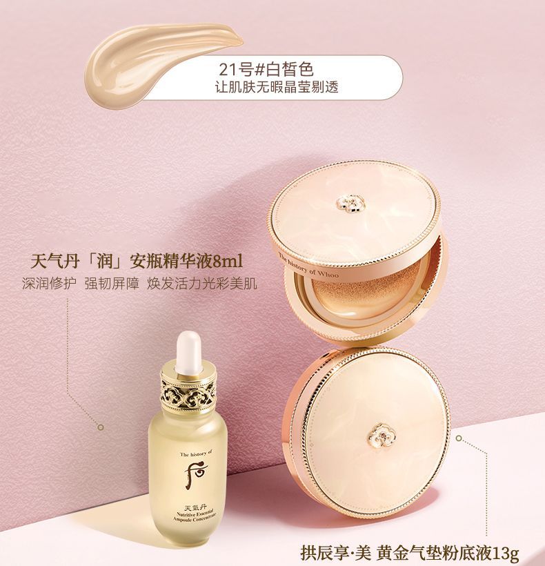 【预售 急单慎拍】后黄金气垫4件套装红心限量款防晒遮瑕隔离21#