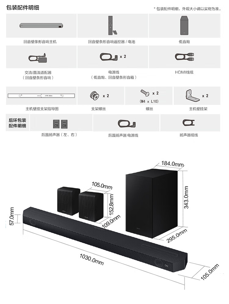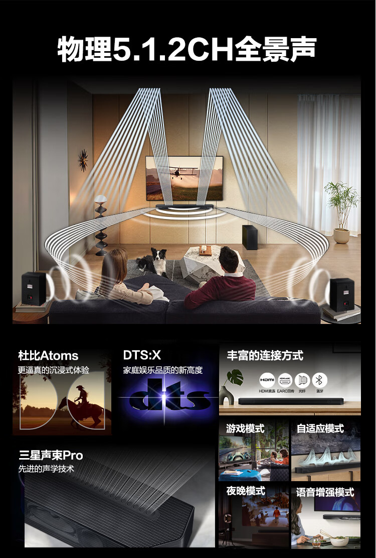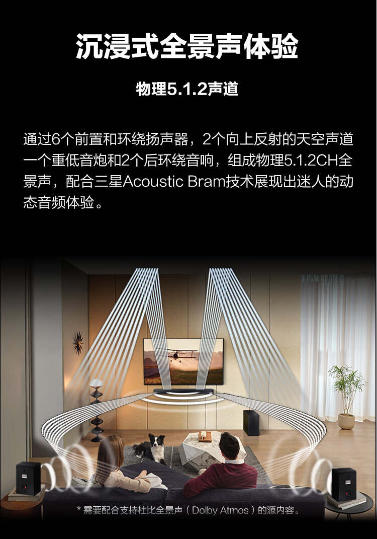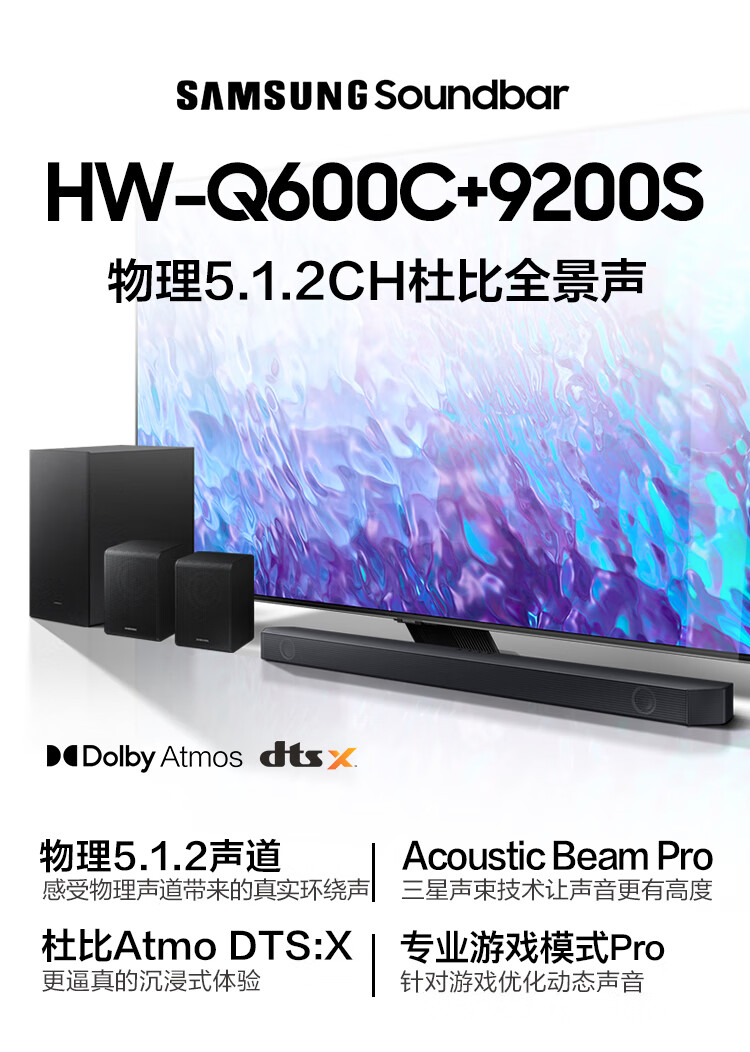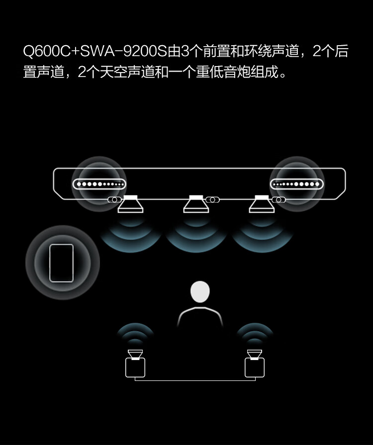 三星(SAMSUNG)HW-Q600C+SWA-9200S套装 5.1.2全景音效 无线蓝牙回音壁 Soundbar 条形音箱 家庭影院