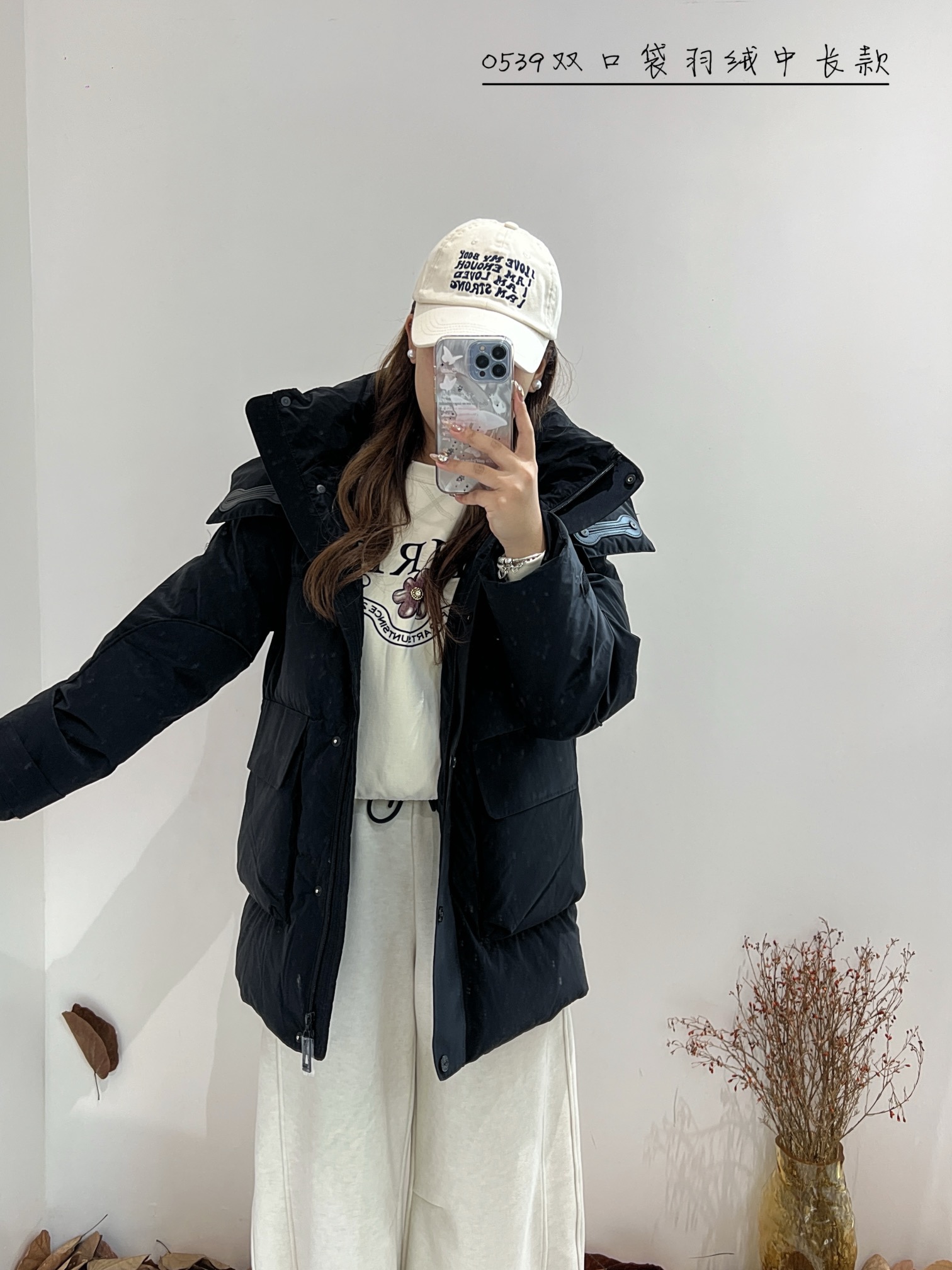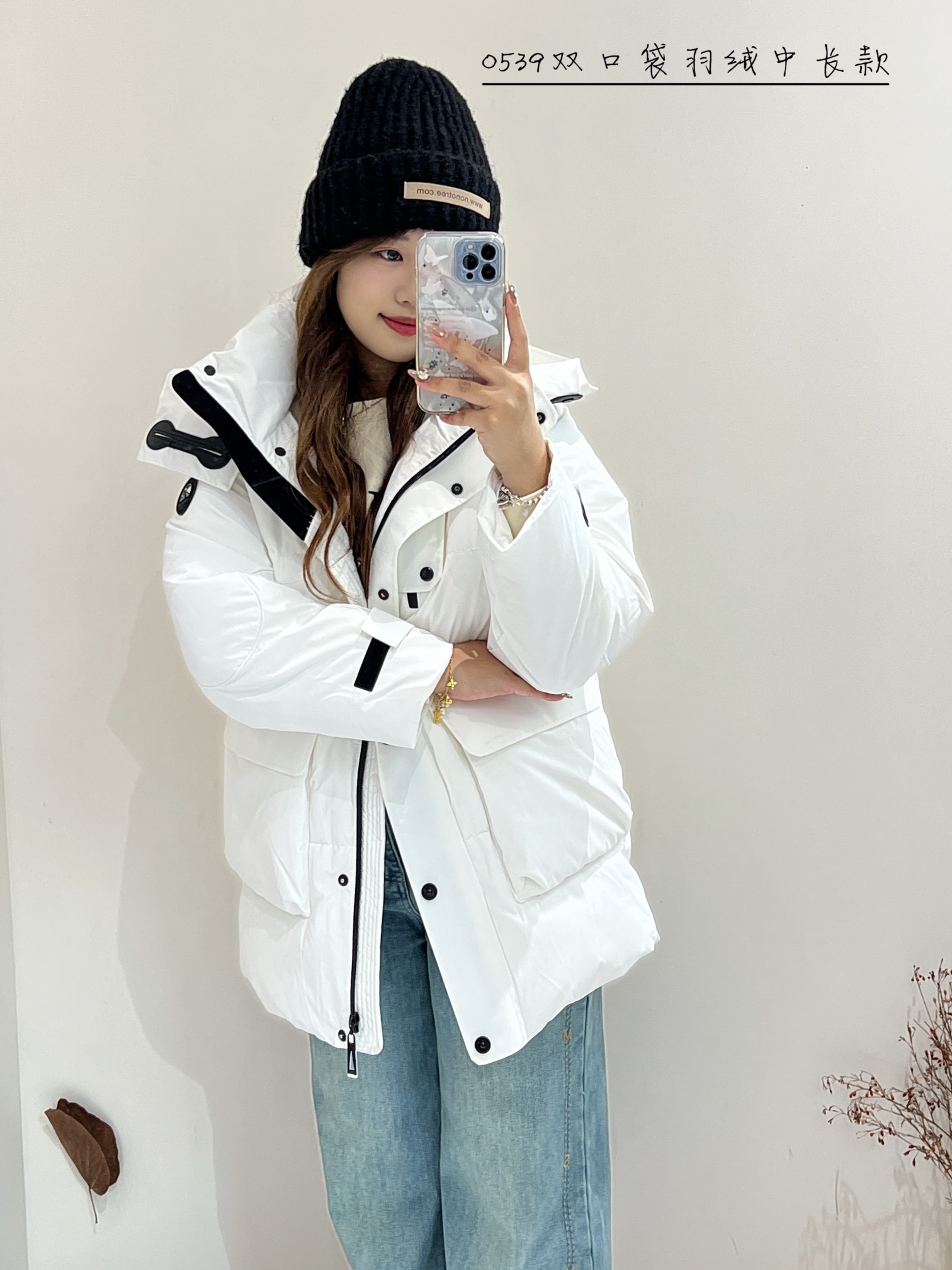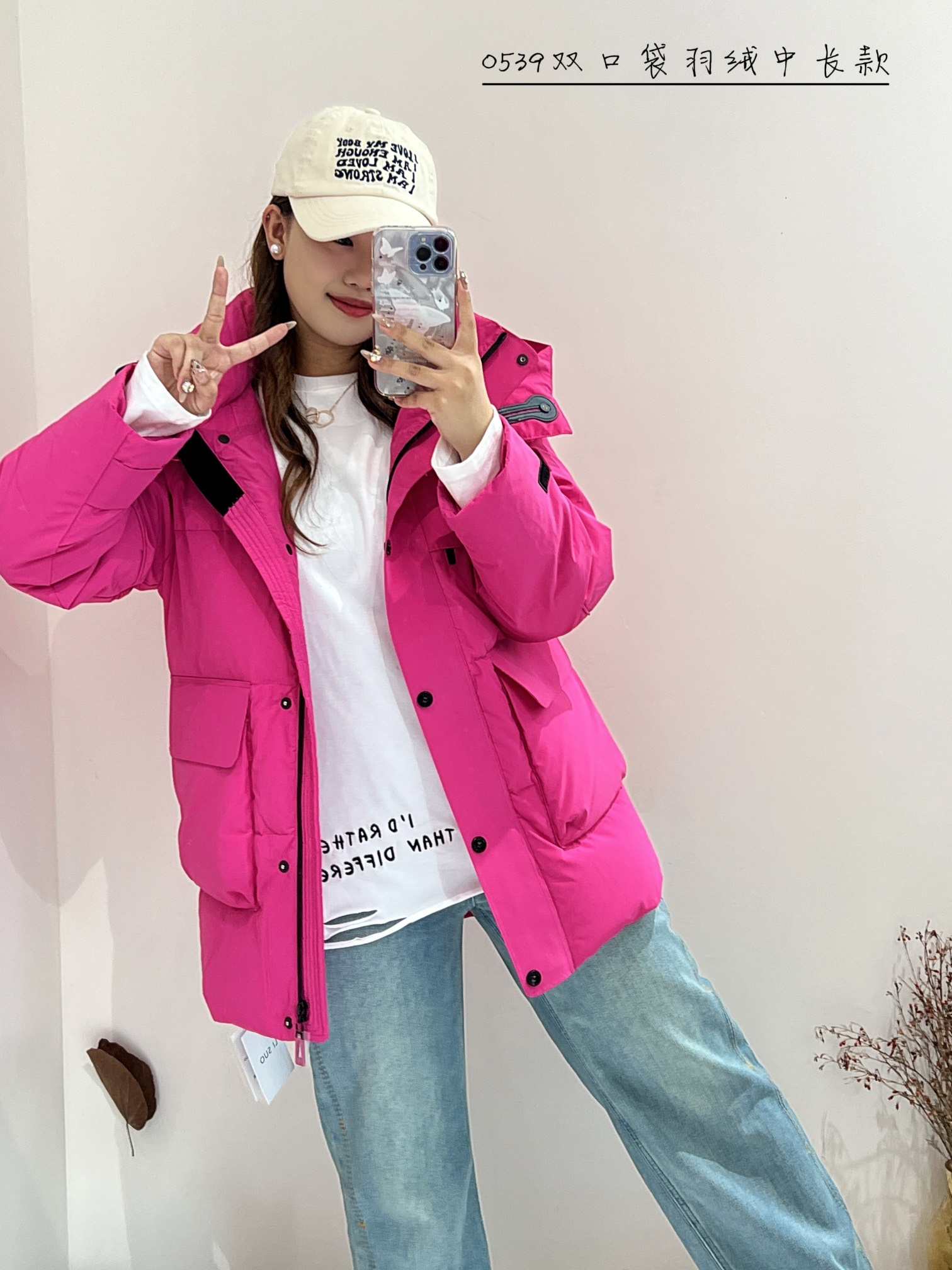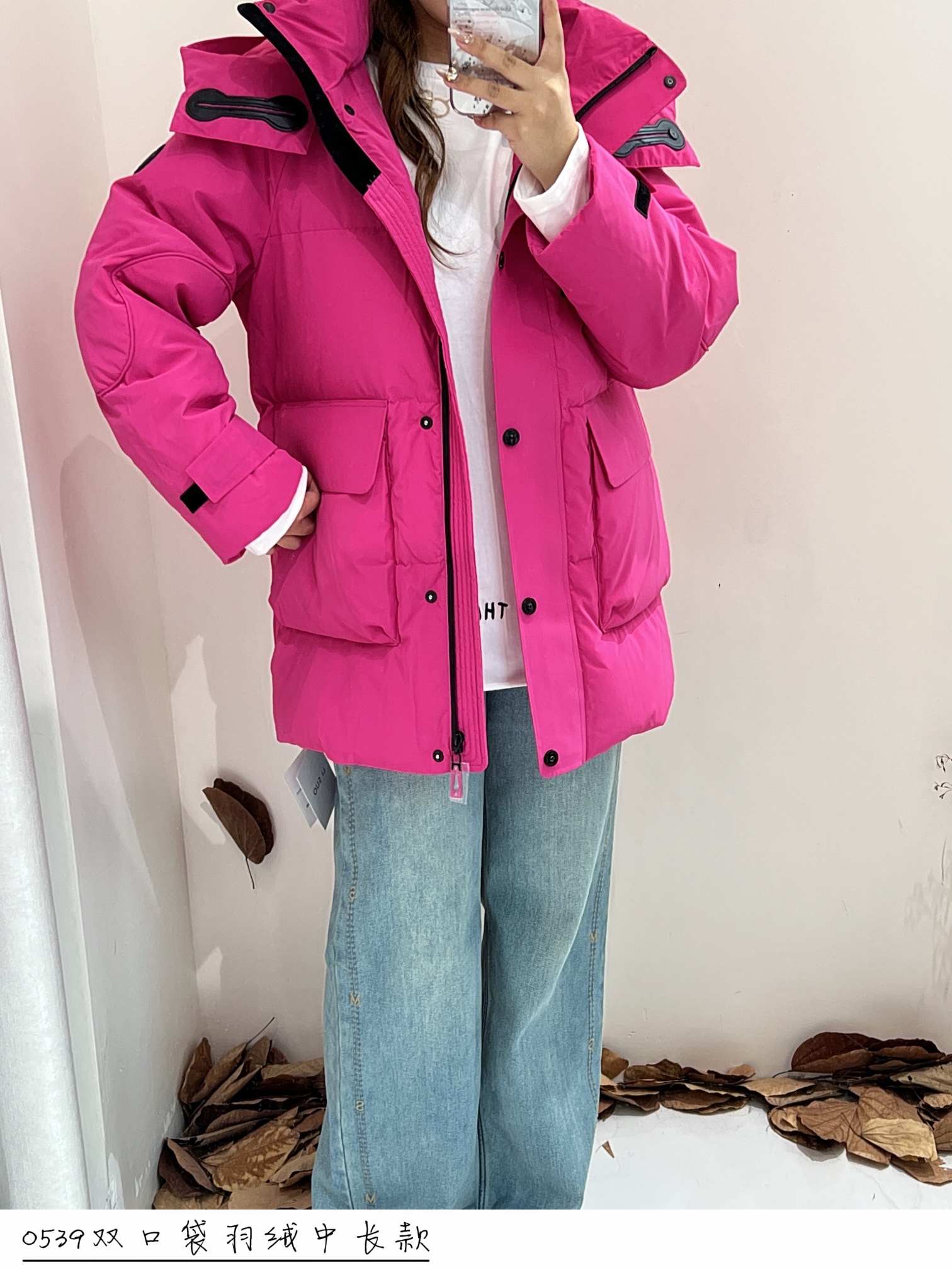 74YR20539#双口袋羽绒中长款