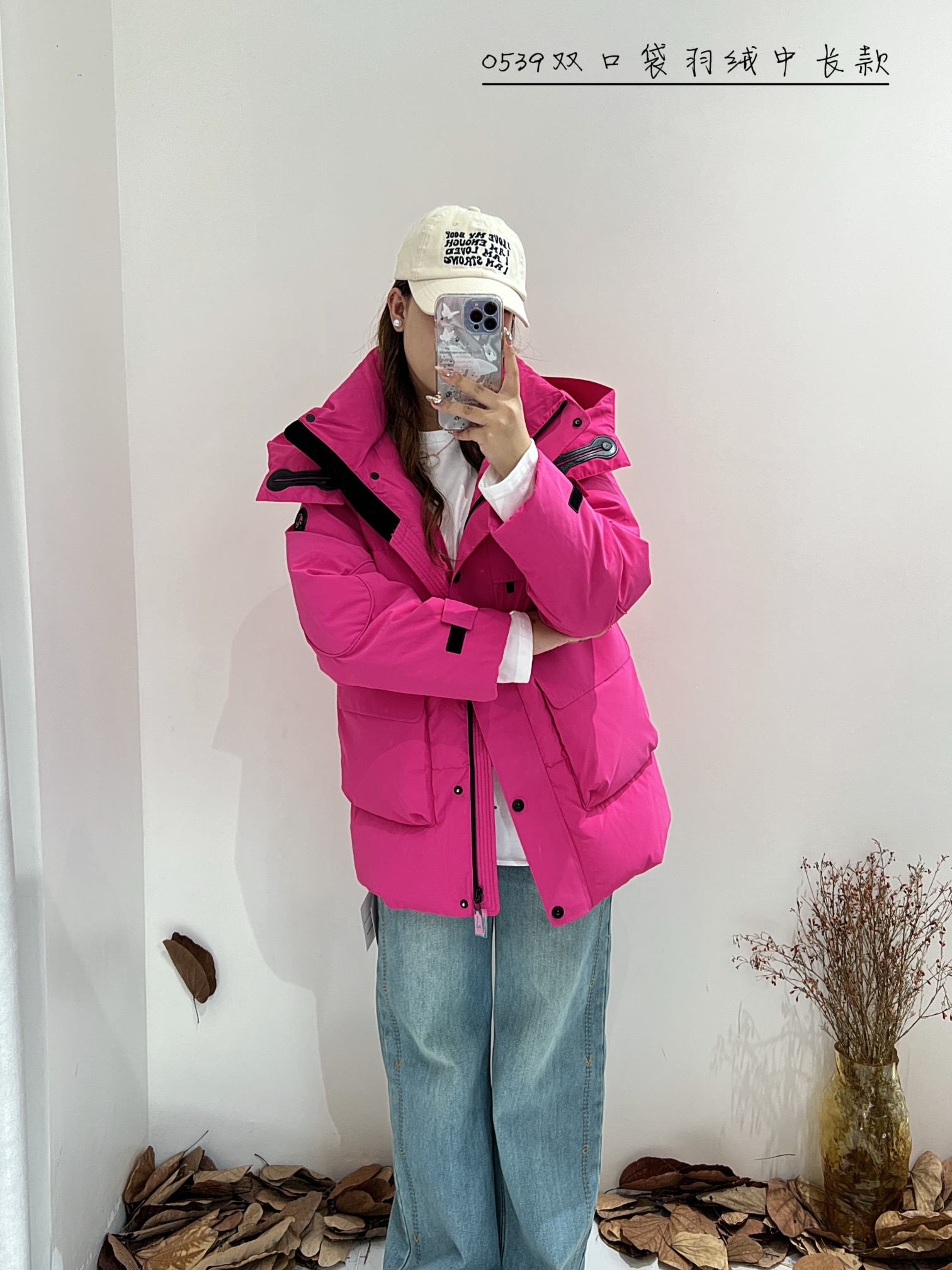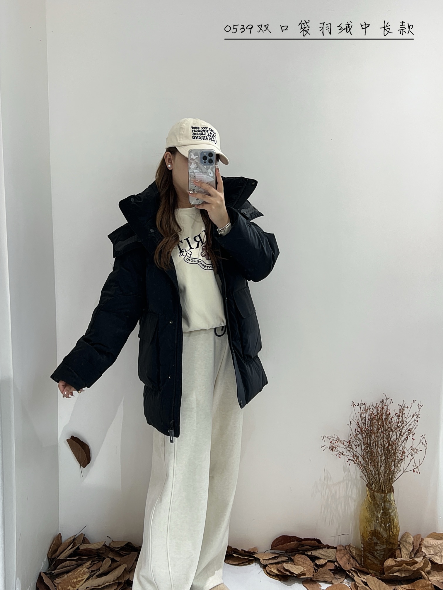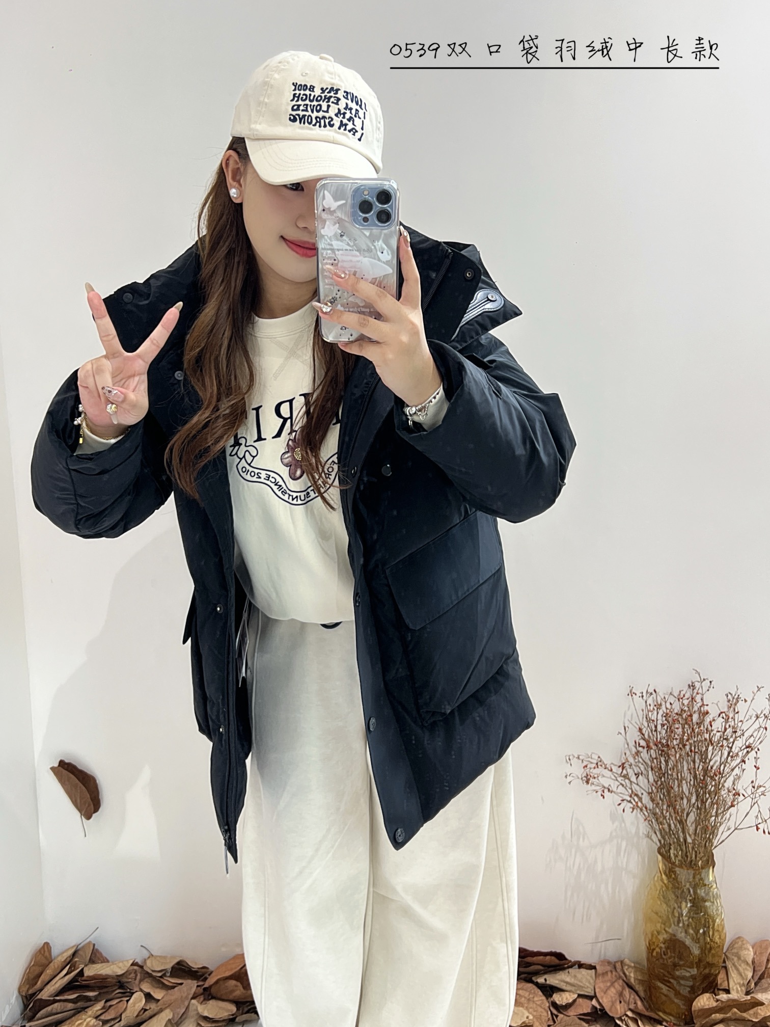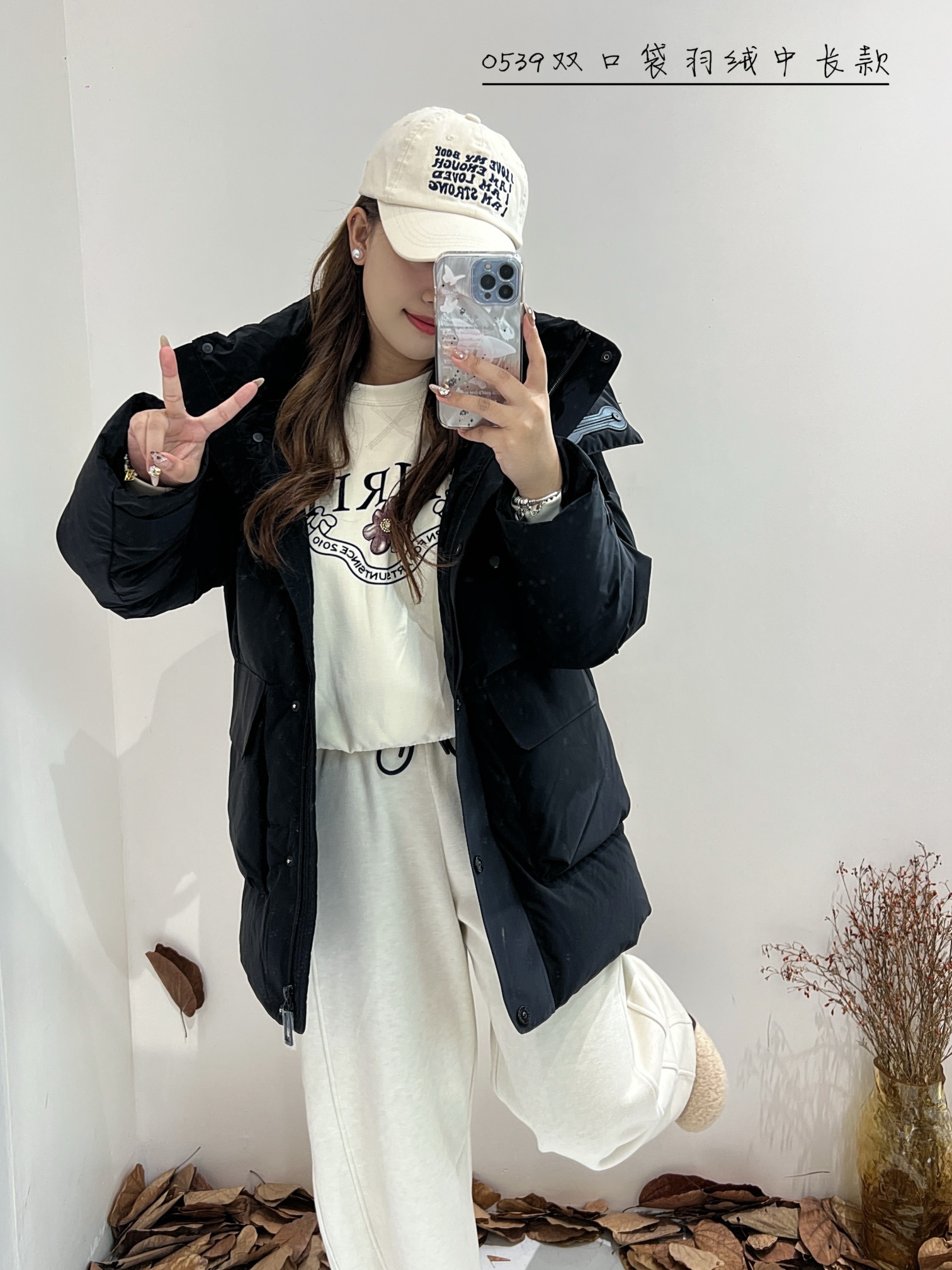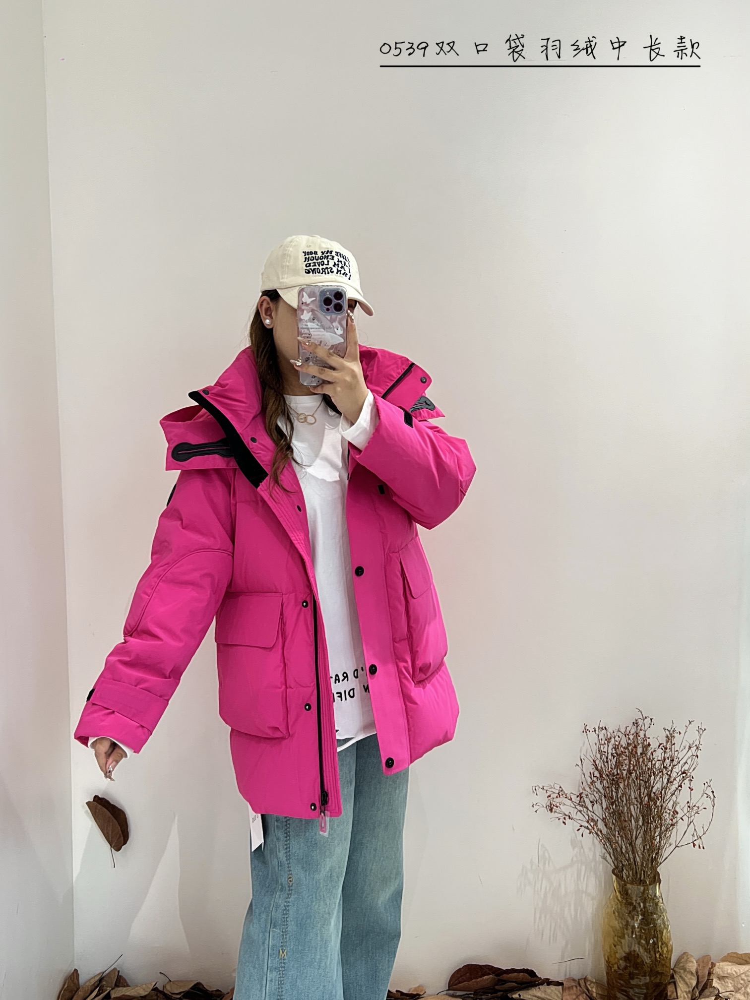 74YR20539#双口袋羽绒中长款
