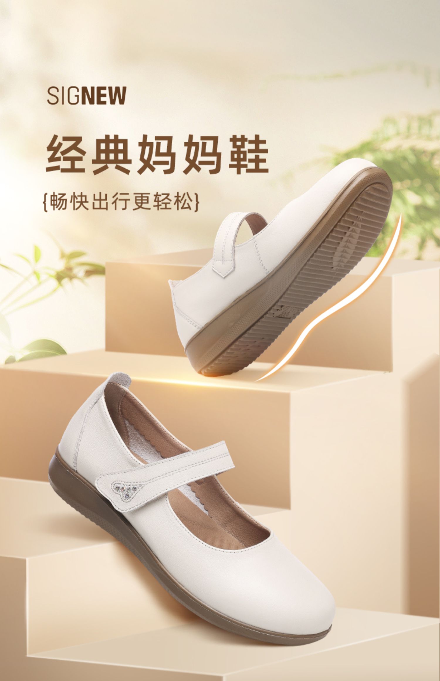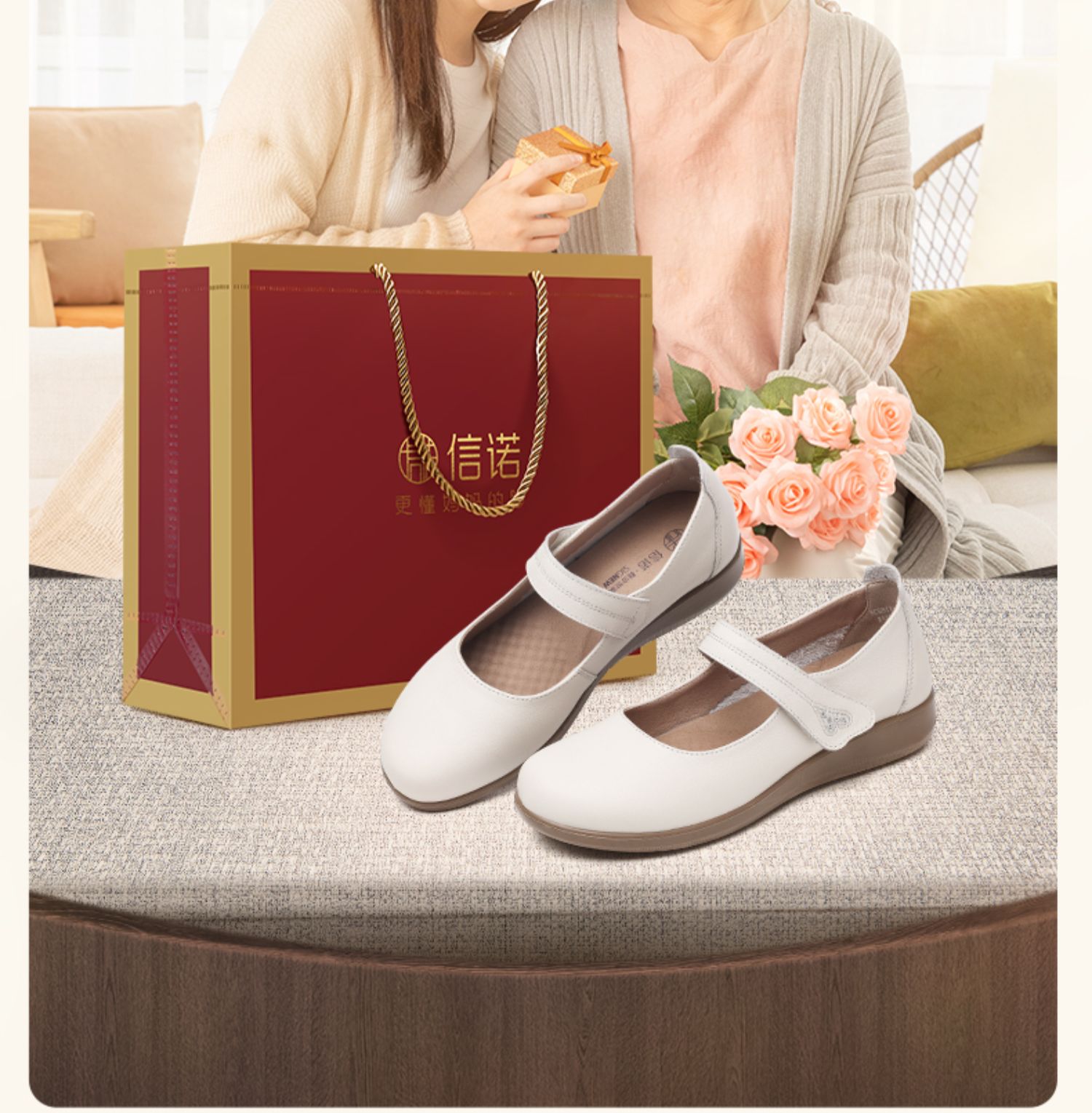 信诺真皮舒适老人单鞋女2025春季新款妈妈鞋软底奶奶鞋中老年皮鞋5C9811-119