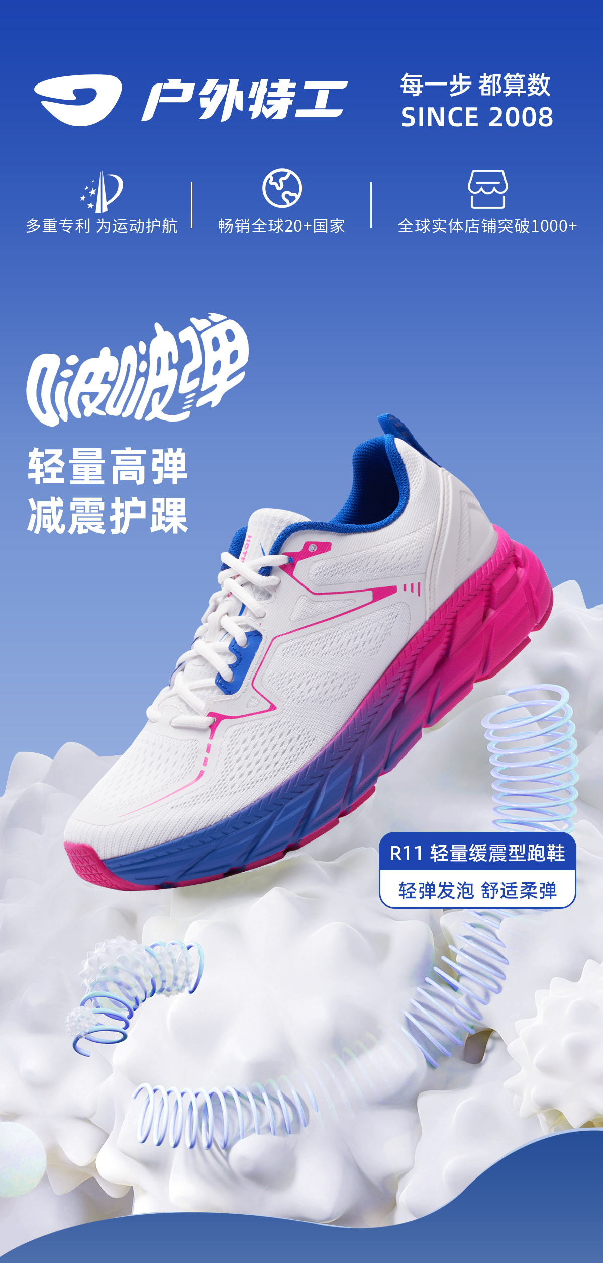 户外特工 运动鞋男女缓震回弹透气抓地轻便马拉松弹力网跳操跑步鞋 男女款 R11