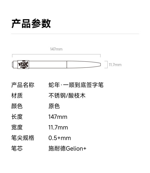 笔下一顺到底签字笔礼盒限量款中性笔新年礼盒黑檀木生日礼物礼品高端礼盒圆珠笔高档商务高档 酸枝-蛇年限定款礼盒