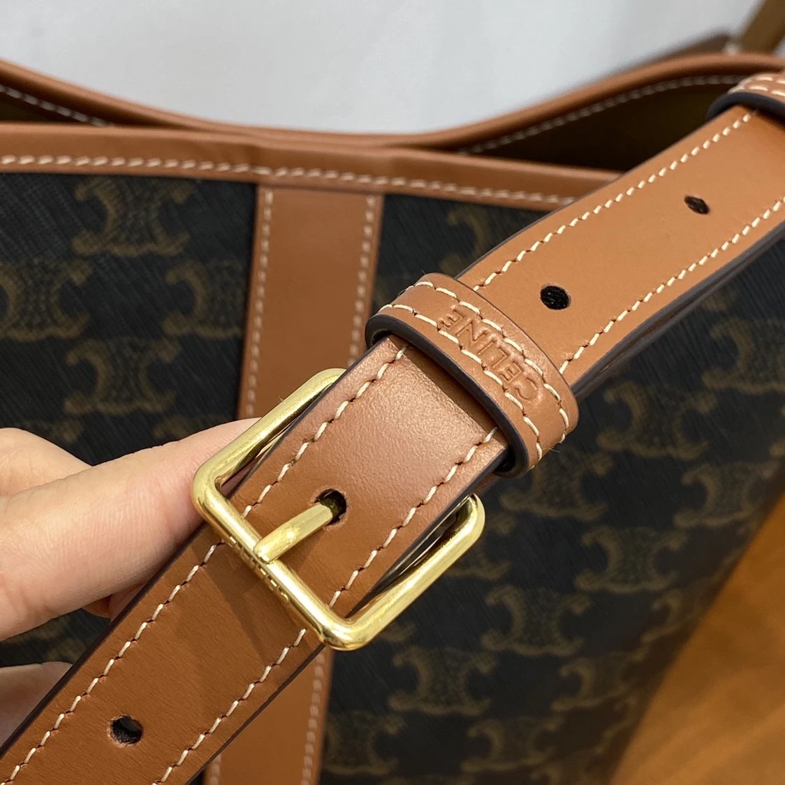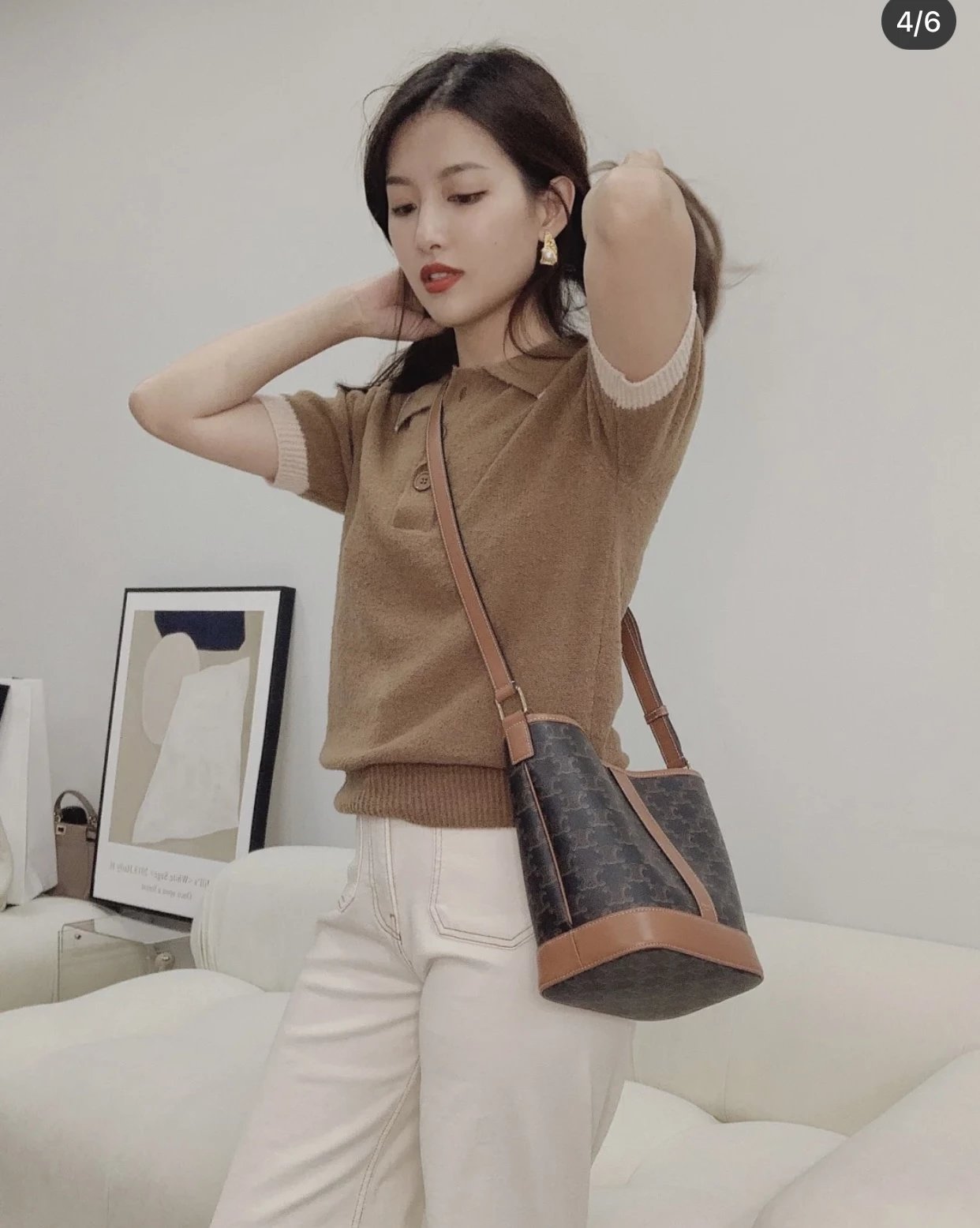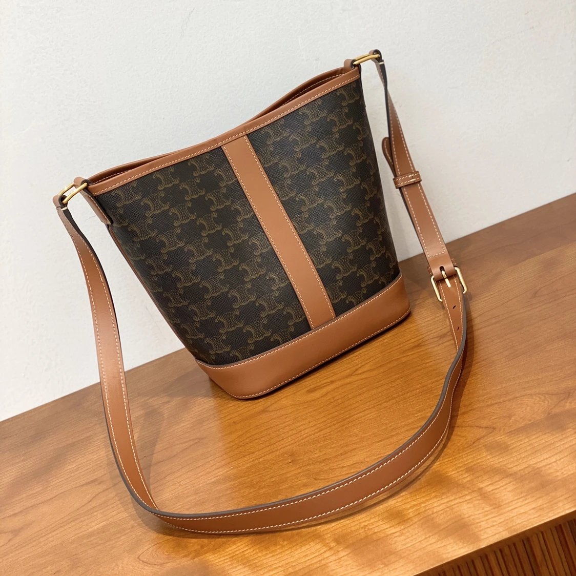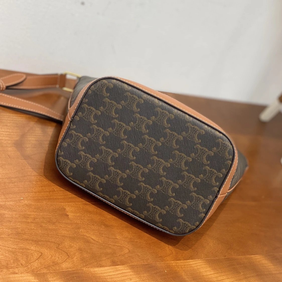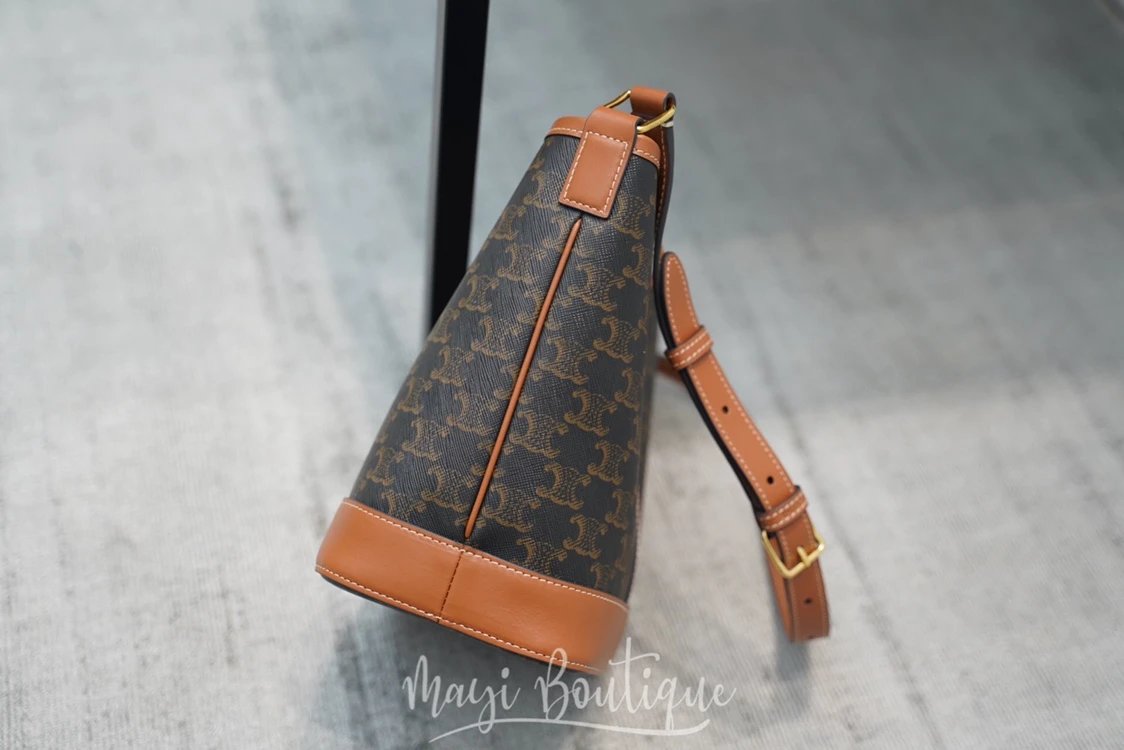 万年经典款稀罕货 TRIOMPHE凯旋门水桶包 小号 复古老花帆布拼接 斜挎包