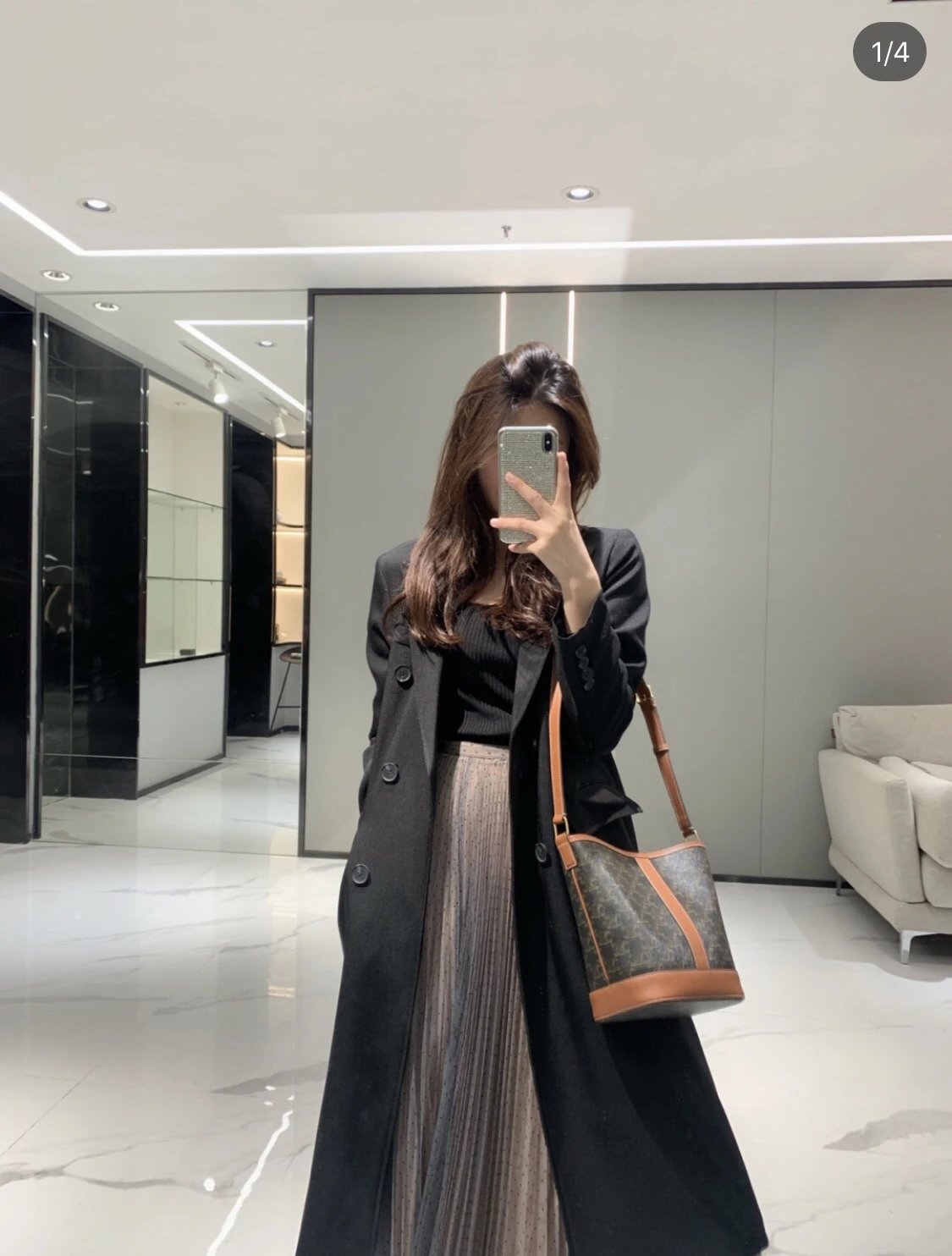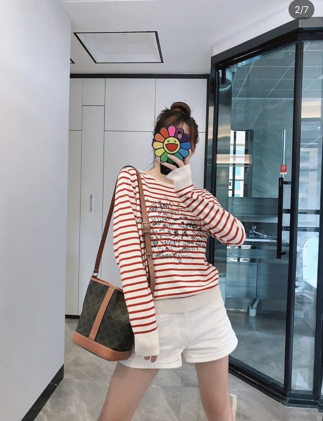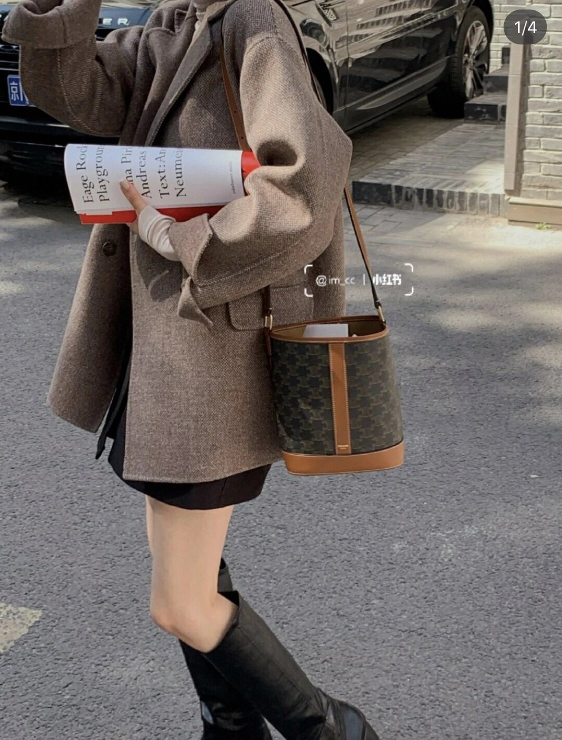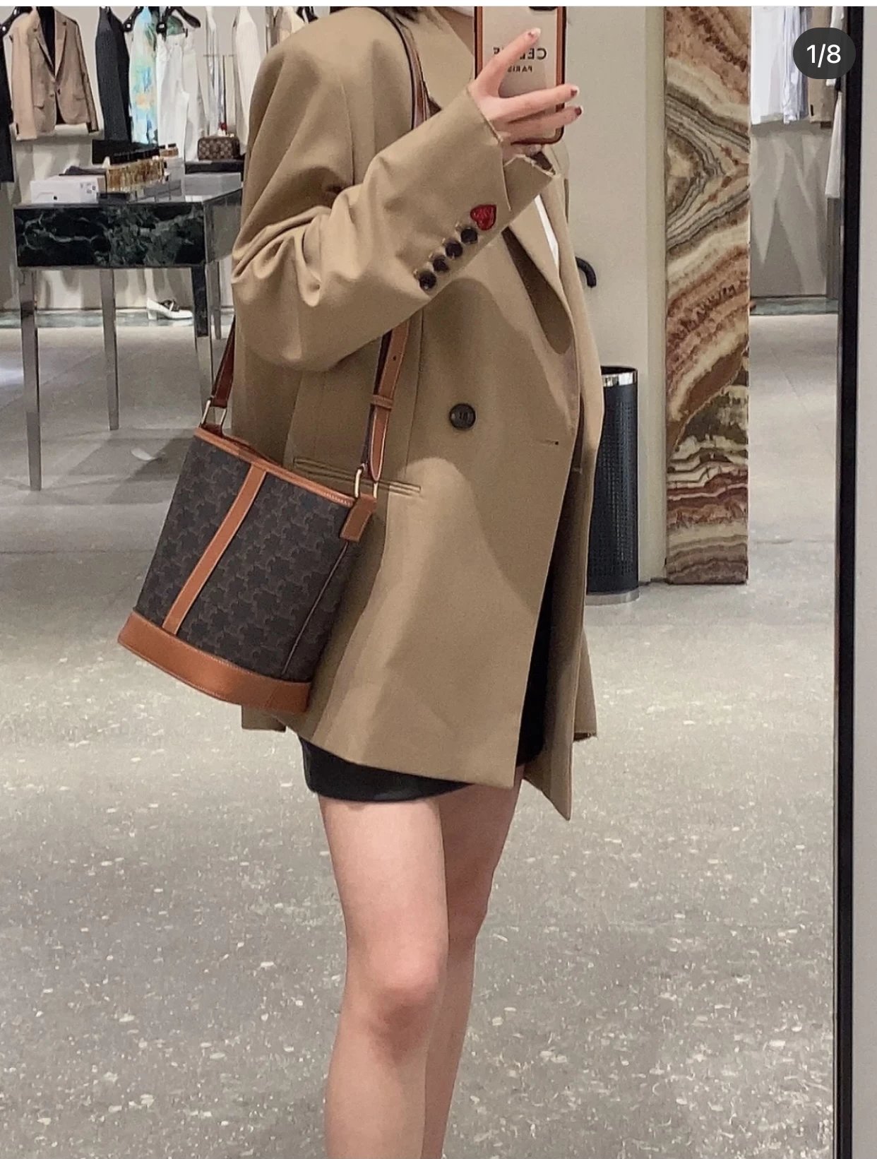 万年经典款稀罕货 TRIOMPHE凯旋门水桶包 小号 复古老花帆布拼接 斜挎包