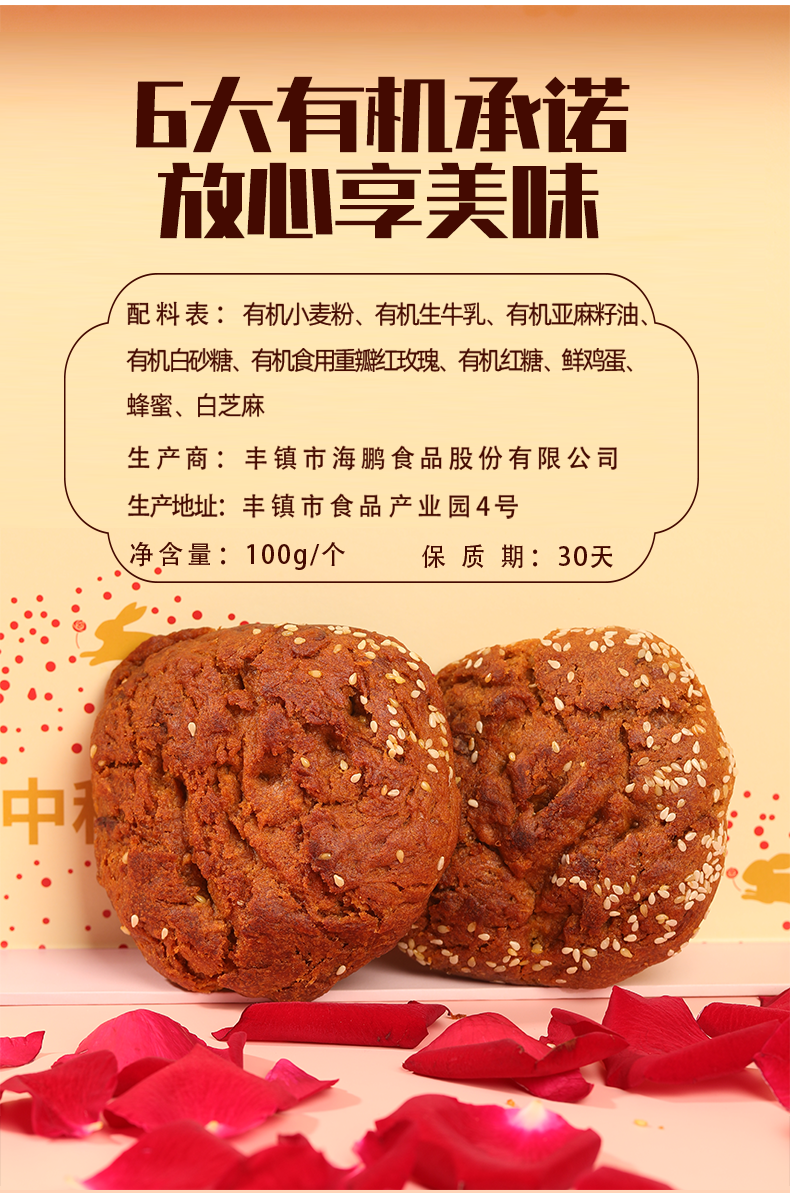 海鹏有机玫瑰月饼礼盒10枚1000g