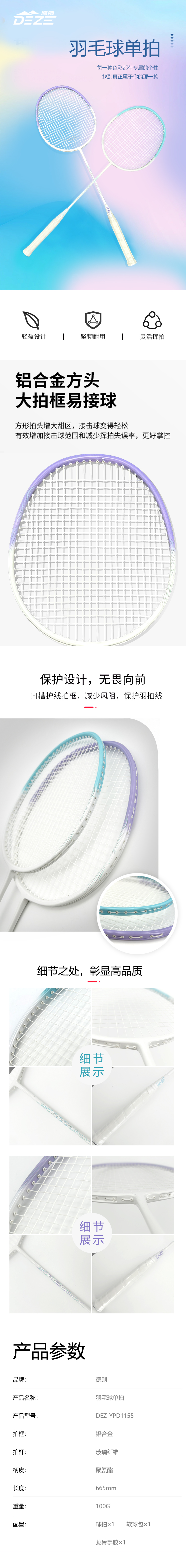 德则羽毛球 单拍 (一体)DEZ-YPD1155