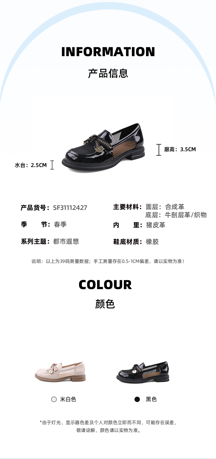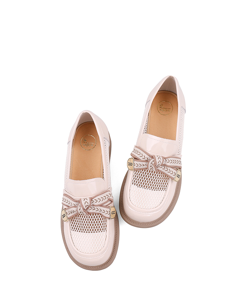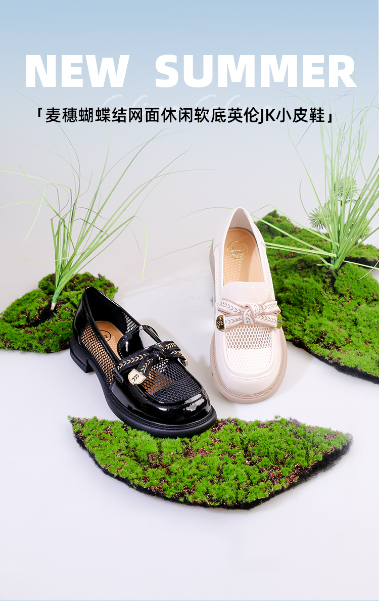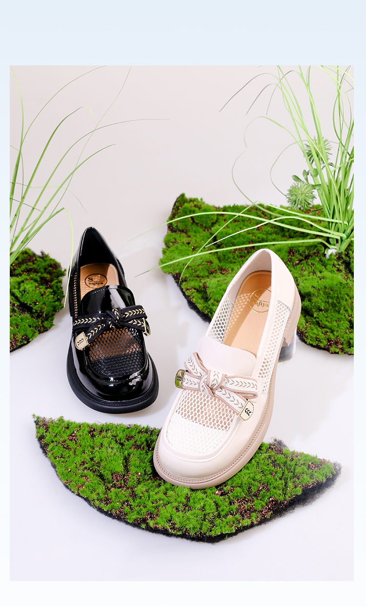 Safiya/索菲娅2023春季新品麦穗蝴蝶结网面休闲软底英伦JK小皮鞋 SF31112427