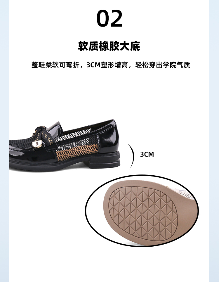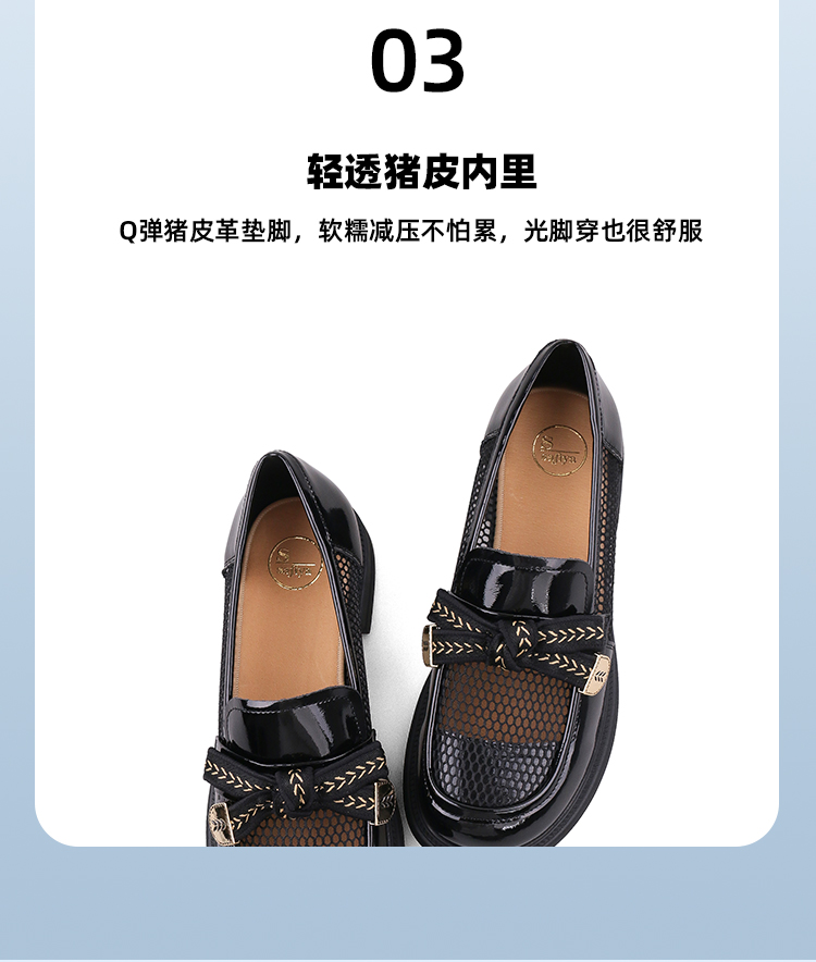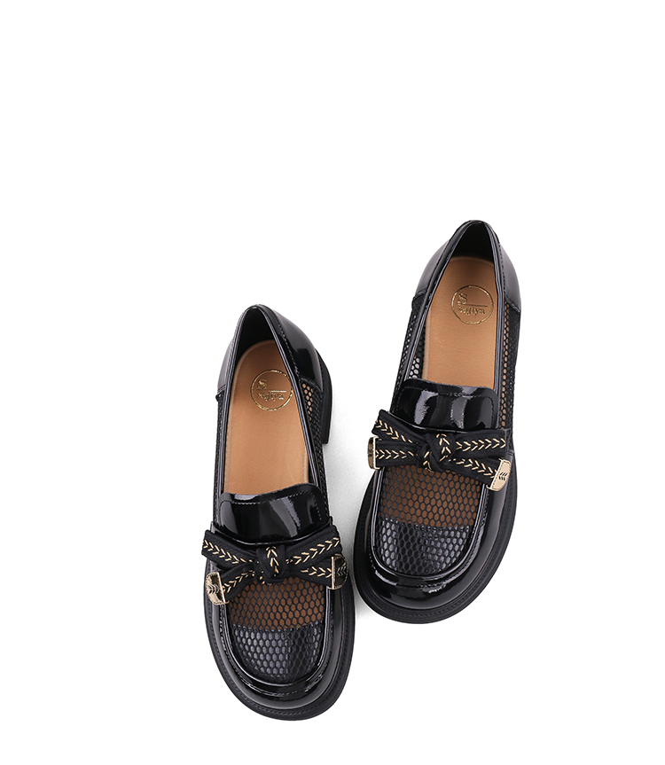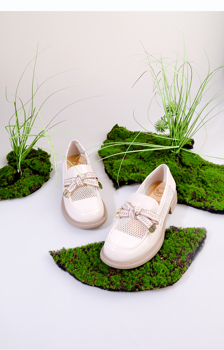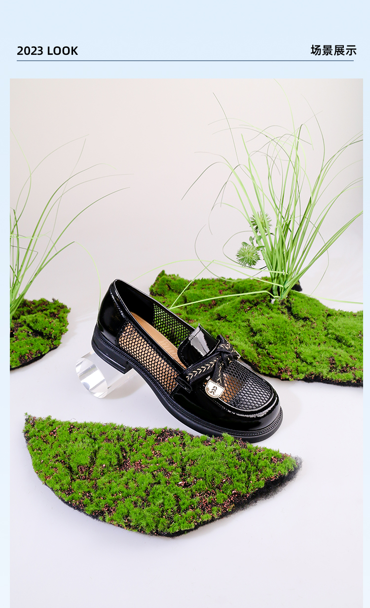 Safiya/索菲娅2023春季新品麦穗蝴蝶结网面休闲软底英伦JK小皮鞋 SF31112427