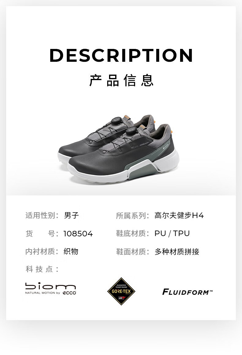 【高尔夫健步H4】ECCO爱步男子高尔夫球鞋轻便透气时尚现货108504