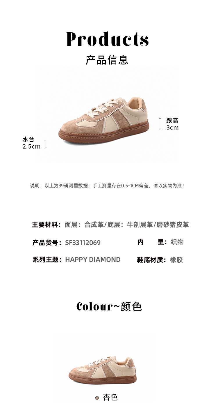 Safiya/索菲娅2023秋季新品潮流街头拼色休闲百搭软底德训鞋 SF33112069