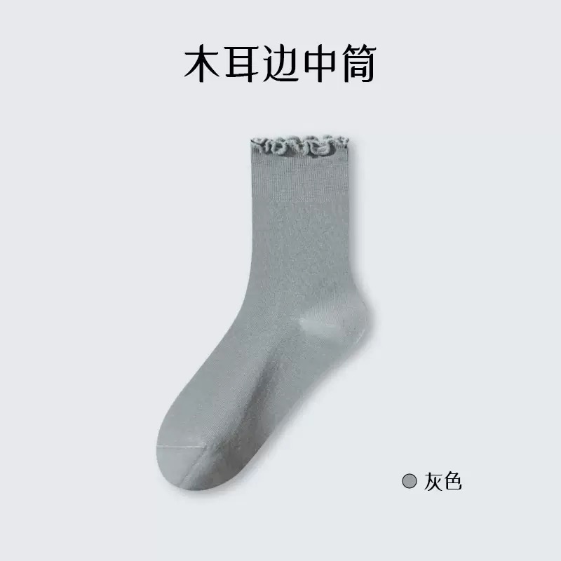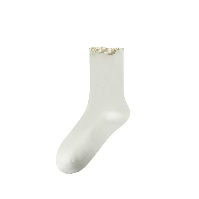 木耳花边纯棉中筒袜