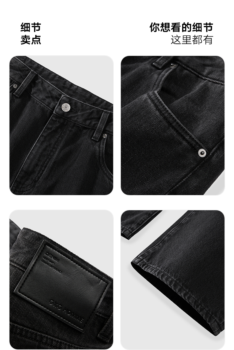 GXG男装 宽松直筒牛仔裤肌理通勤长裤 24年冬G24X054060