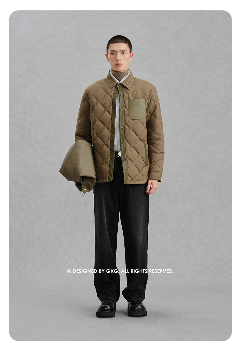 GXG男装 棕色肌理斜纹通勤短款大衣 24冬热卖G24X064027