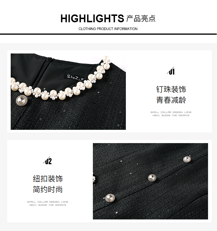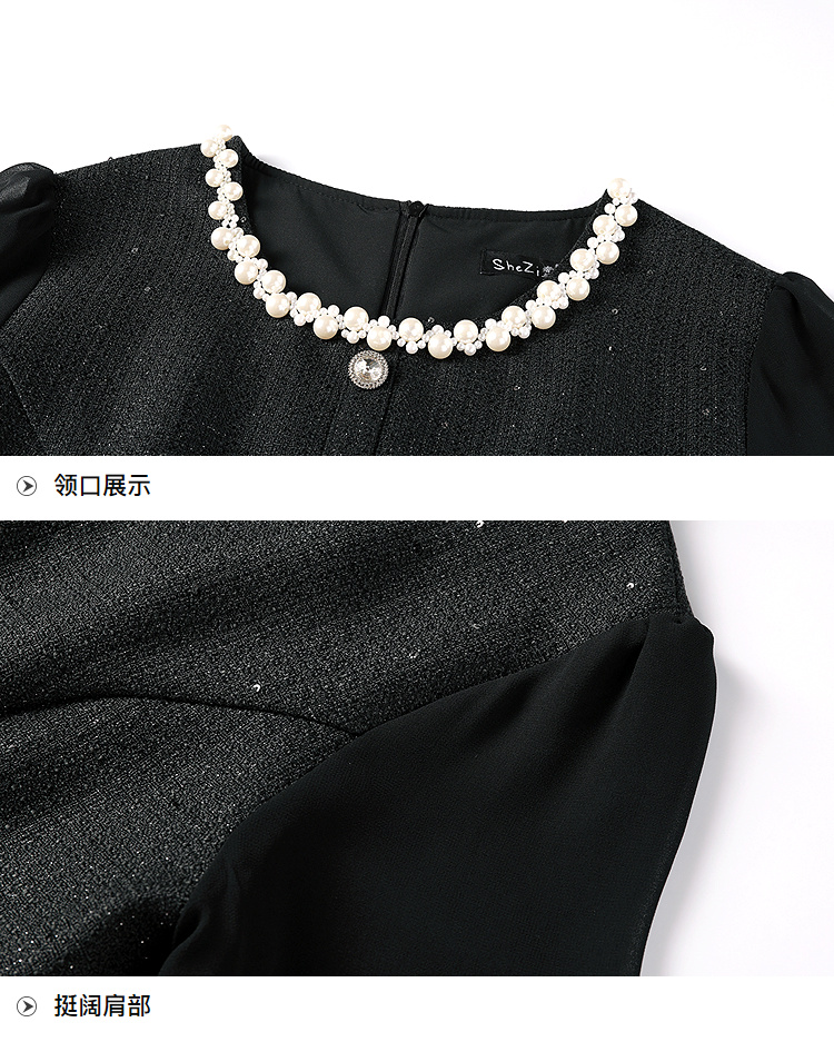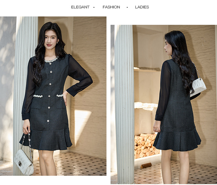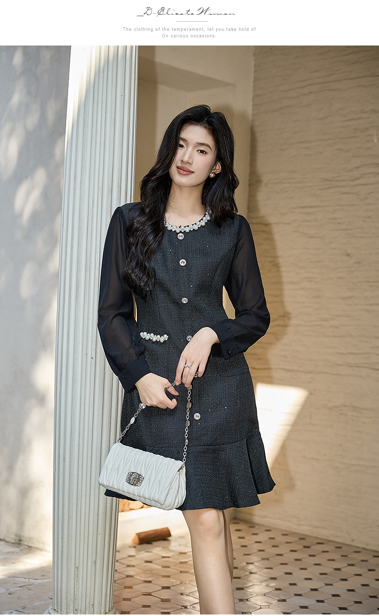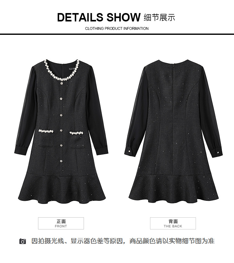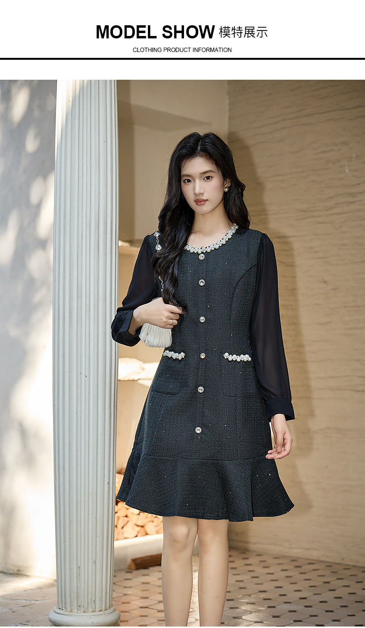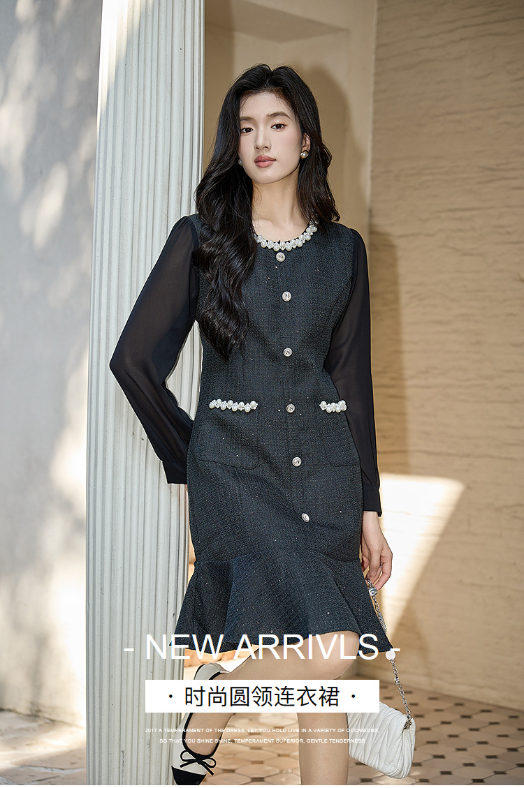 奢姿大码女装2025秋季胖妹妹时尚圆领珍珠装饰气质鱼尾设计连衣裙9953853560
