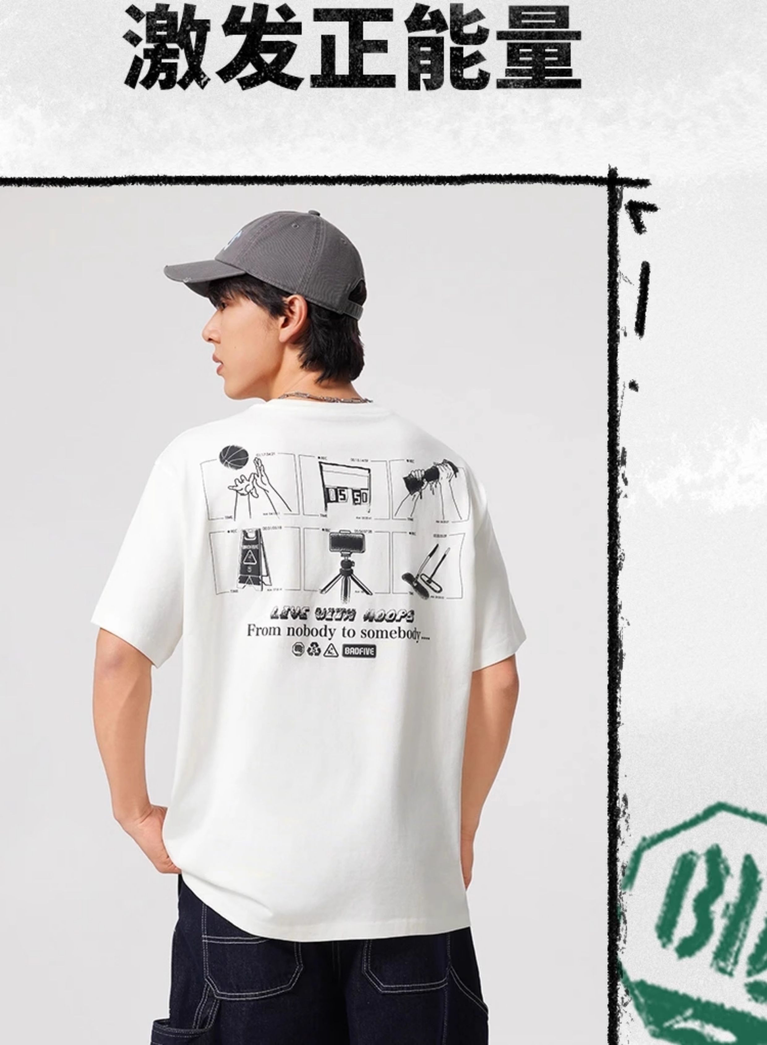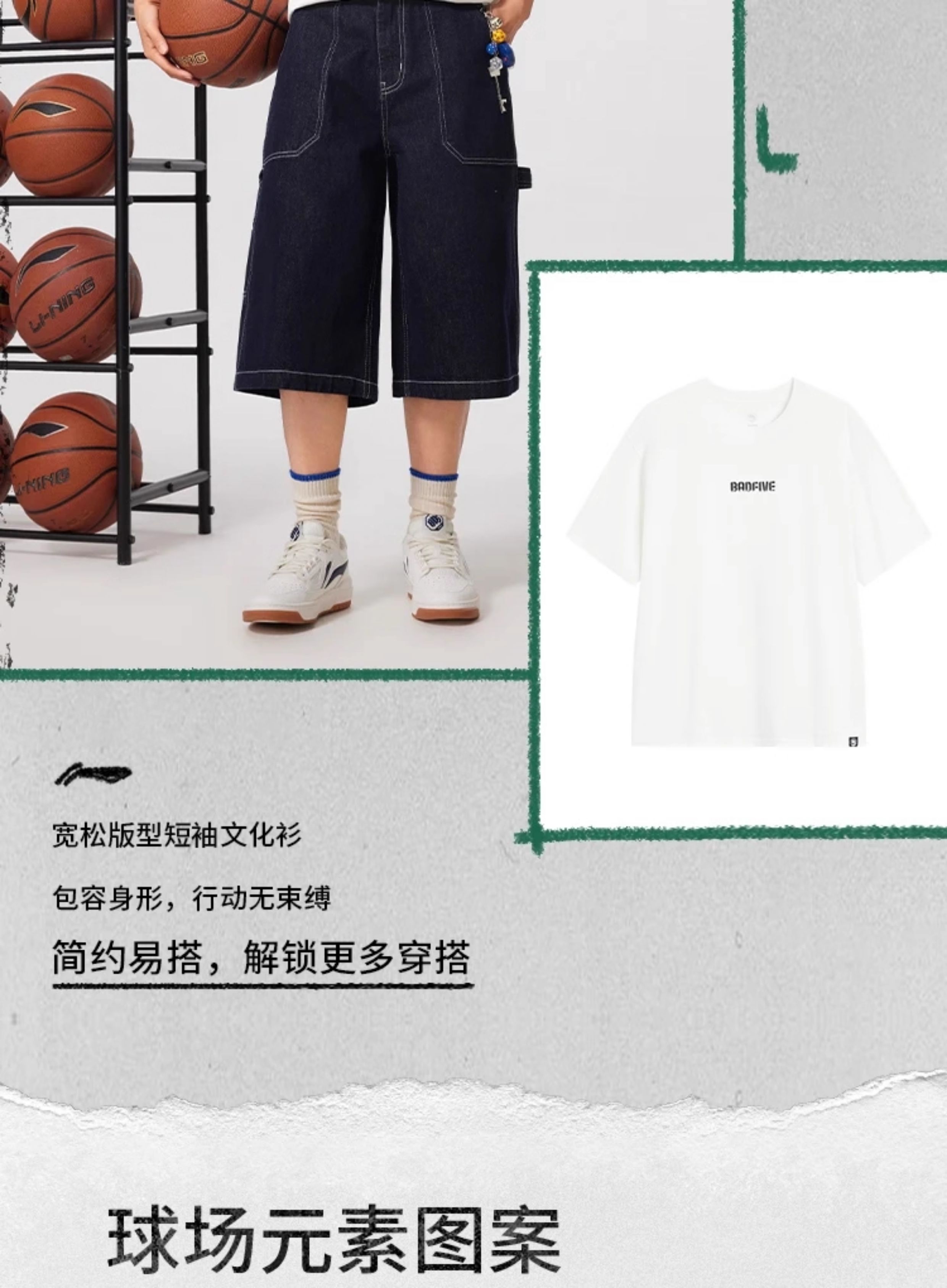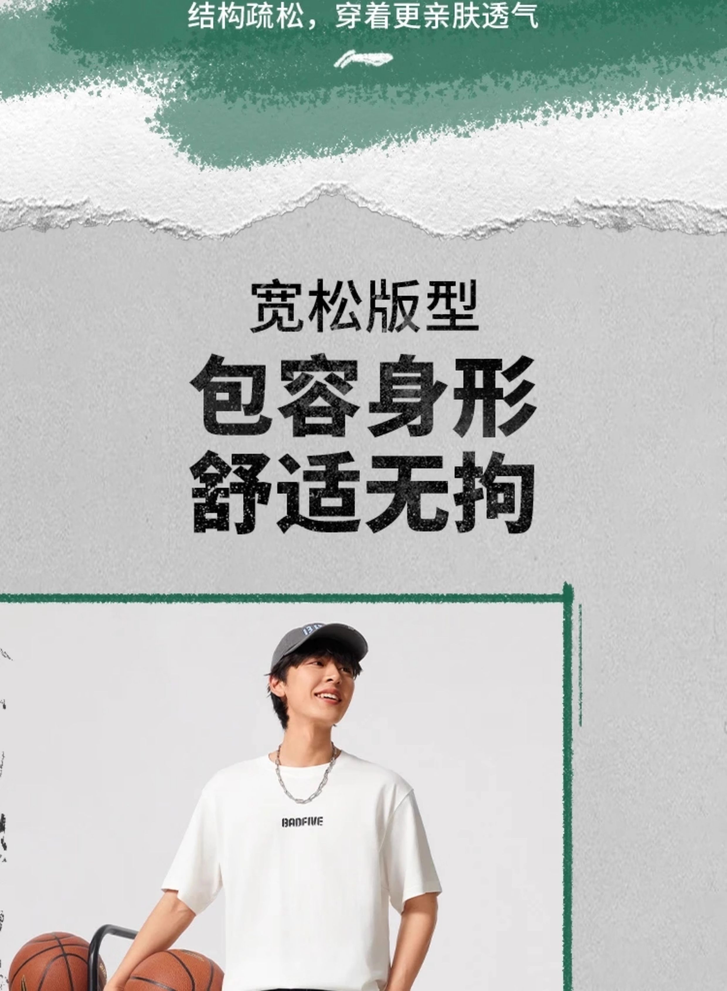 李宁T恤反伍BADFIVE男子休闲宽松短袖文化衫AHSV027