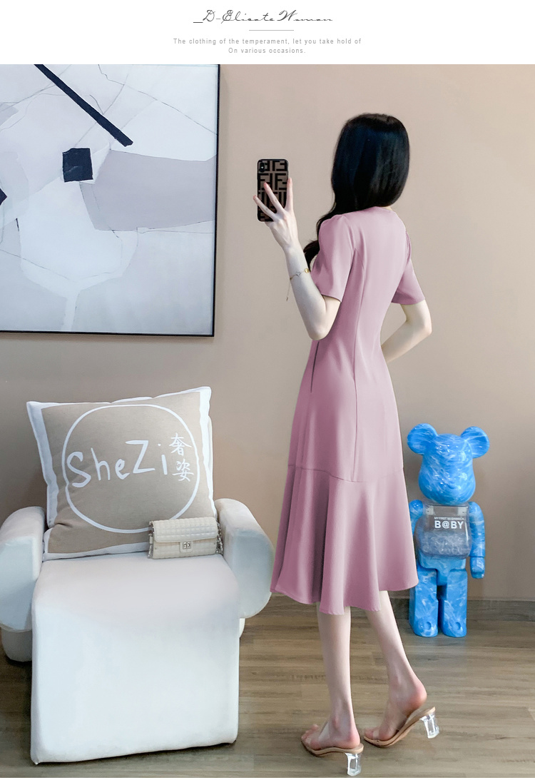 奢姿大码女装2026夏季胖妹妹V领轻奢优雅连衣裙单排扣气质裙子9952869215【1】