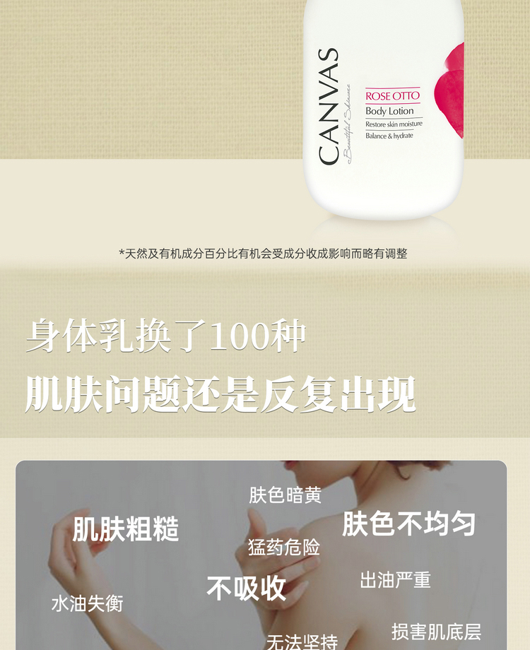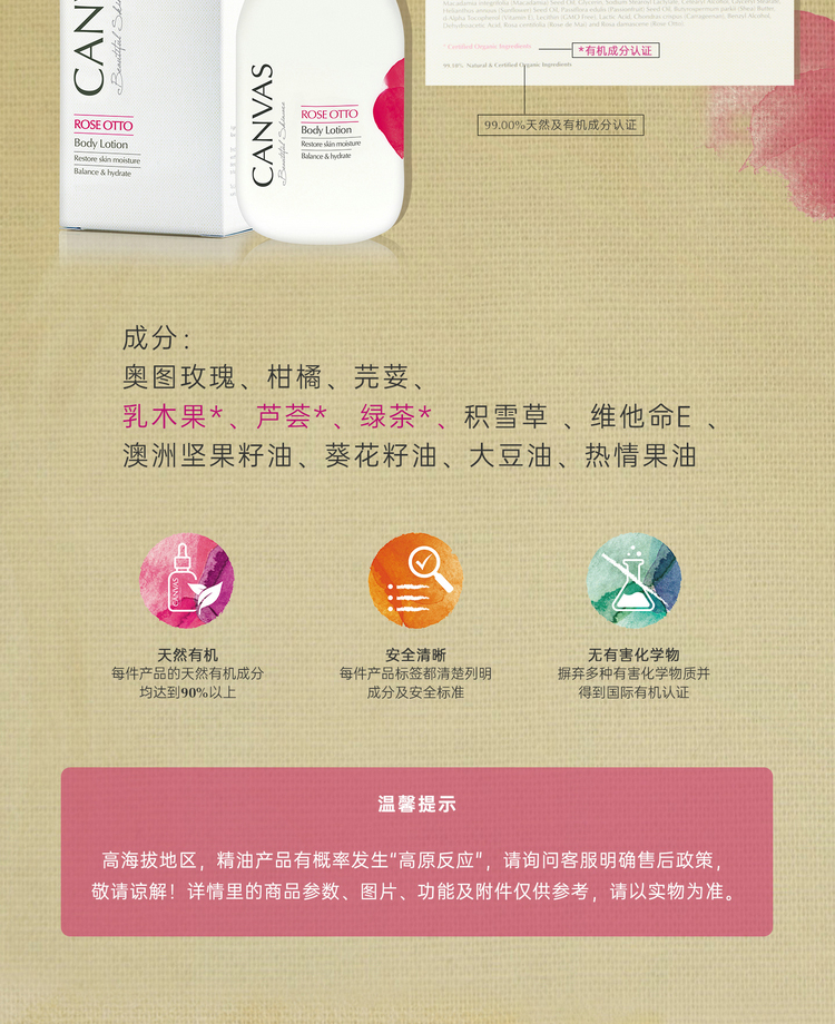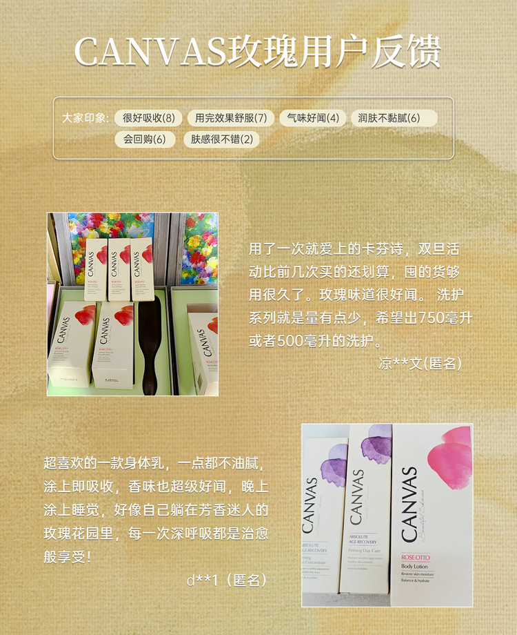 保税直发 CANVAS 卡芬诗 玫瑰保湿身体洗护套组(沐浴露 500mL+ 身体乳液 500mL)