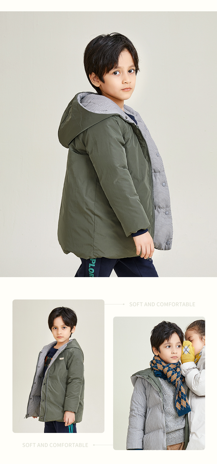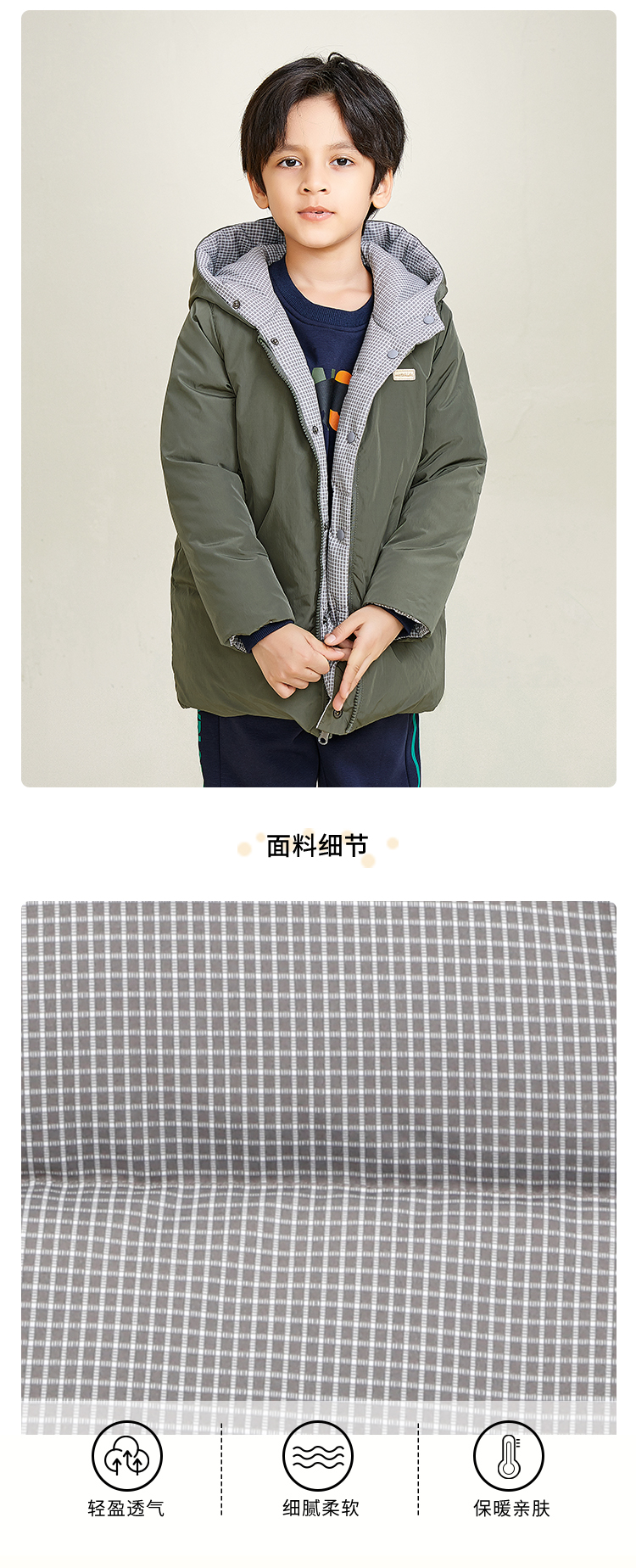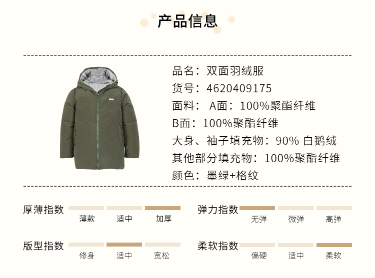| 是否带帽子: 有帽不可拆 | 颜色分类: 墨绿+格纹(双面穿) |
