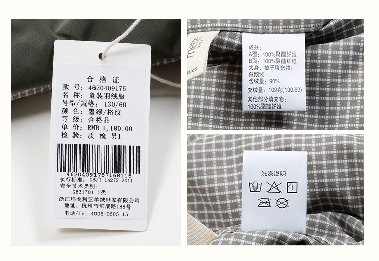 | 含绒量: 90% | 材质成分: 聚酯纤维100% |