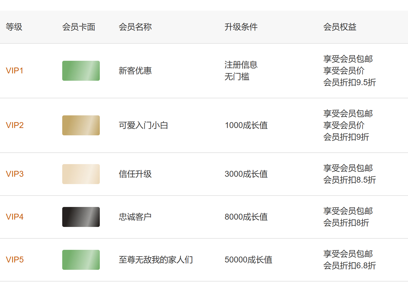 分级 也有利于回馈老客户和新客户成长~感谢!励志做百年老店!