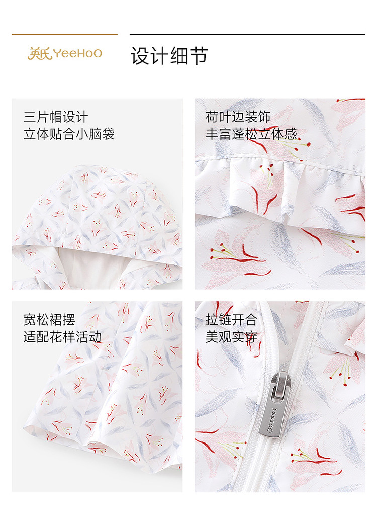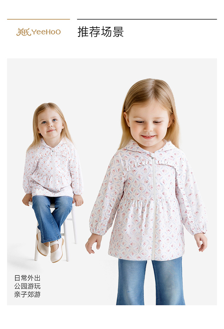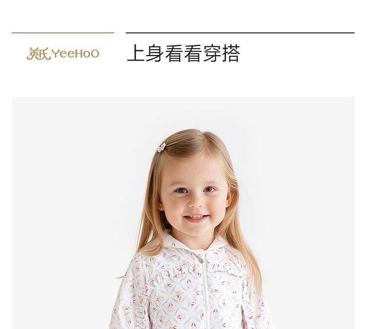 英氏儿童外套女童长袖连帽外套春秋休闲百搭新款外套YRWFJ1S002A