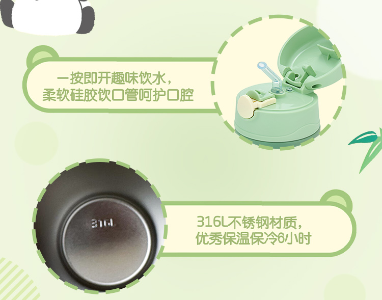 德国Thermos膳魔师 儿童直饮保温杯婴幼儿宝宝吸管杯熊猫乐园主题系列