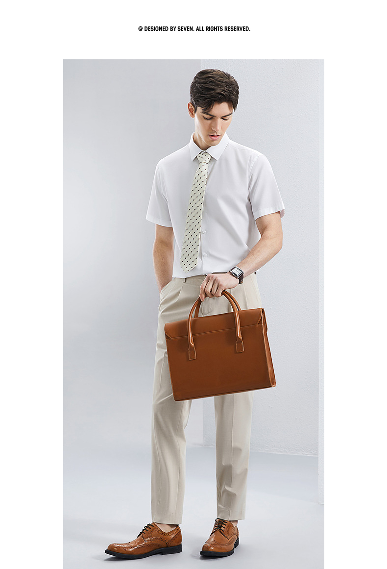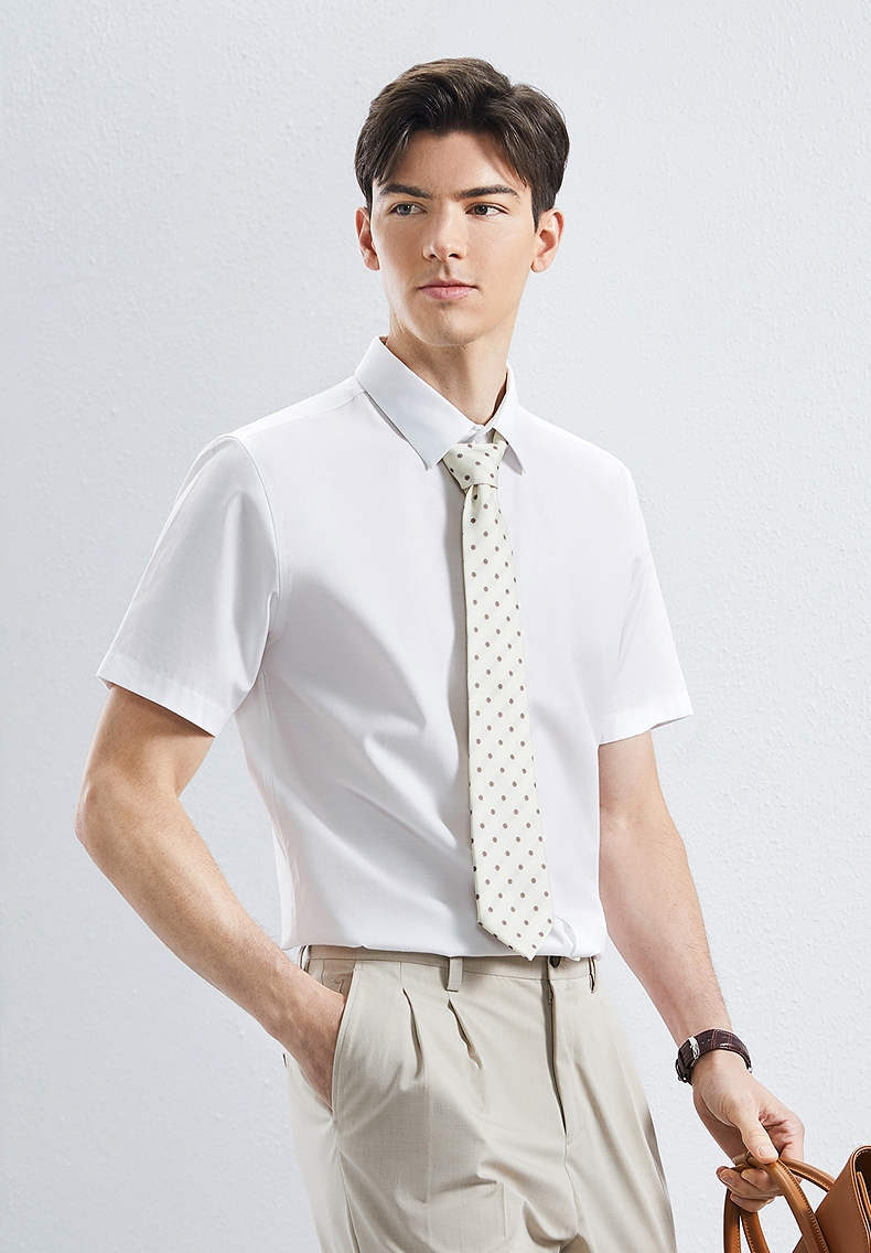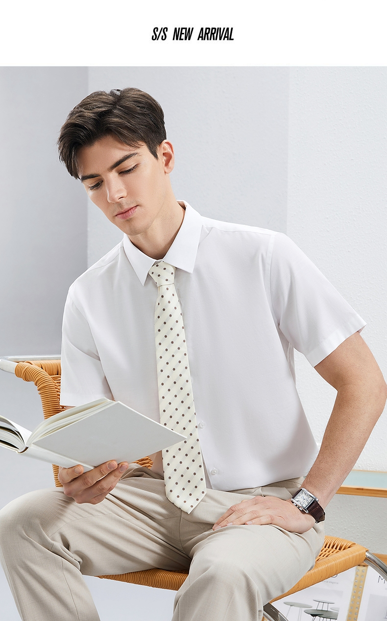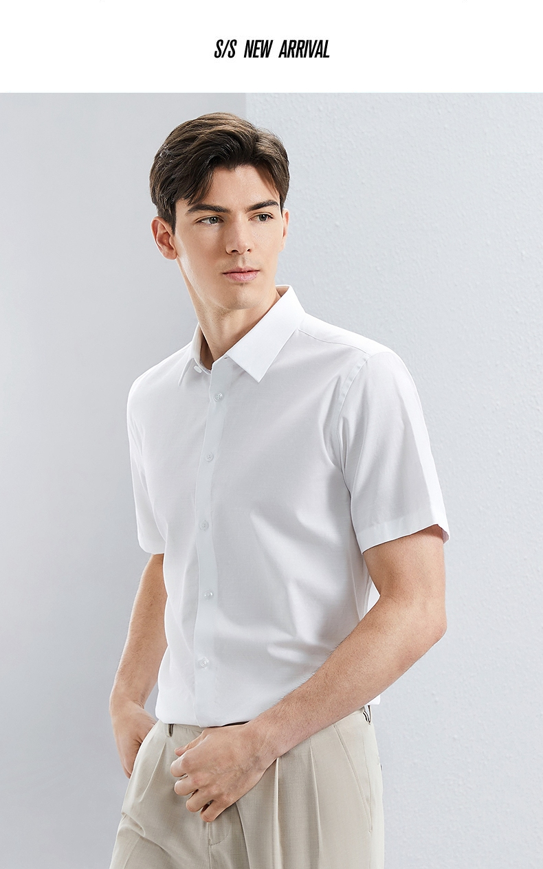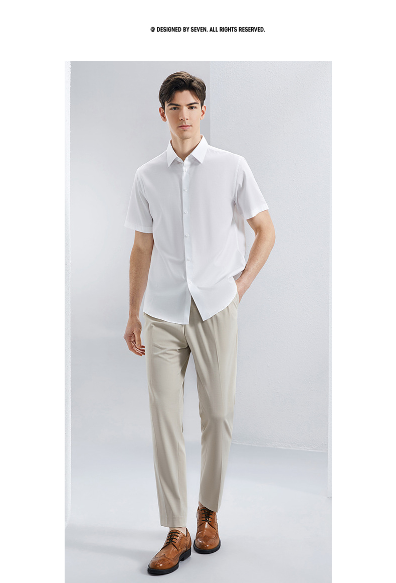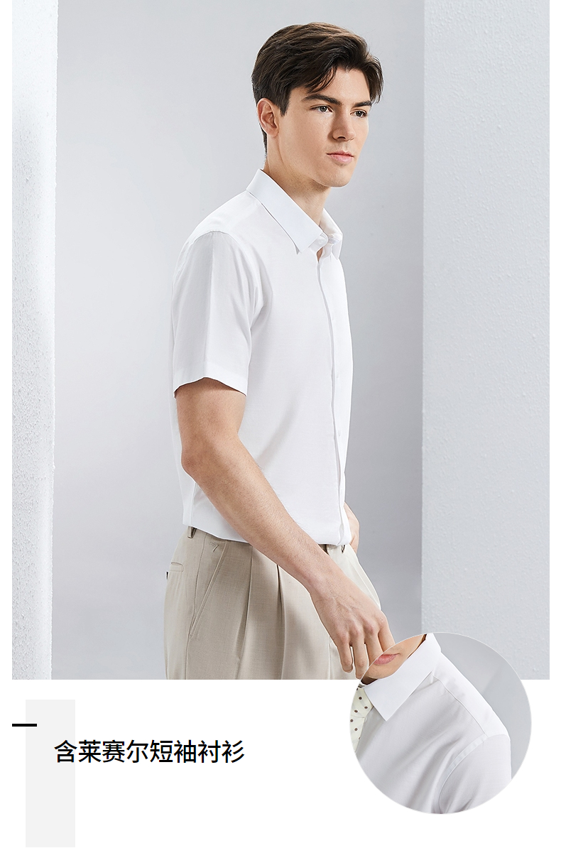 【含莱赛尔】柒牌男士短袖衬衫2024夏季新款商务休闲正装纯色衬衣 126A70230