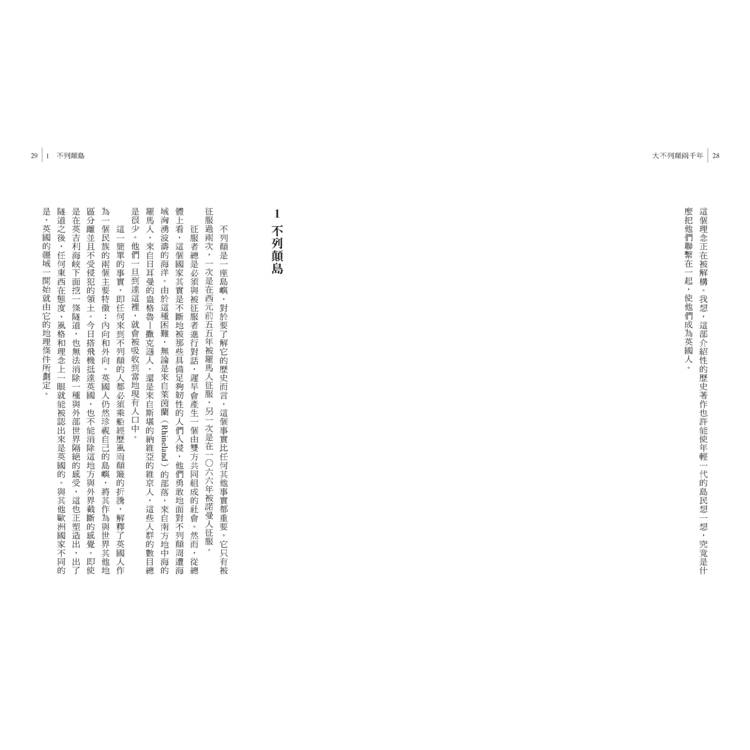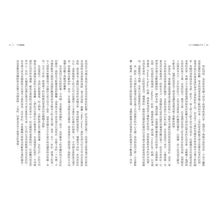 史壯在書中特別留心人民生活的面向,透過關於普羅大眾的日常,反映出英國人如何形成自我認同感,同時重視文化和思想與政治潮流息息相關、密不可分的關係。他在書中多次強調,「不列顛是一座島嶼,對於要了解它的歷史而言,這個事實比任何其他事實都重要。」被海洋包圍的特性,創造了英國人獨特的民族性格,讓他們既追求遺世獨立、享受島嶼的庇護,又不斷想要往外冒險,探索未知的世界。對於同樣生活於群島國度的臺灣讀者,大不列顛兩千年的經驗是否也能帶來借鑑與啟發?