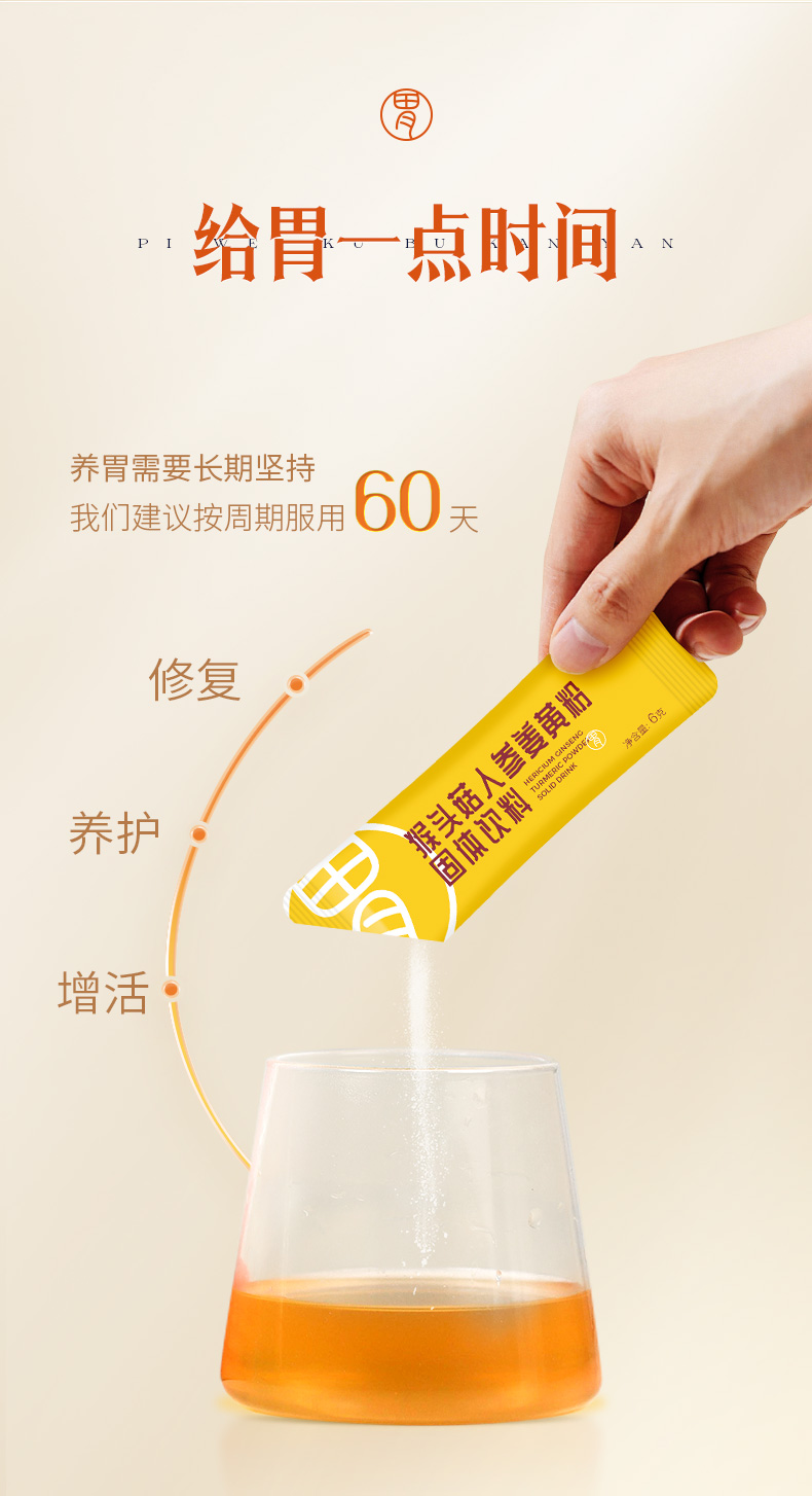 【猴头菇人参姜黄粉】“玻璃胃”再无惧“炎”值,成分提取专利,独家添加修护姜黄