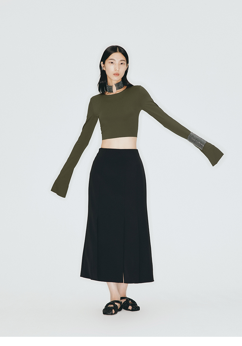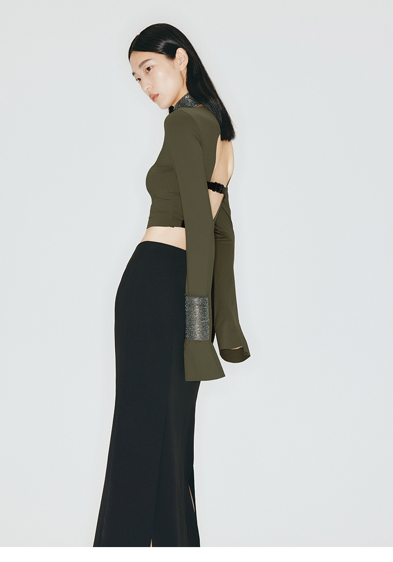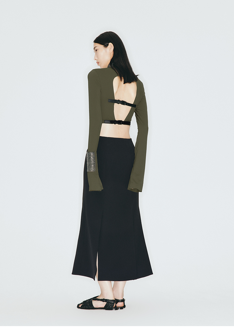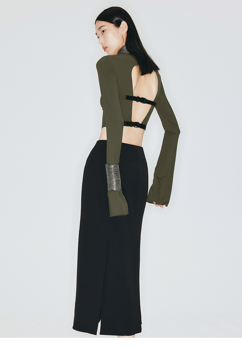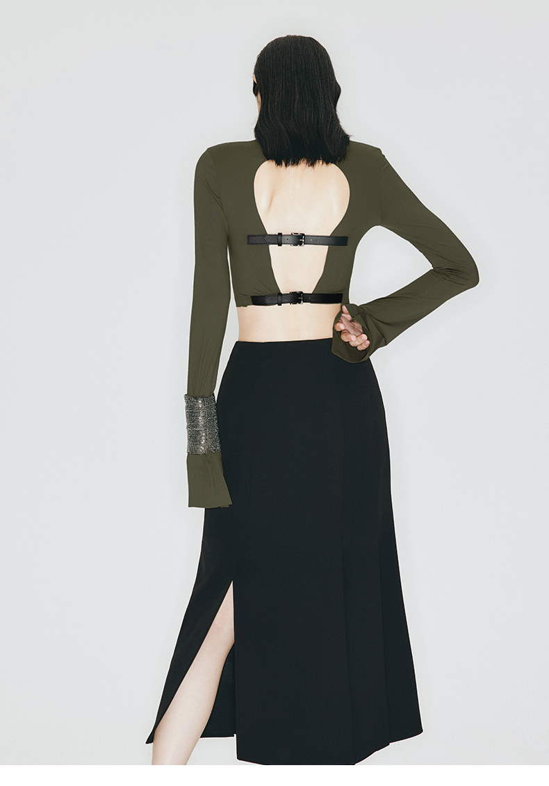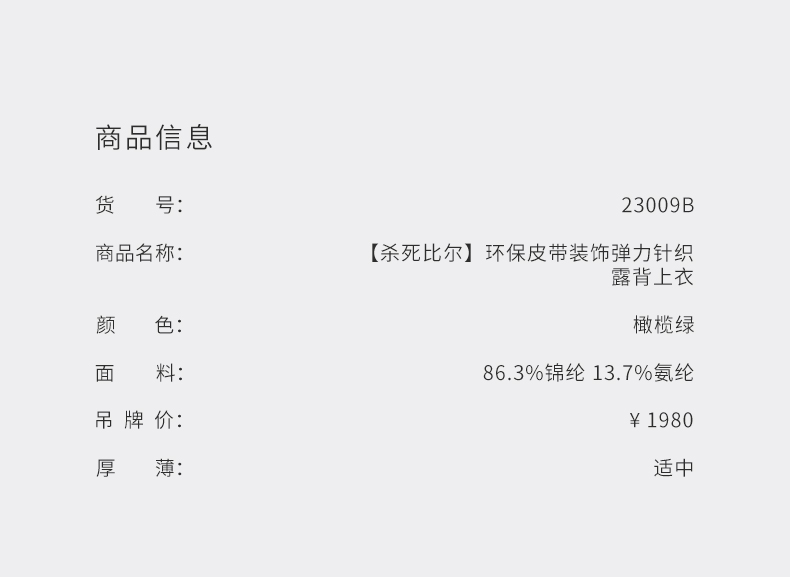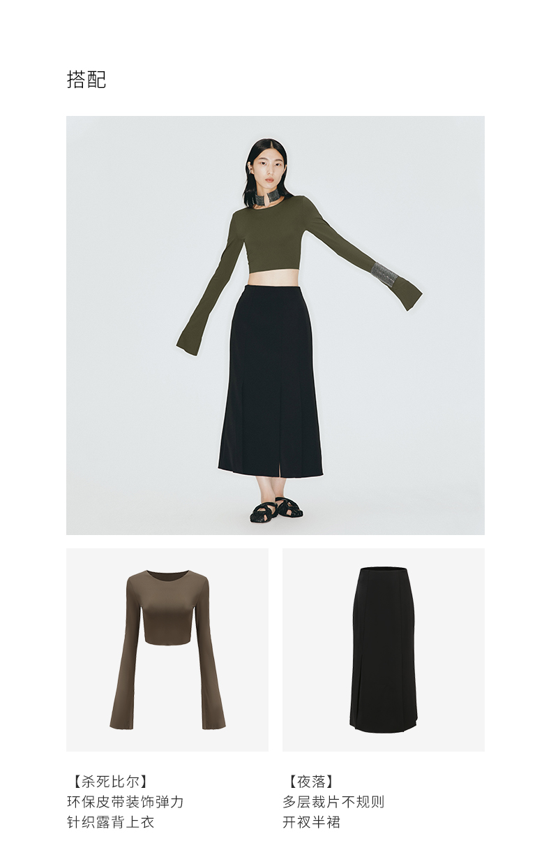 【杀死比尔】环保皮带装饰弹力针织露背上衣23009B