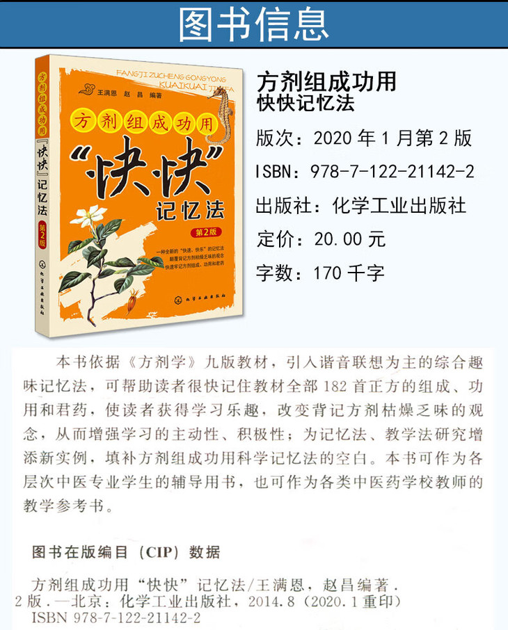 《方制组成功用“快快”记忆法(第2版)》依据《方剂学》近期新9版教材,引入谐音联想为主的综合趣味记忆法,可帮助读者很快记住教材全部210首正方的组成、功用和君药,使读者获得学习乐趣,改变背记方剂枯燥乏味的观念,从而增强学习的主动性、积极性;为记忆法、教学法研究增添新实例,填补方剂组成功用科学记忆法的空白。《方制组成功用“快快”记忆法(第2版)》可作为各层次中医专业学生的辅导用书,也可作为各类中医药学校教师的教学参考书......