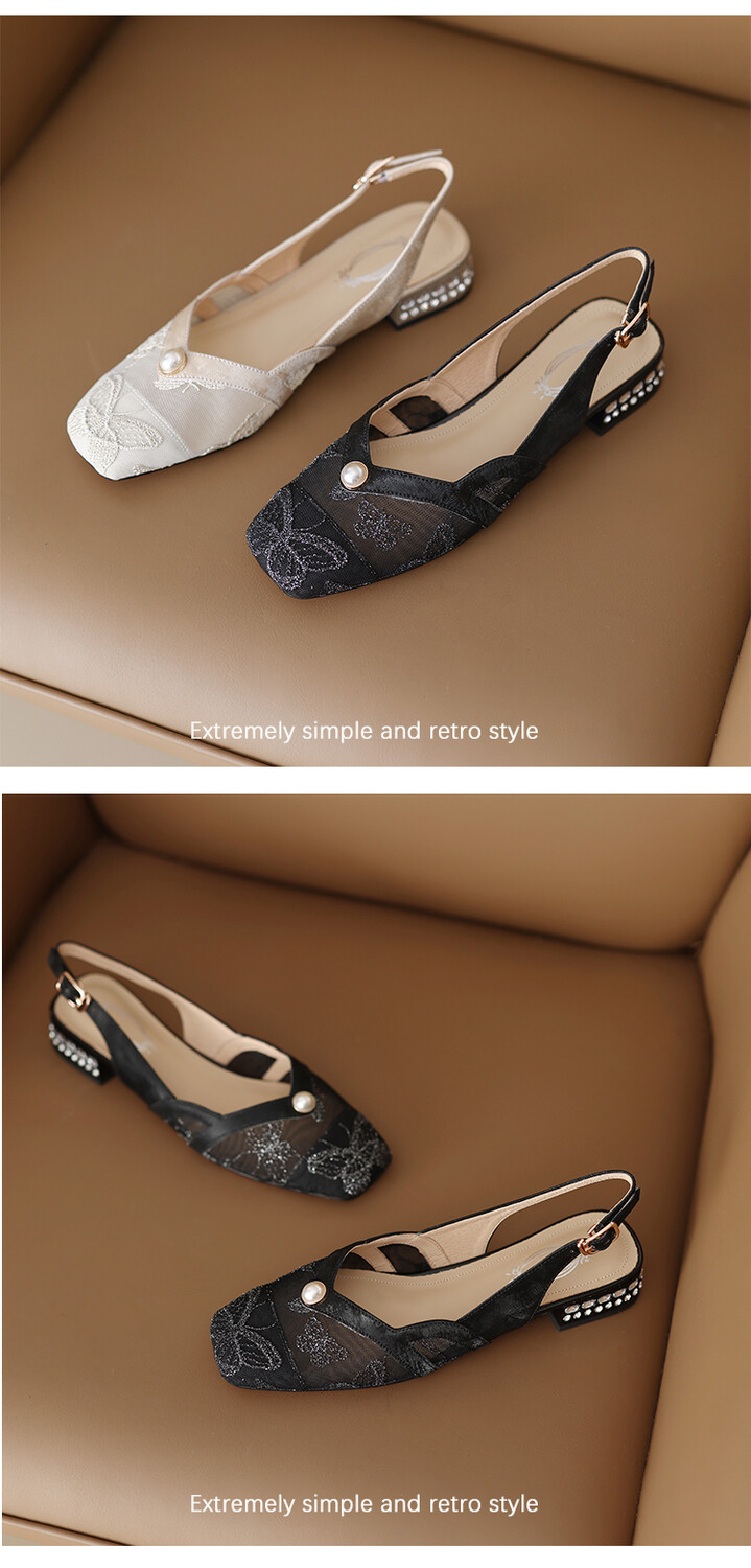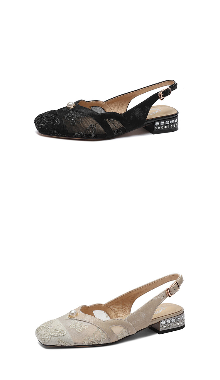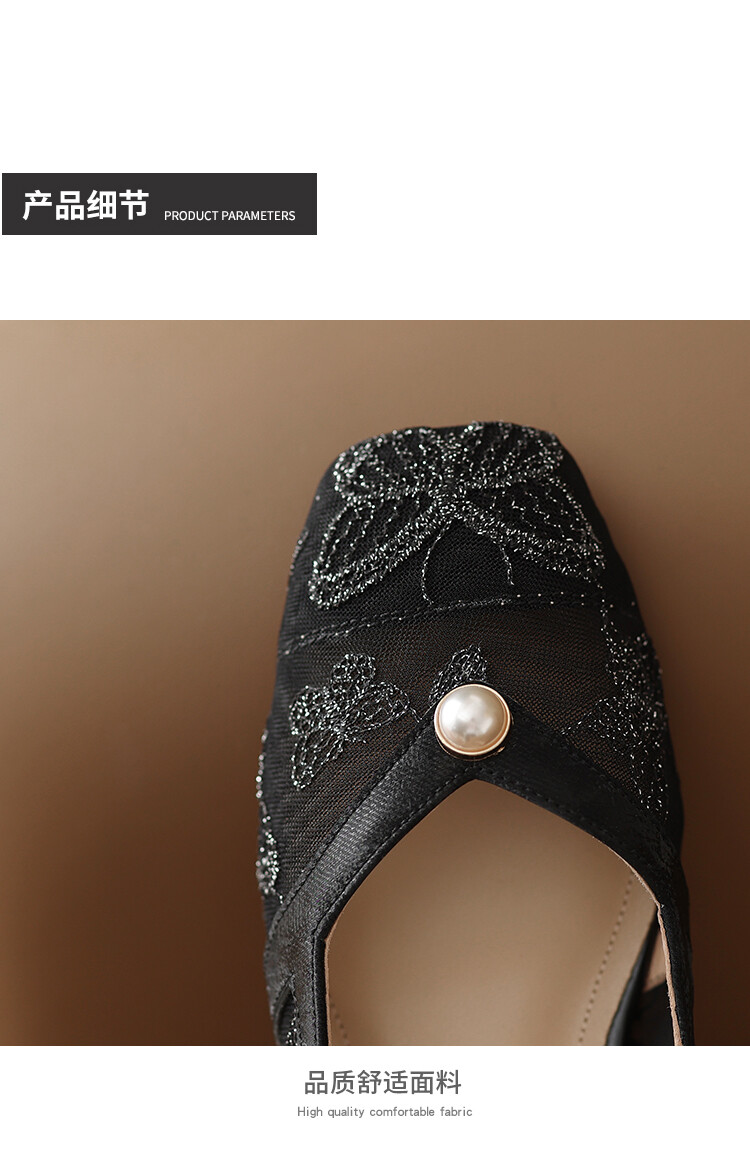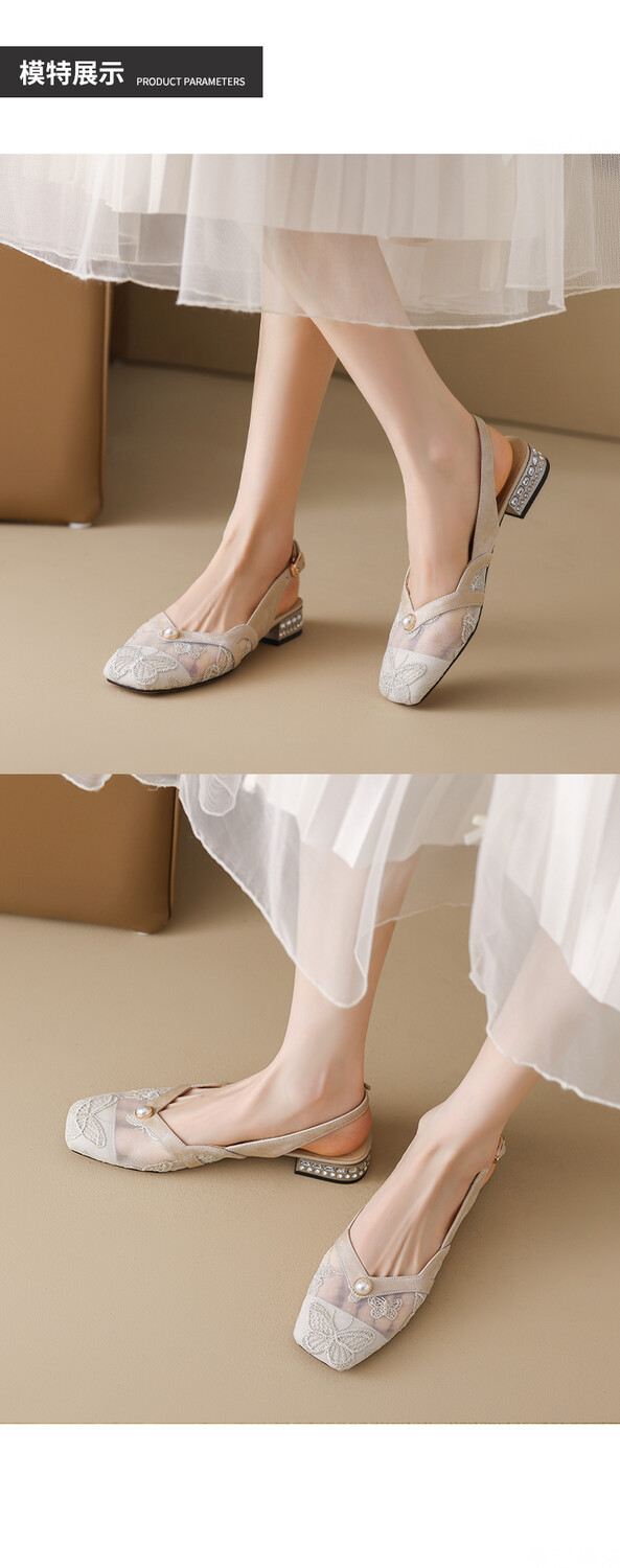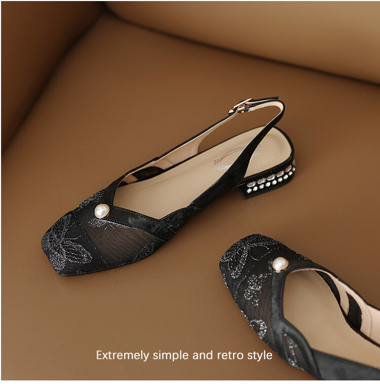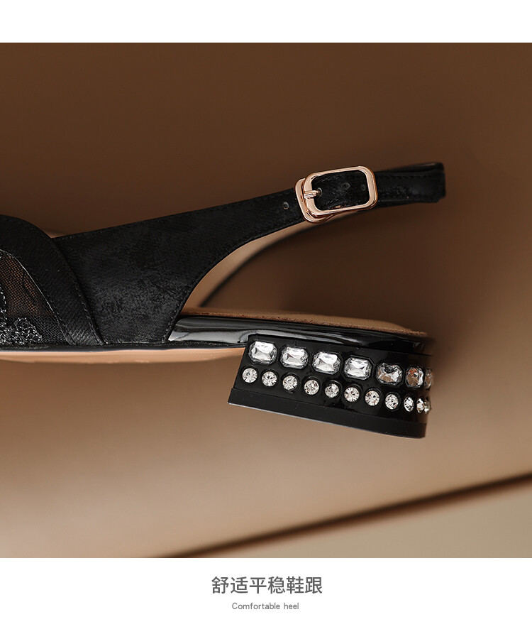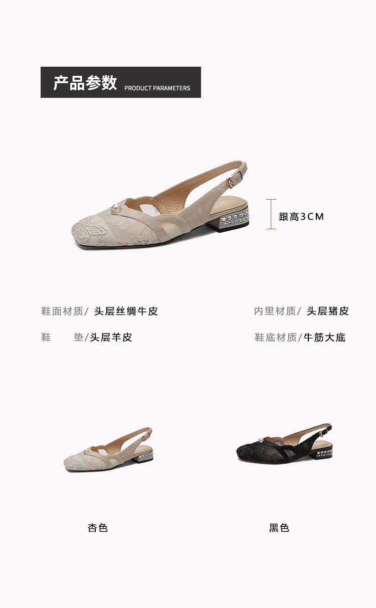 【预售5天】复古蝴蝶绣花凉鞋女夏粗跟黑色网纱包头凉鞋中高跟HYT&7345