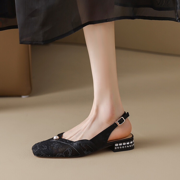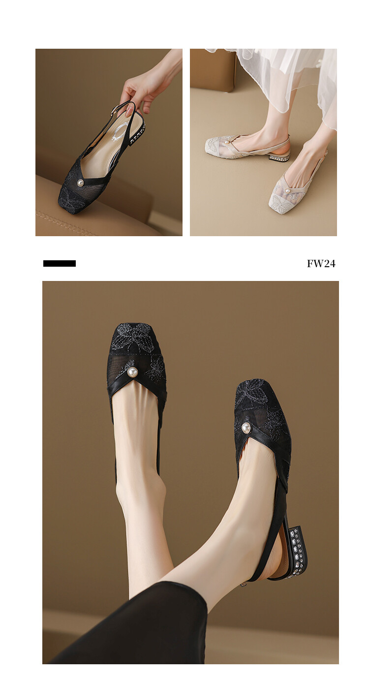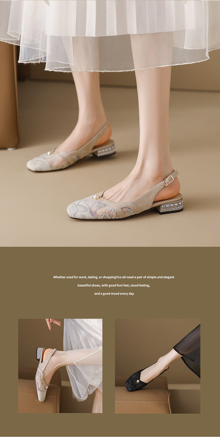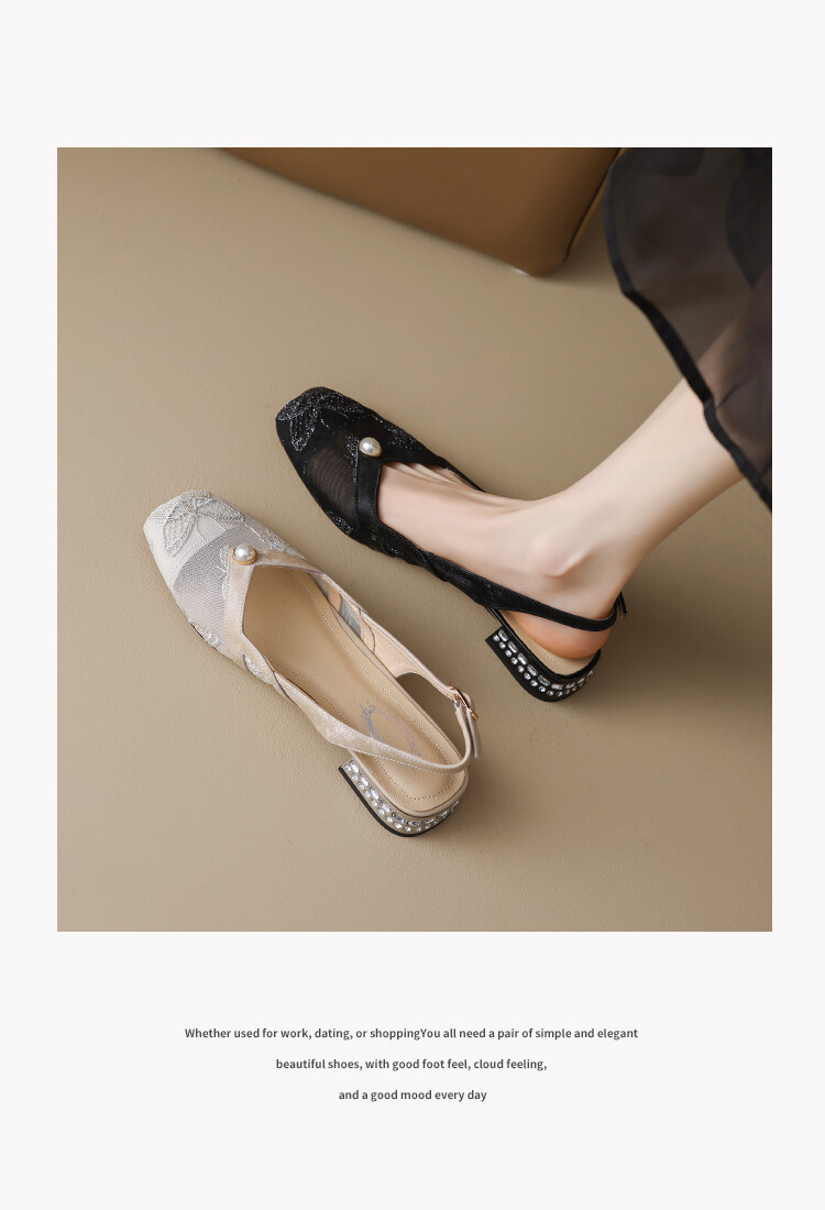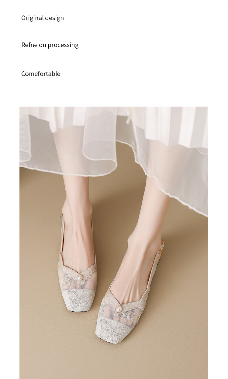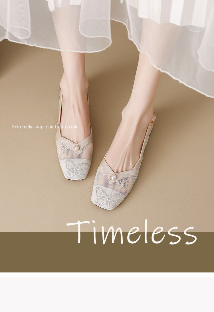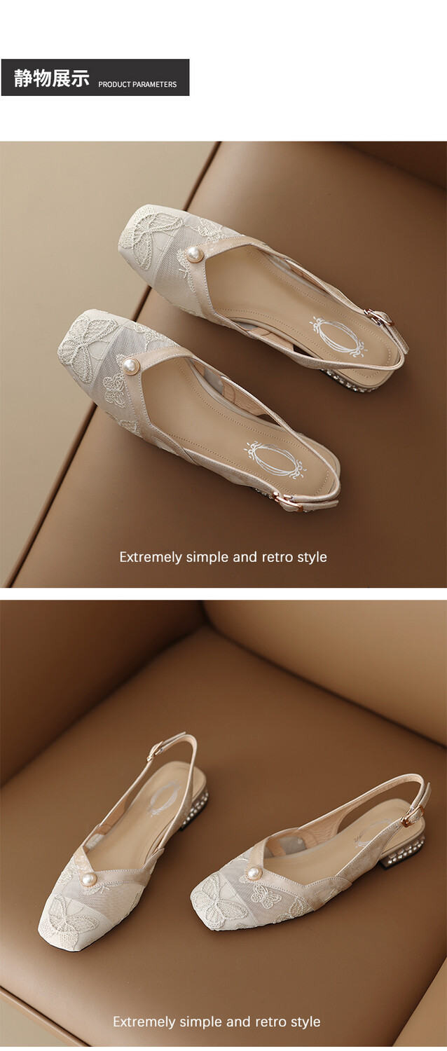 【预售5天】复古蝴蝶绣花凉鞋女夏粗跟黑色网纱包头凉鞋中高跟HYT&7345