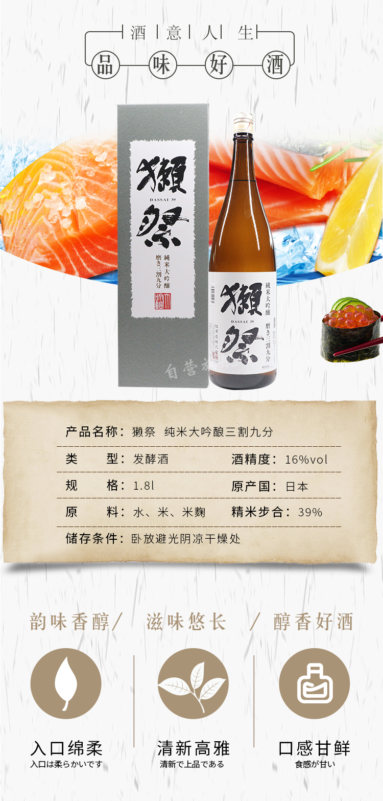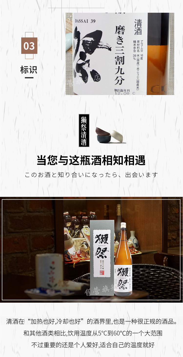 【单瓶】獭祭39 三割九分 纯米大吟酿 日本清酒 正品行货 1.8L 16%vol