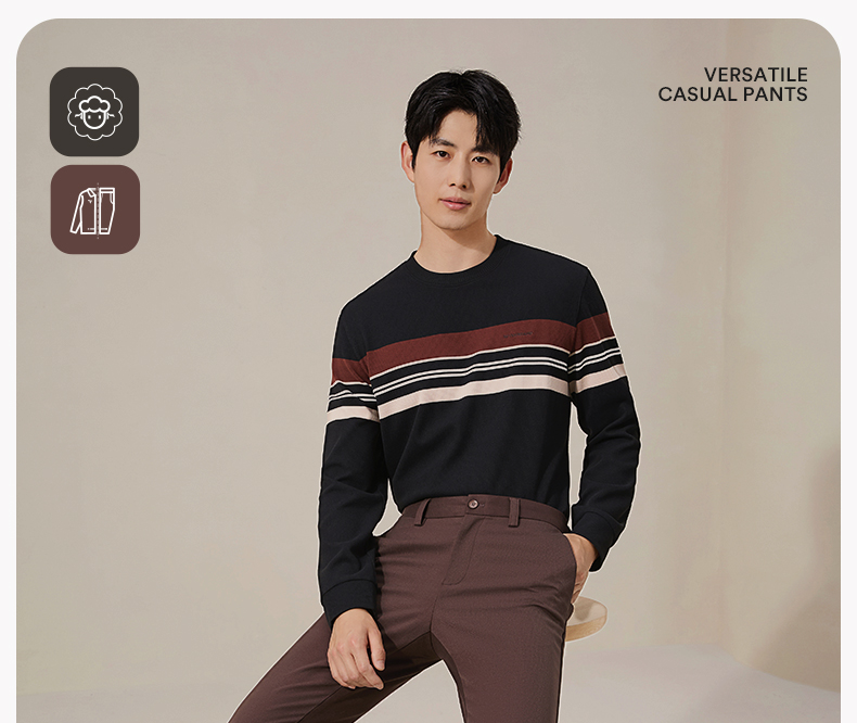 【含羊毛/莱赛尔】柒牌男士休闲裤2025秋冬保暖通勤商务直筒长裤129H70890