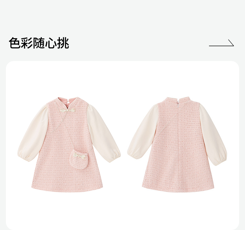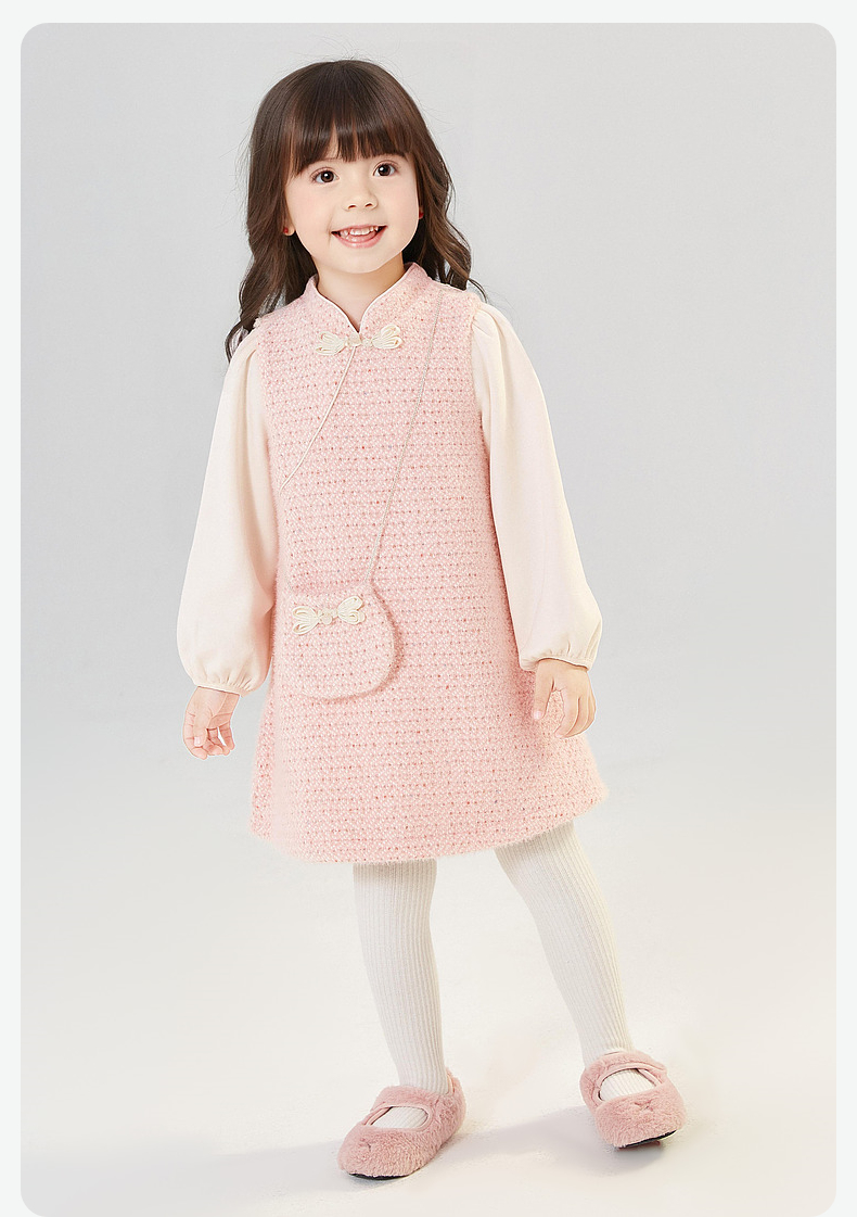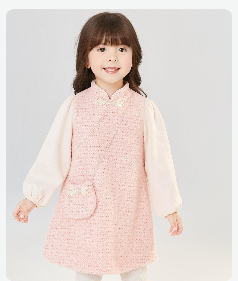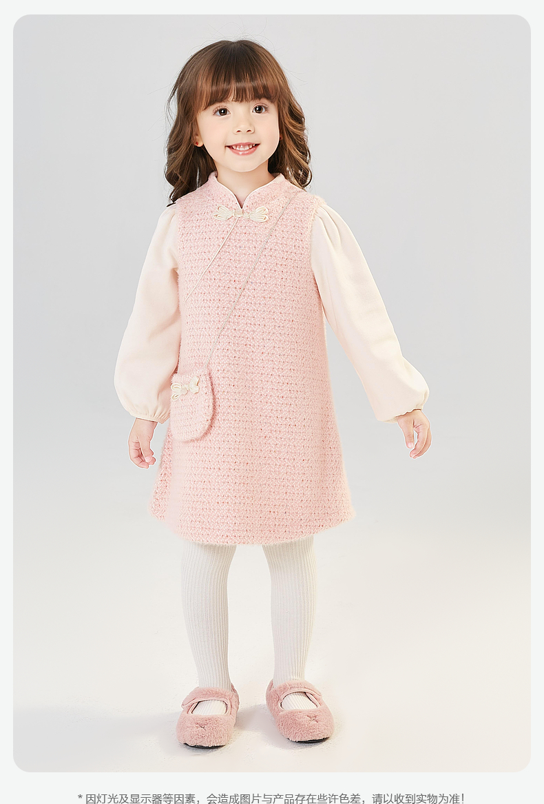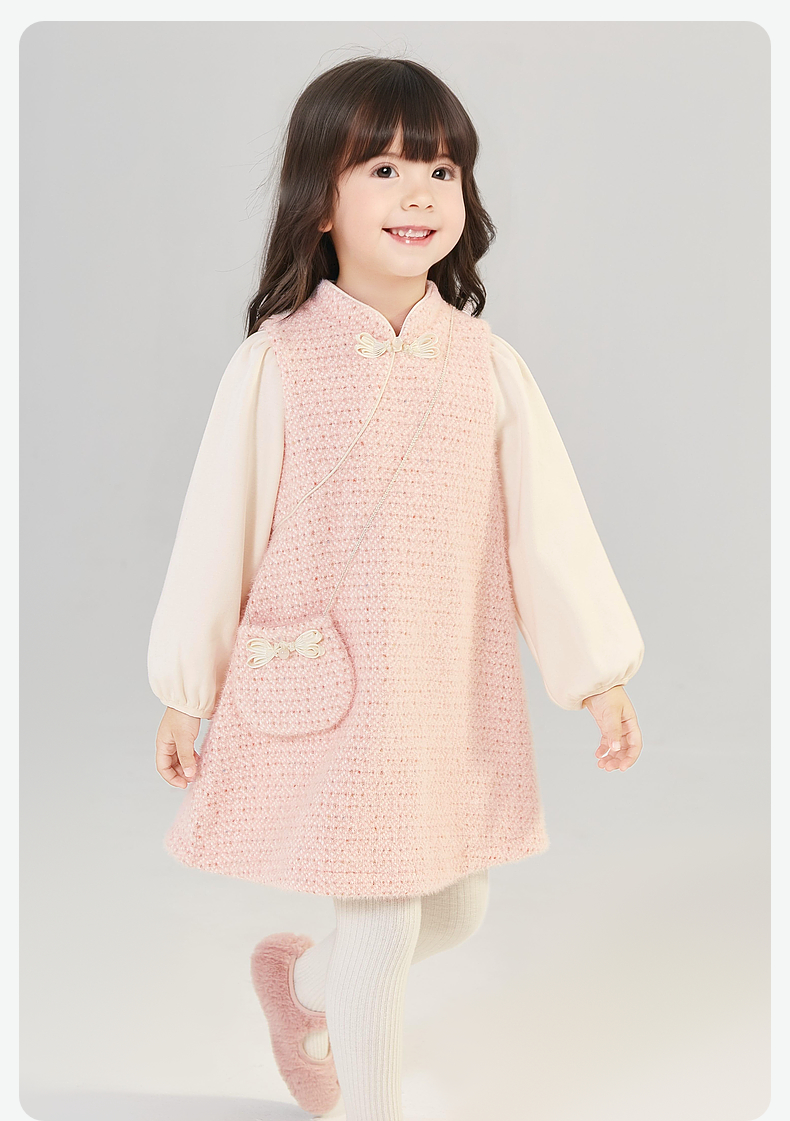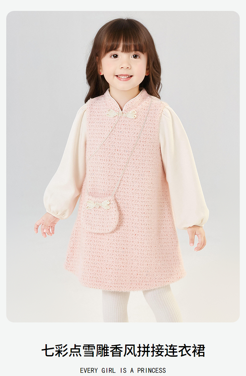 笛莎Deesha 童装女童连衣裙2024冬季新款香风拼接连衣裙