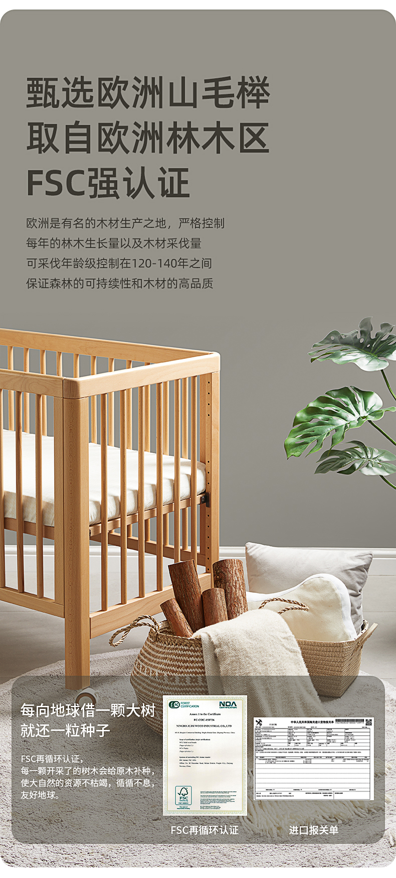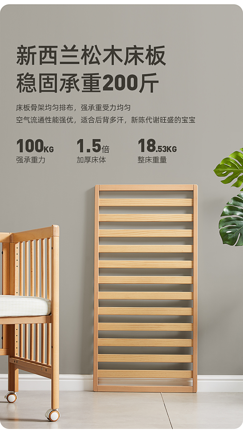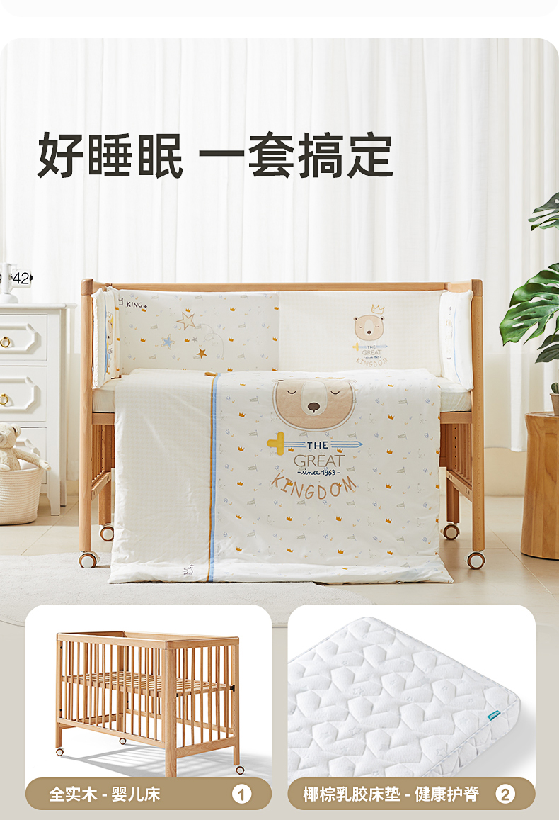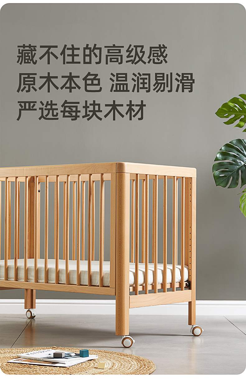 KUB可优比新生婴儿床拼接大床山毛榉宝宝床全实木可移动多功能床