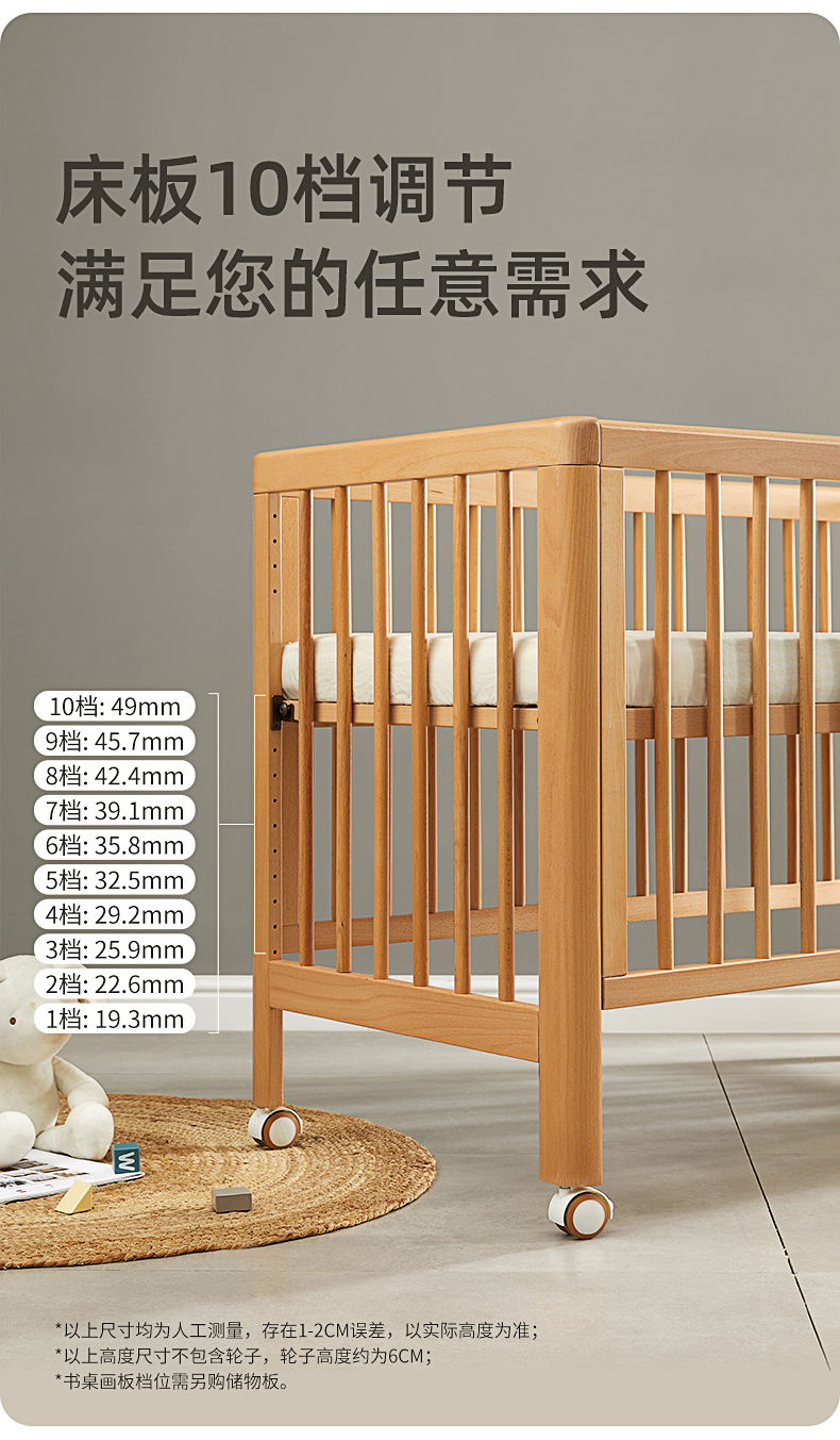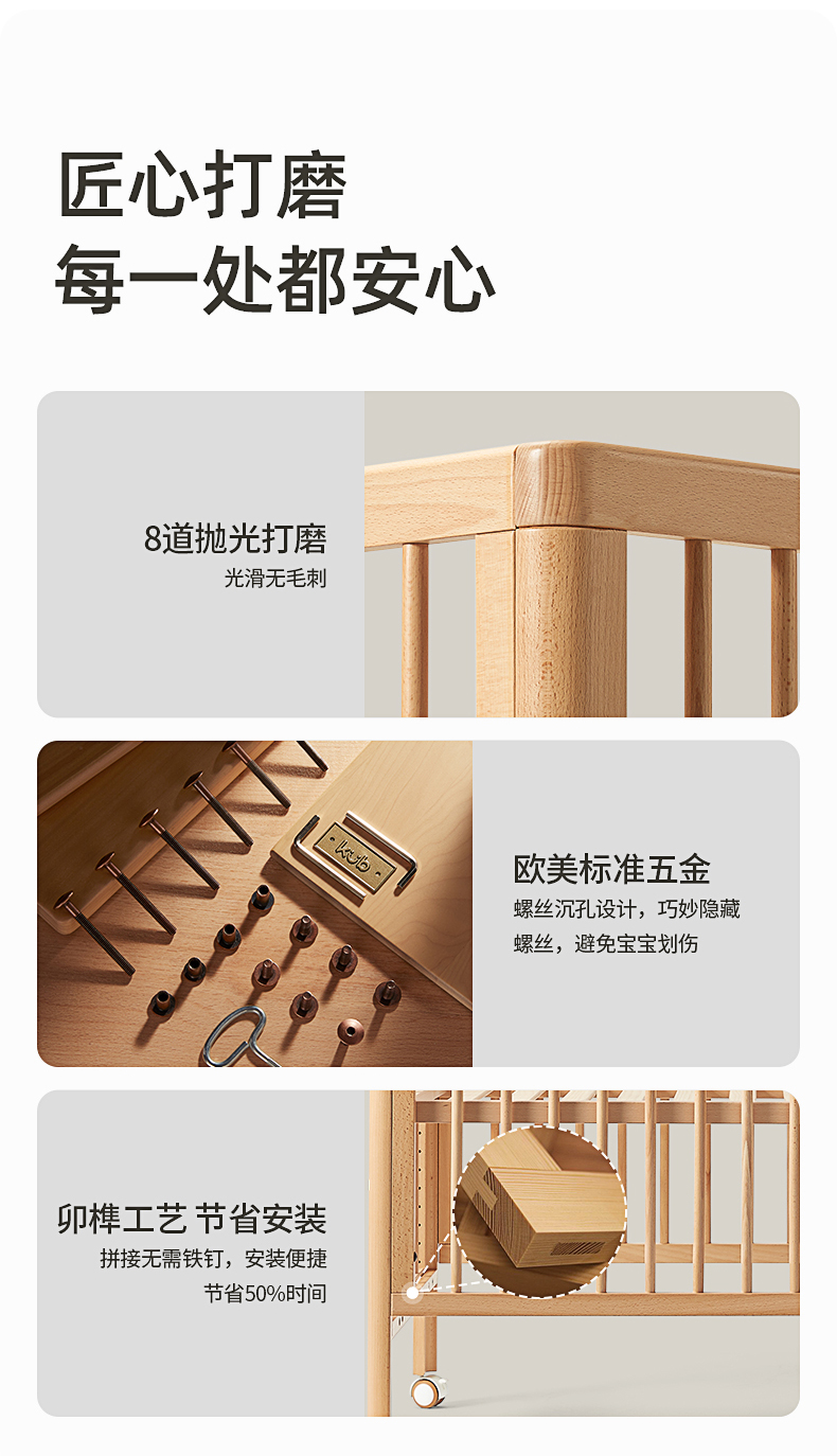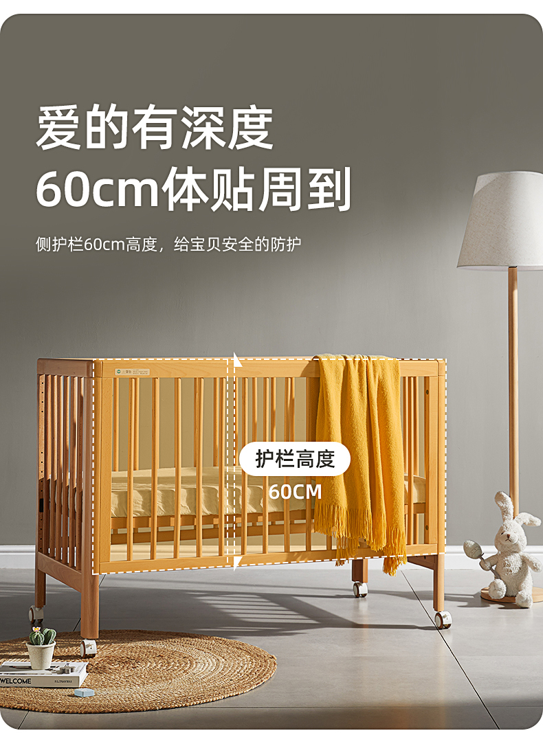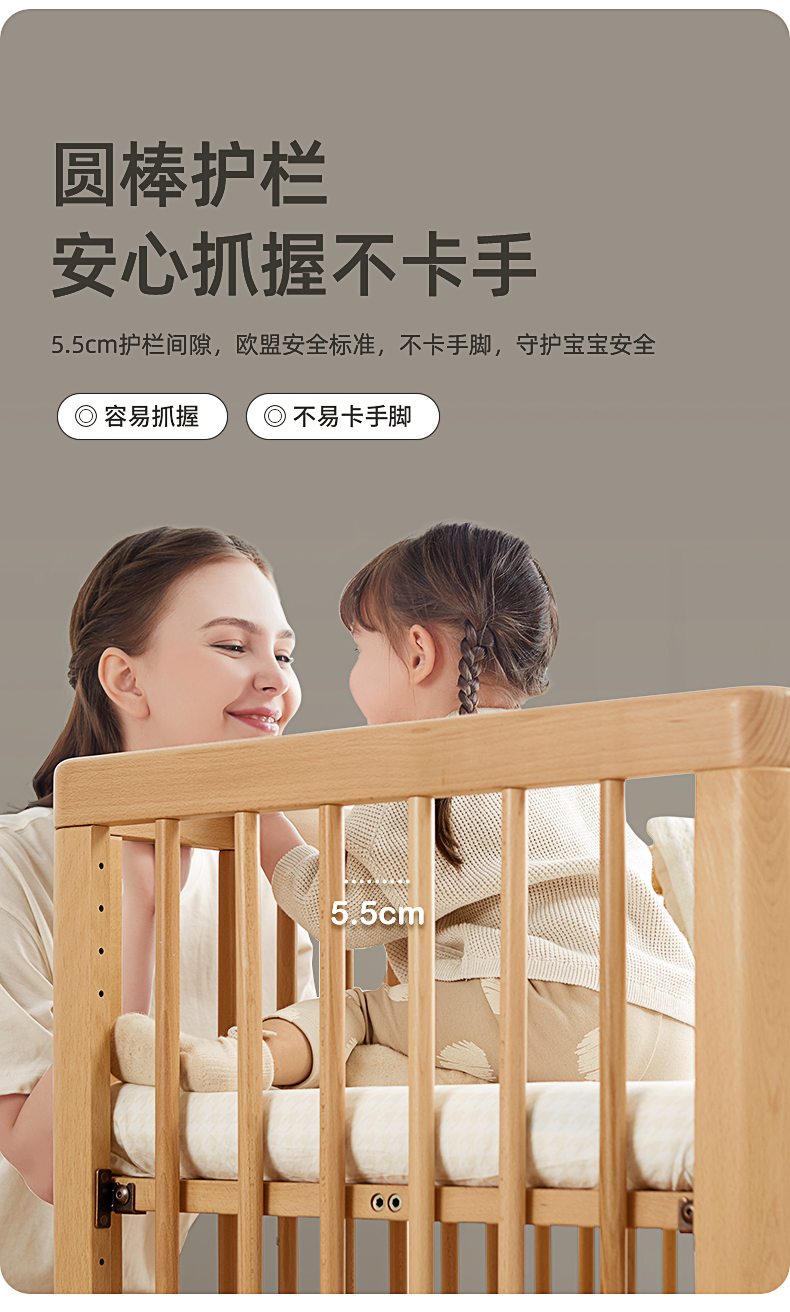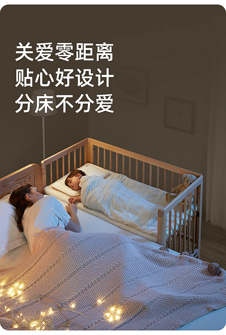KUB可优比新生婴儿床拼接大床山毛榉宝宝床全实木可移动多功能床