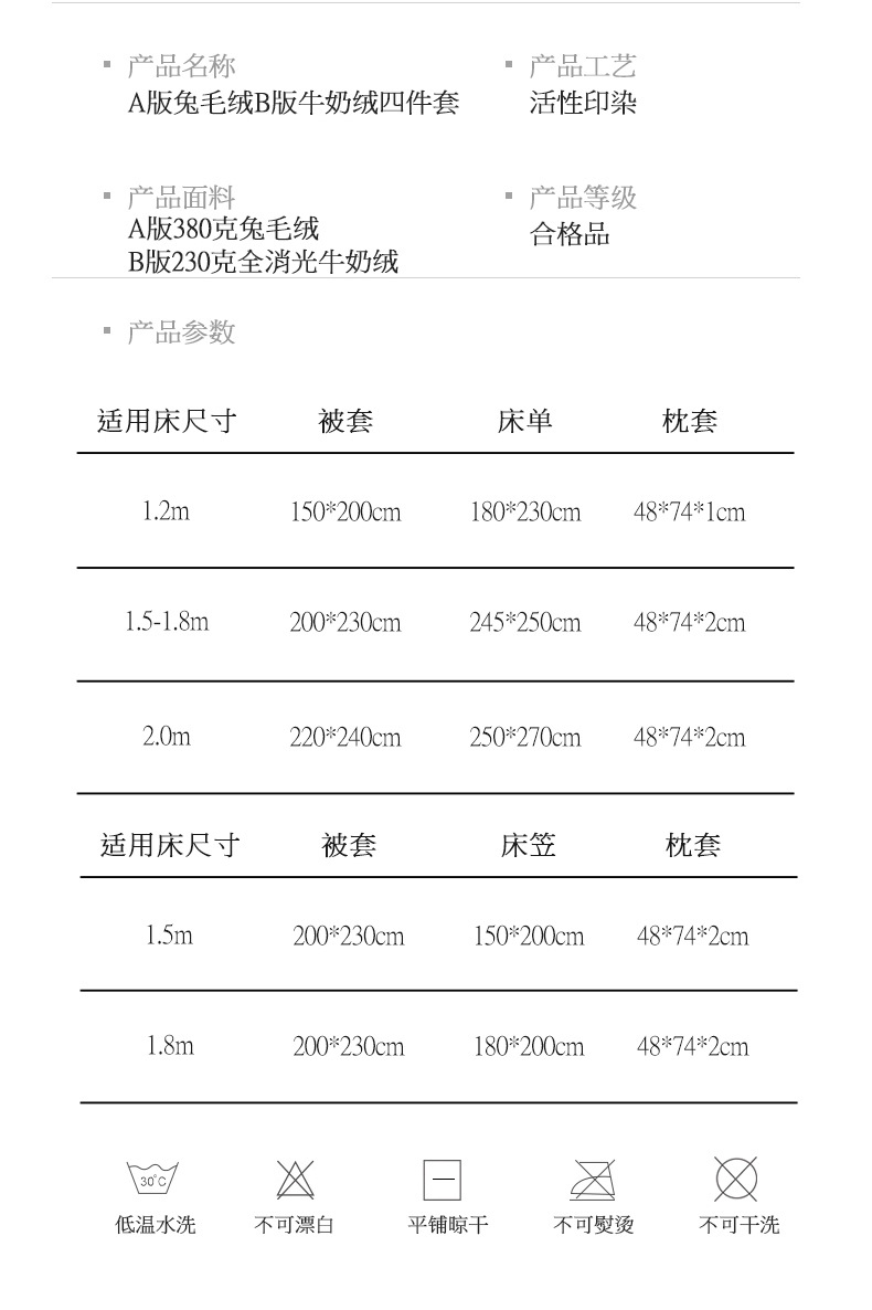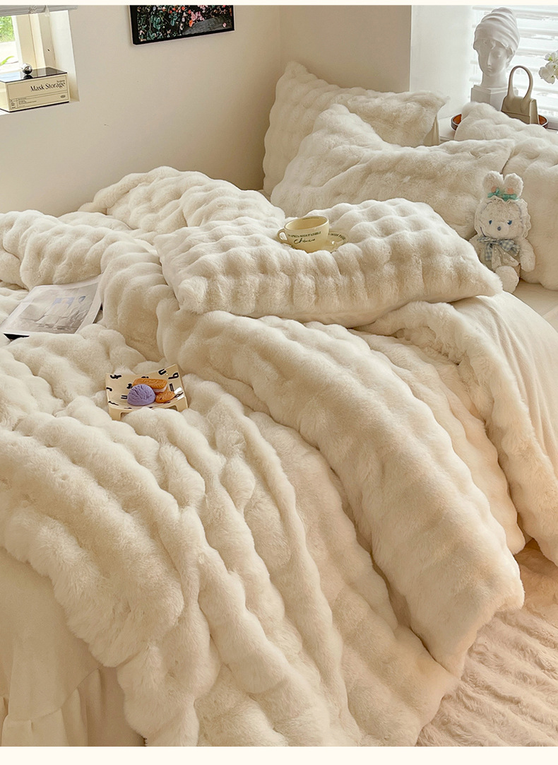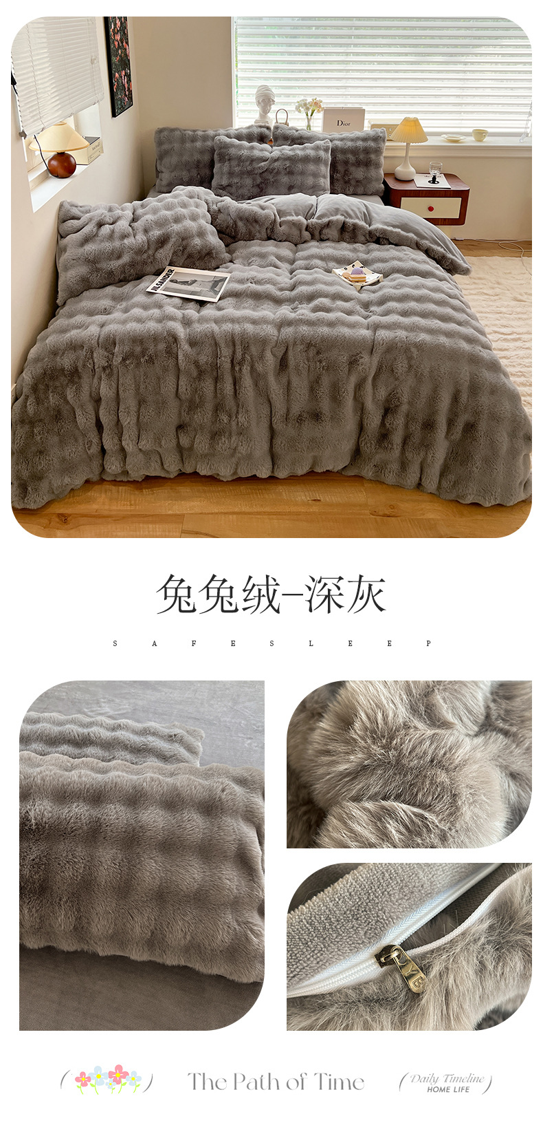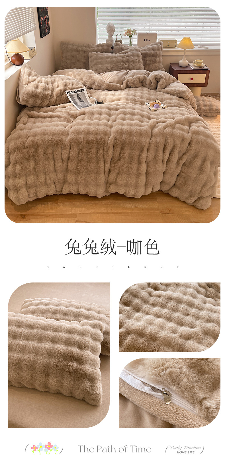 冬季爆款【柔兔绒兔兔绒四件套床品】牛奶绒宝宝绒床单床笠四件套 软糯舒适