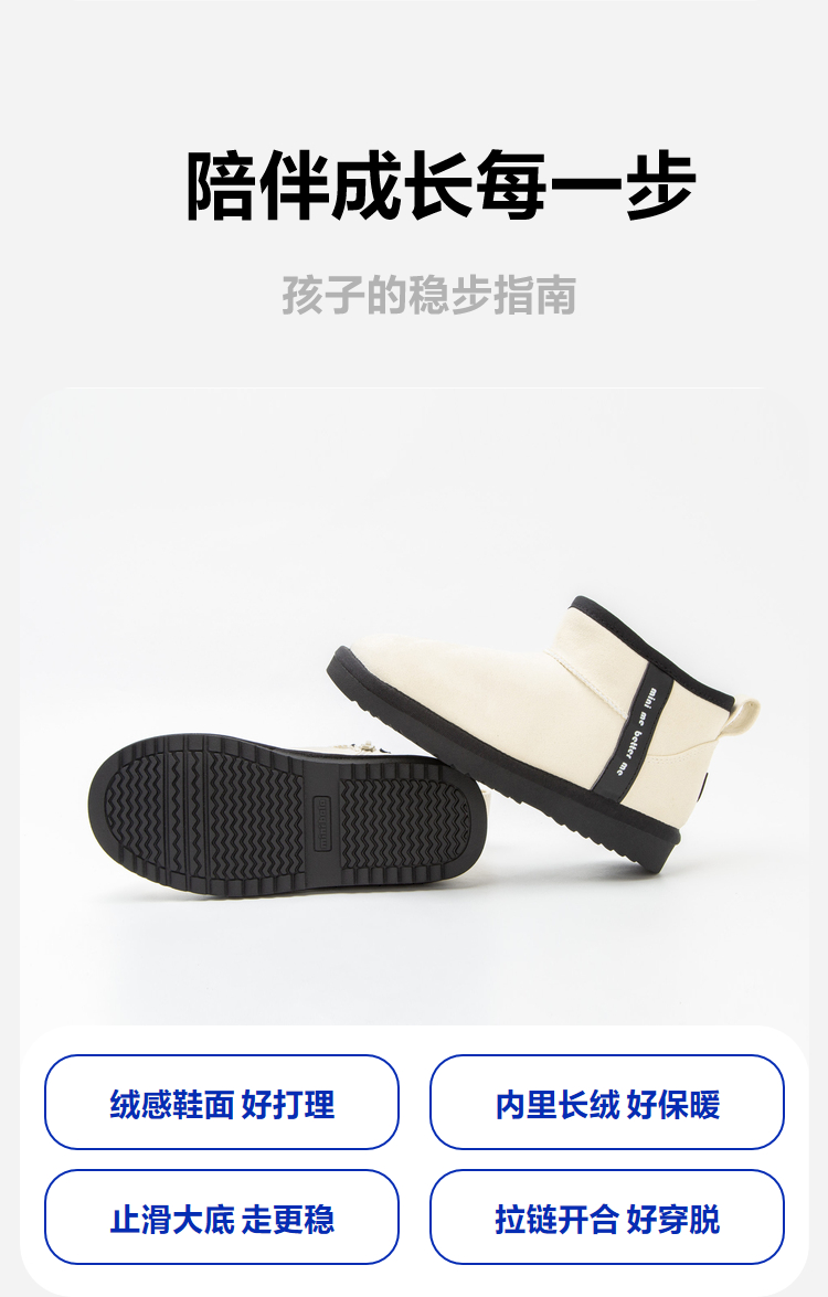 (159/2双)女童一脚蹬设计内里加绒保暖雪地靴