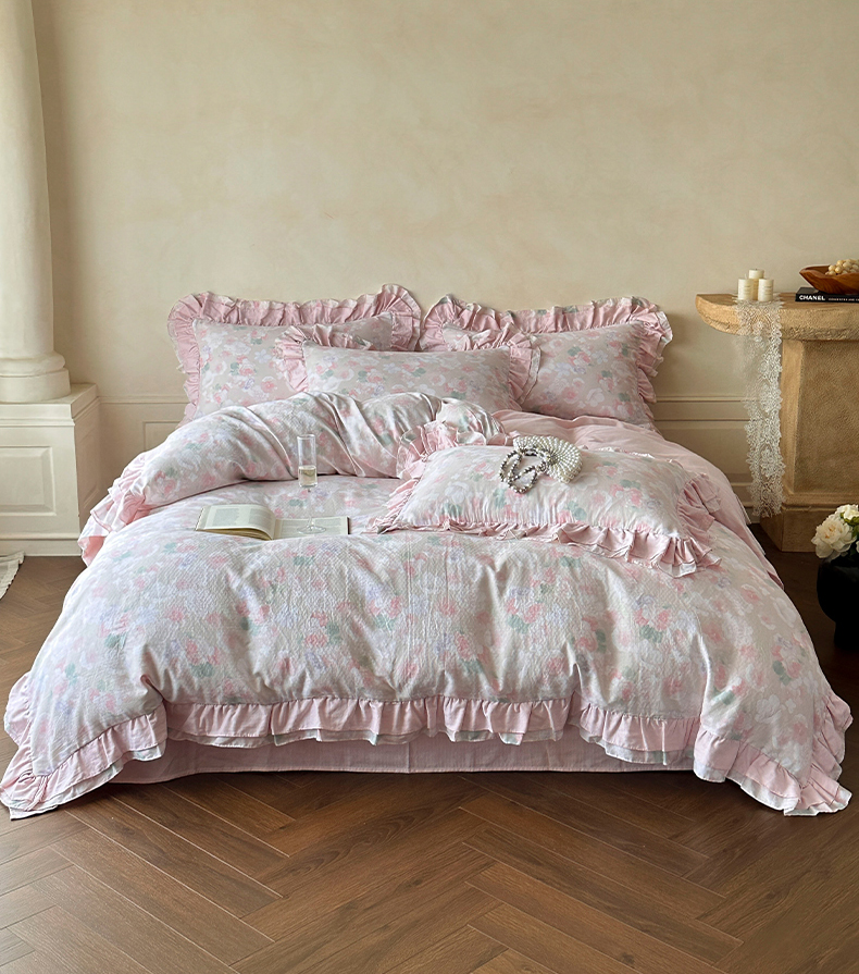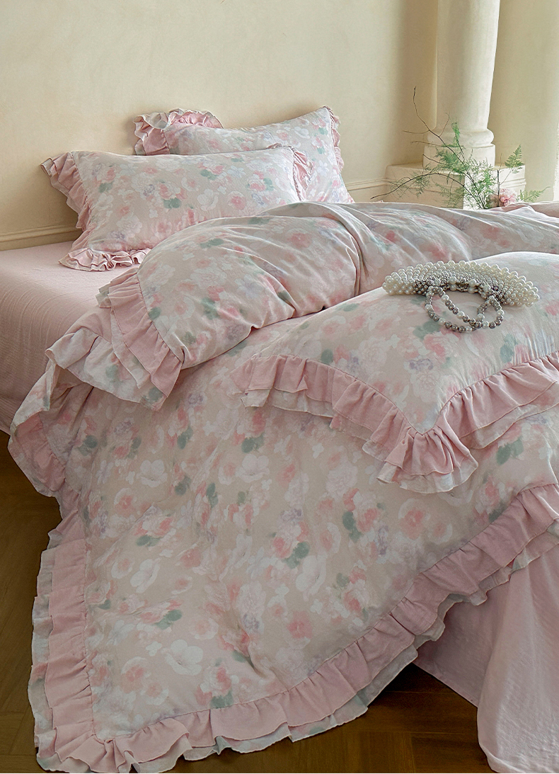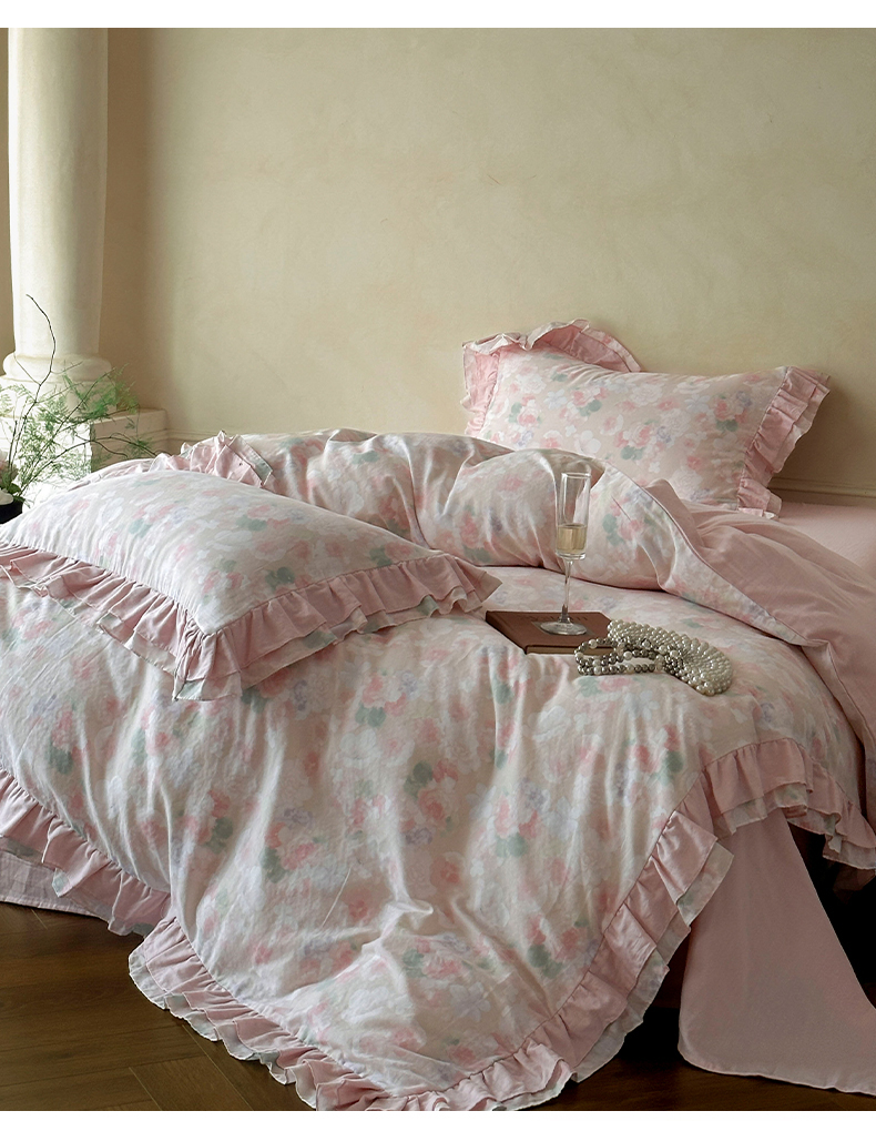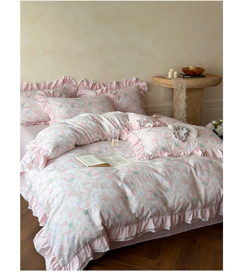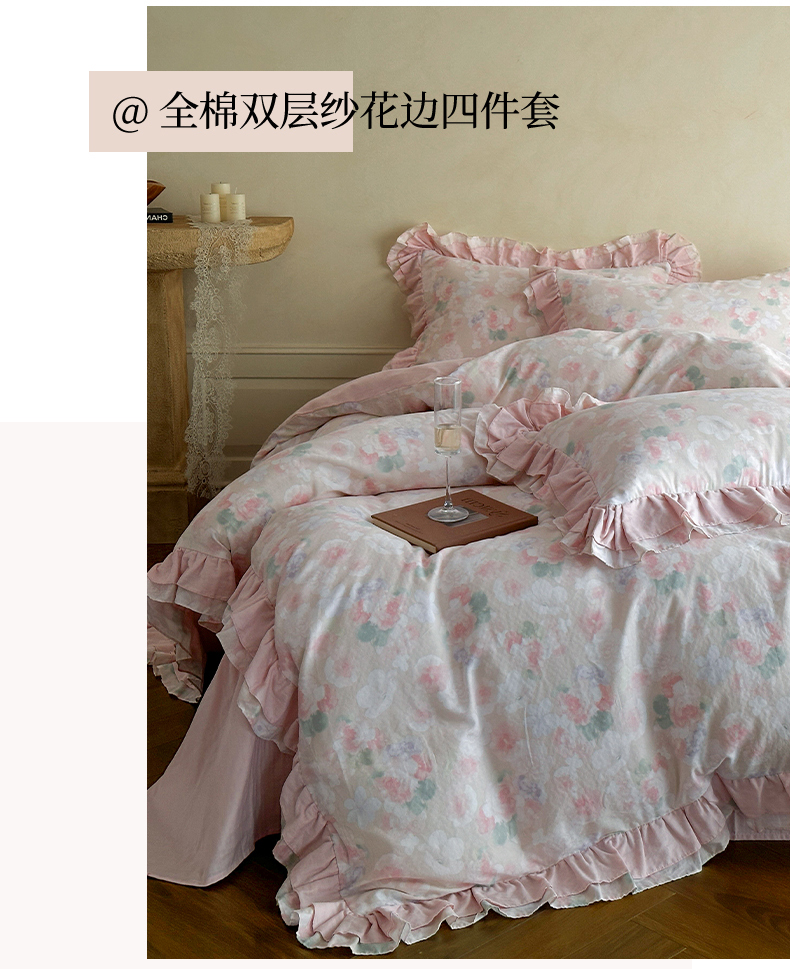 2025新款秋冬法式全棉双层纱花边四件套