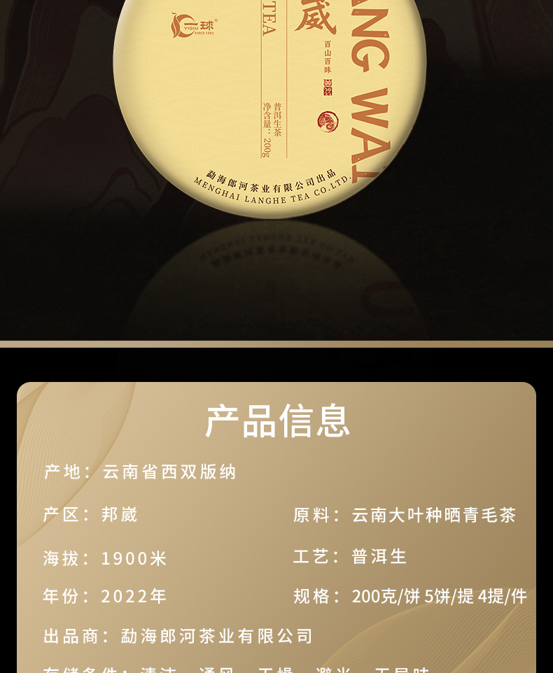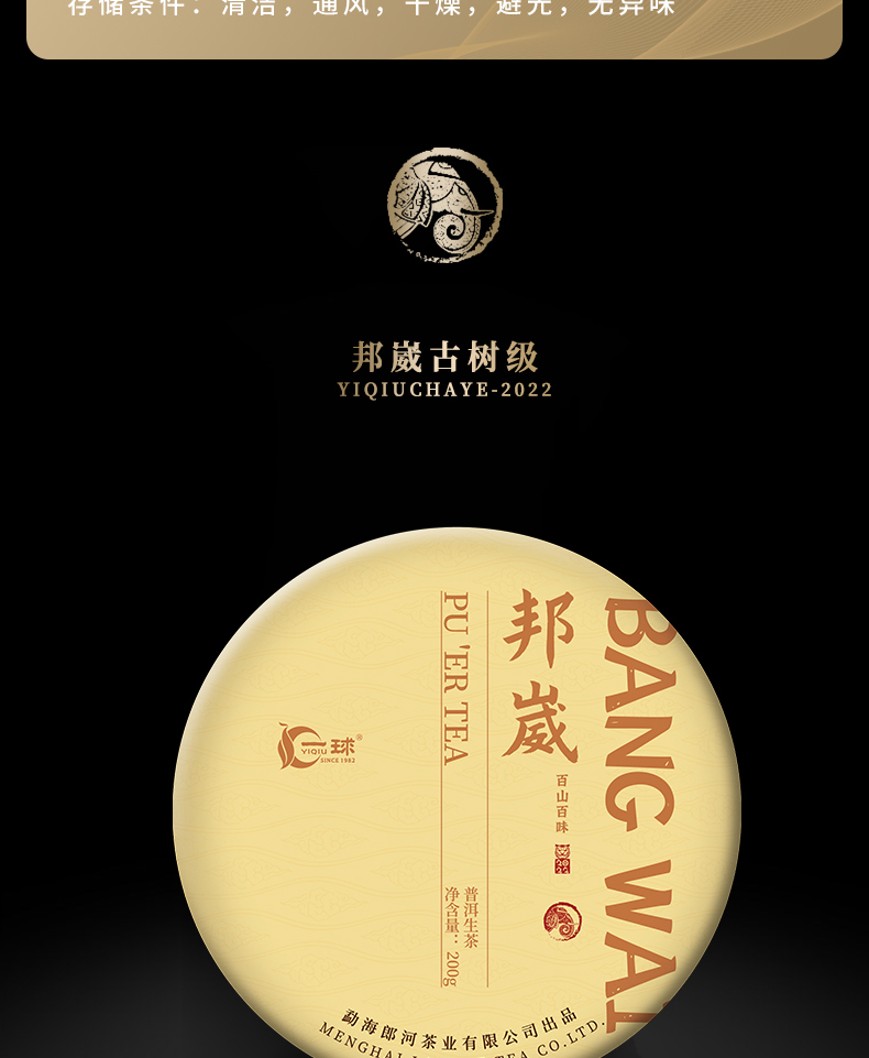一球2022年百山百味·邦崴普洱生茶饼200g