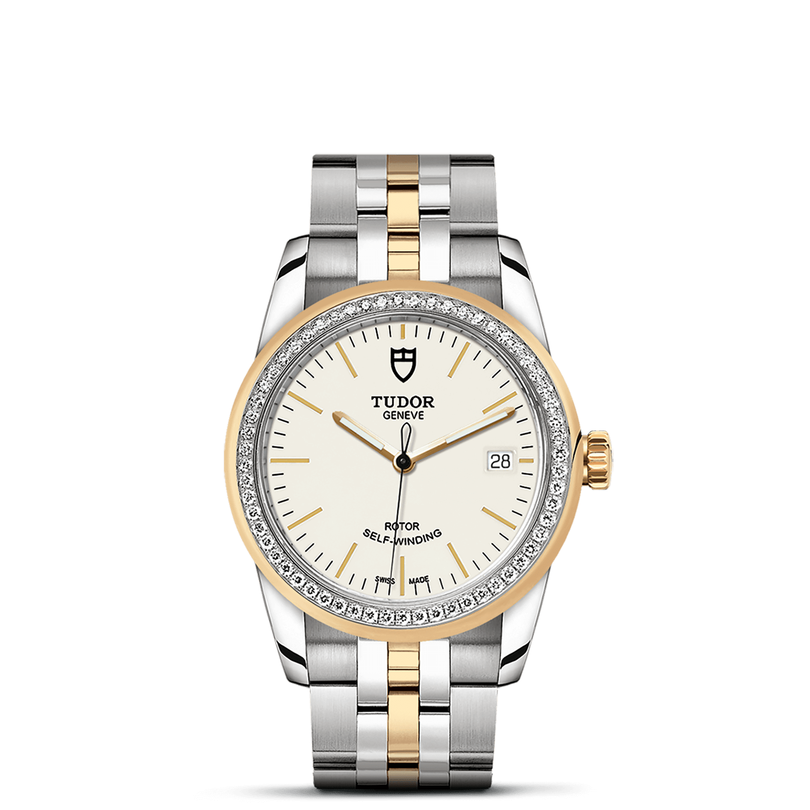 旋入式上链錶冠,饰以帝舵表标志;精钢覆有0.1毫米18K黄金薄层