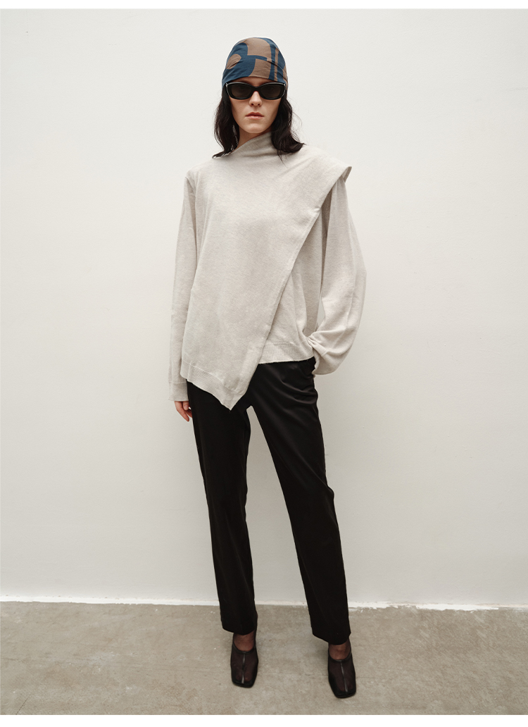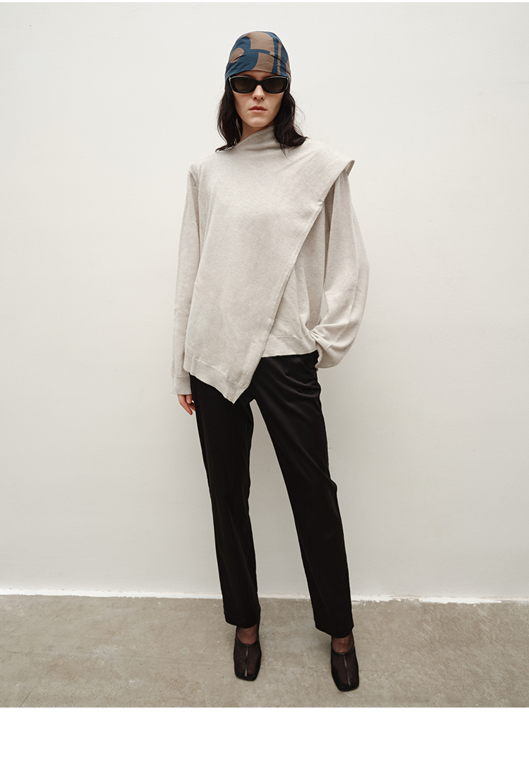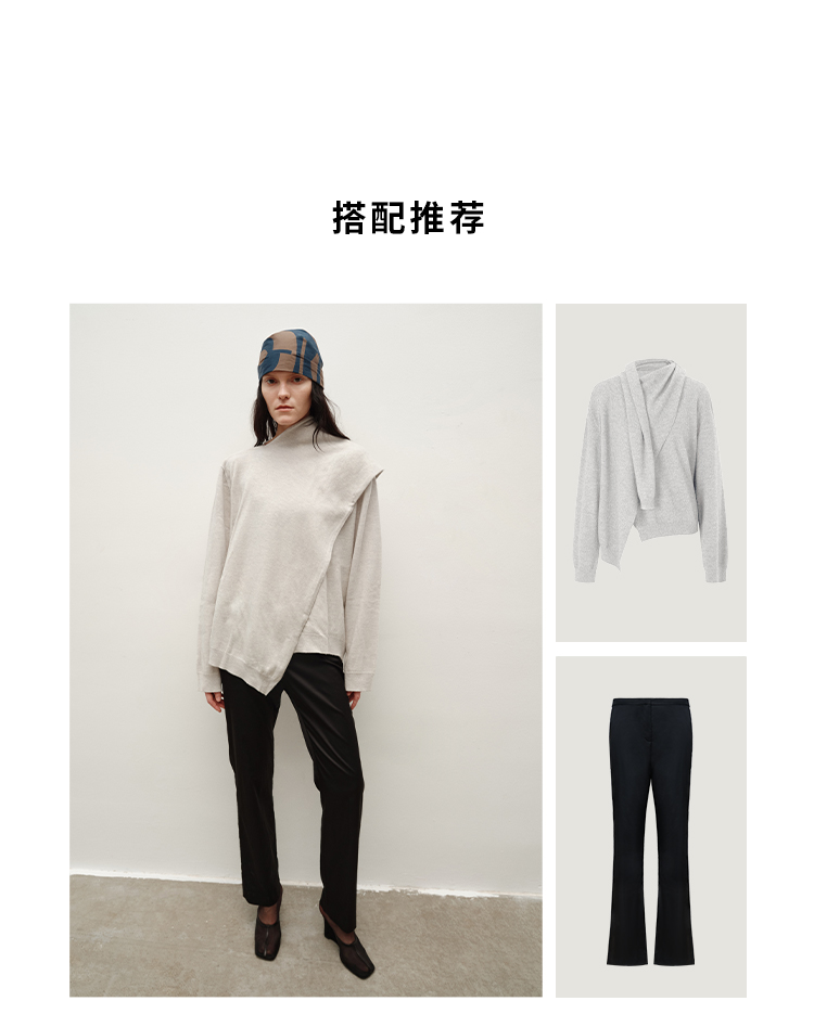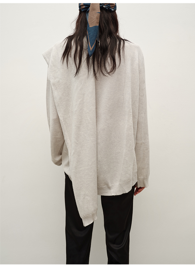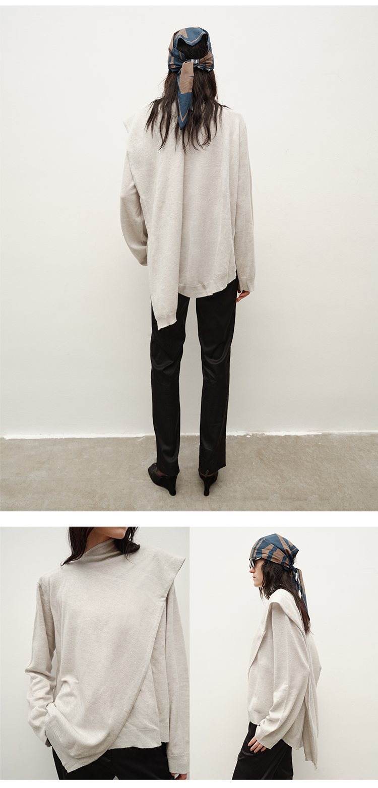 HIDEMI 美丽奴羊毛不对称多穿式毛织上衣