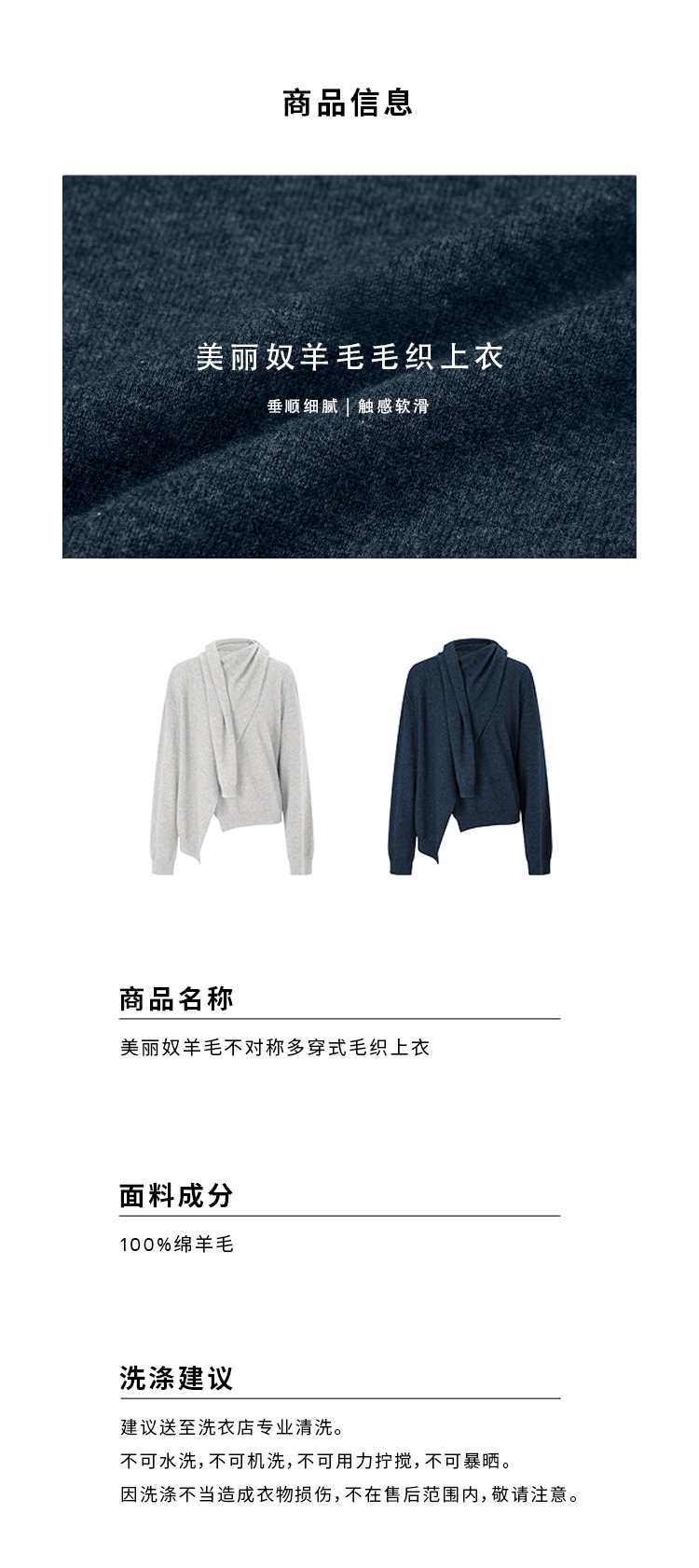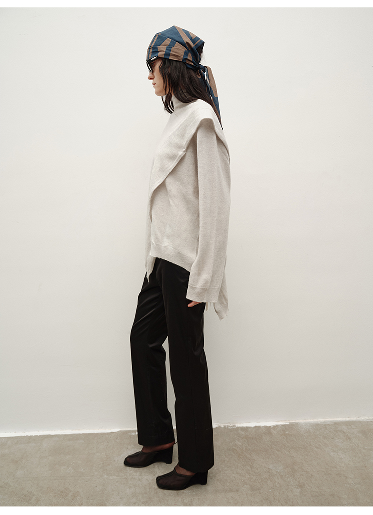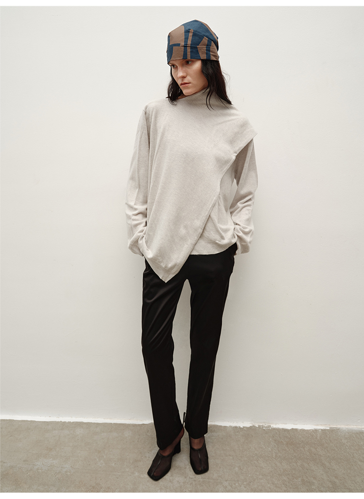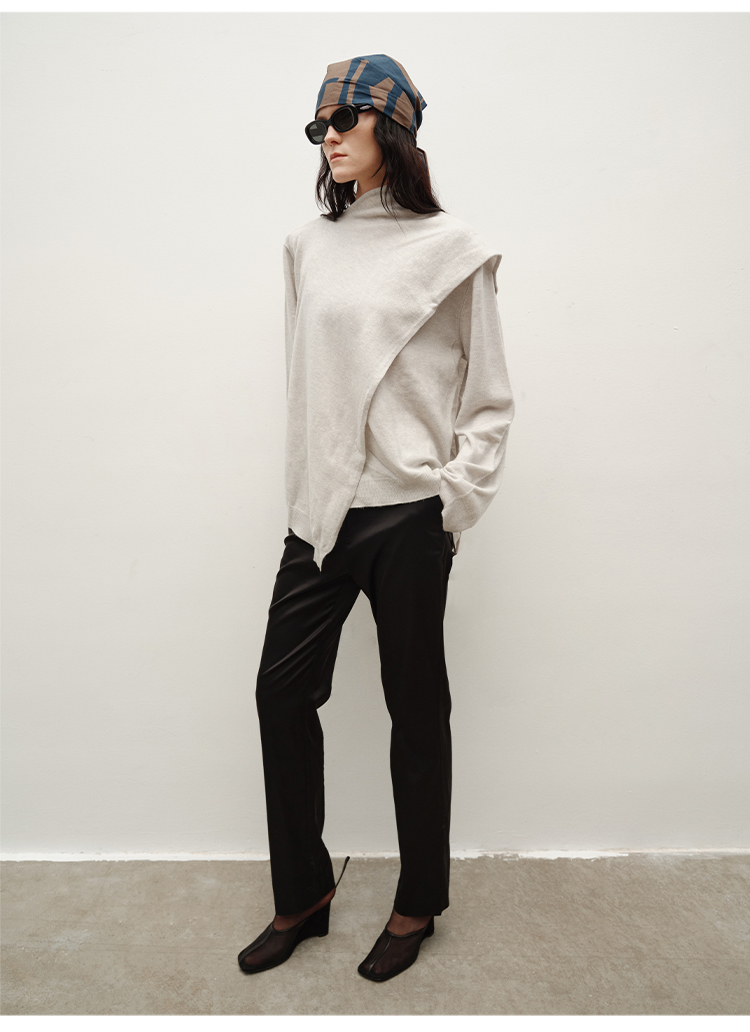 HIDEMI 美丽奴羊毛不对称多穿式毛织上衣