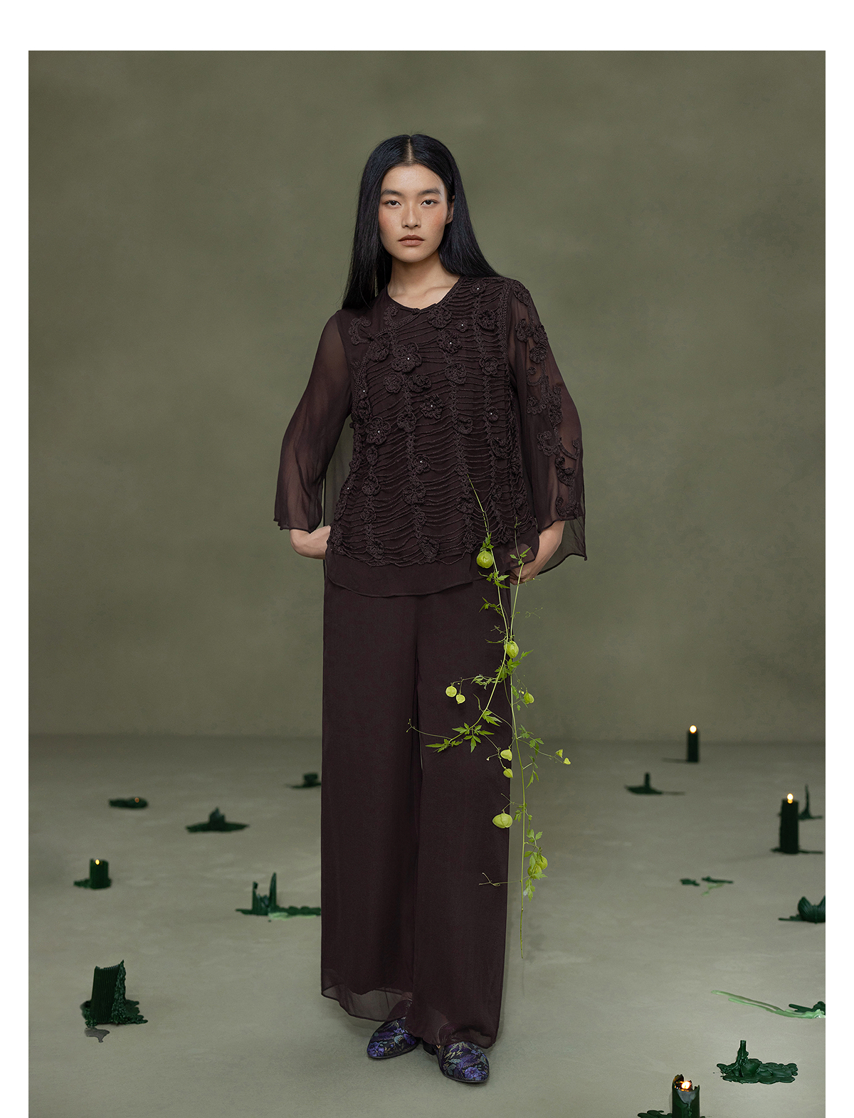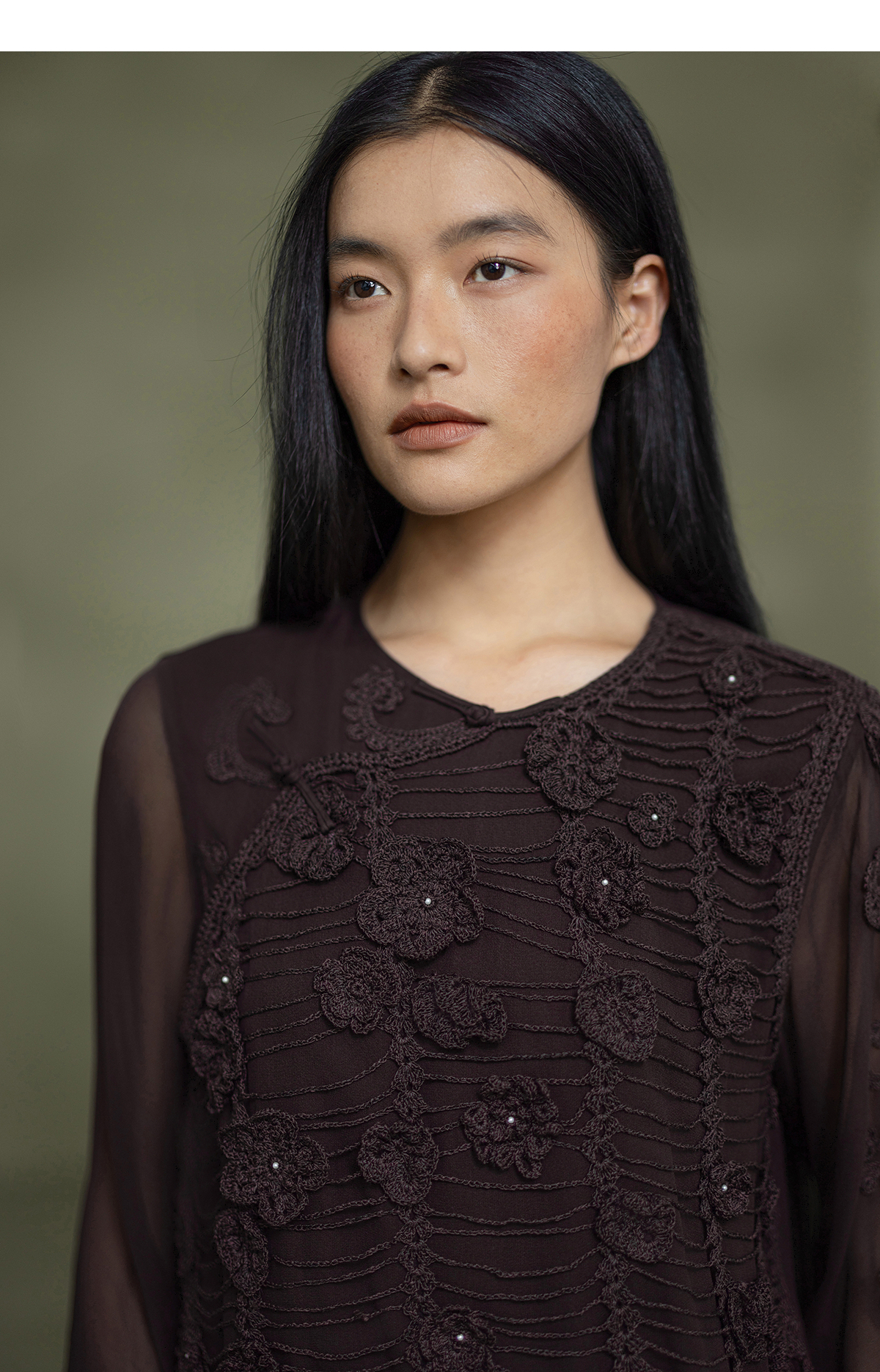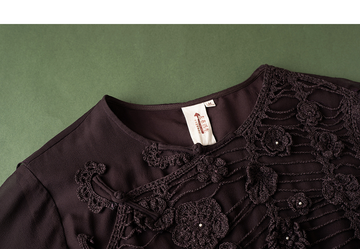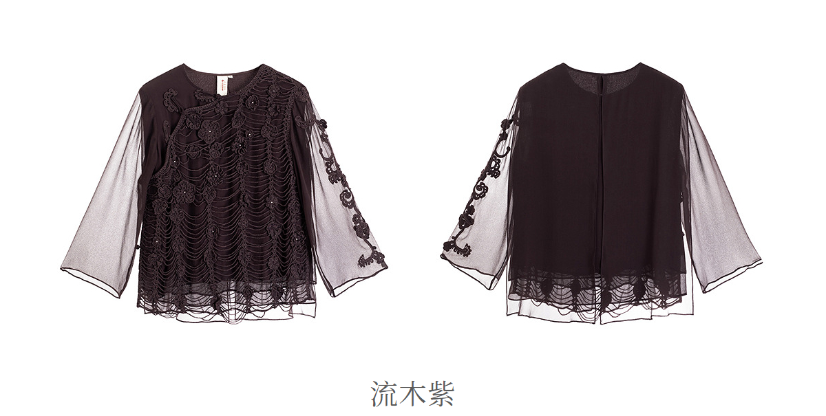 【林栖设计小店】手工钩花|鎏光溯影流木紫桑蚕丝拼飞片飘逸2026春新款国风真丝衫1961016